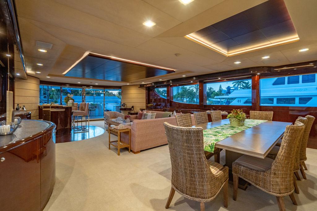 TRUE NORTH создана как для отдыха, так и для развлечений. На борту расположен просторный главный салон, большой скай-лаунж и впечатляющий сан-дек с джакузи, баром и комфортабельными лежаками — идеальное место для отдыха под солнцем. Яхта одинаково хорошо подходит как для шумных приемов, так и для уединенного релакса.