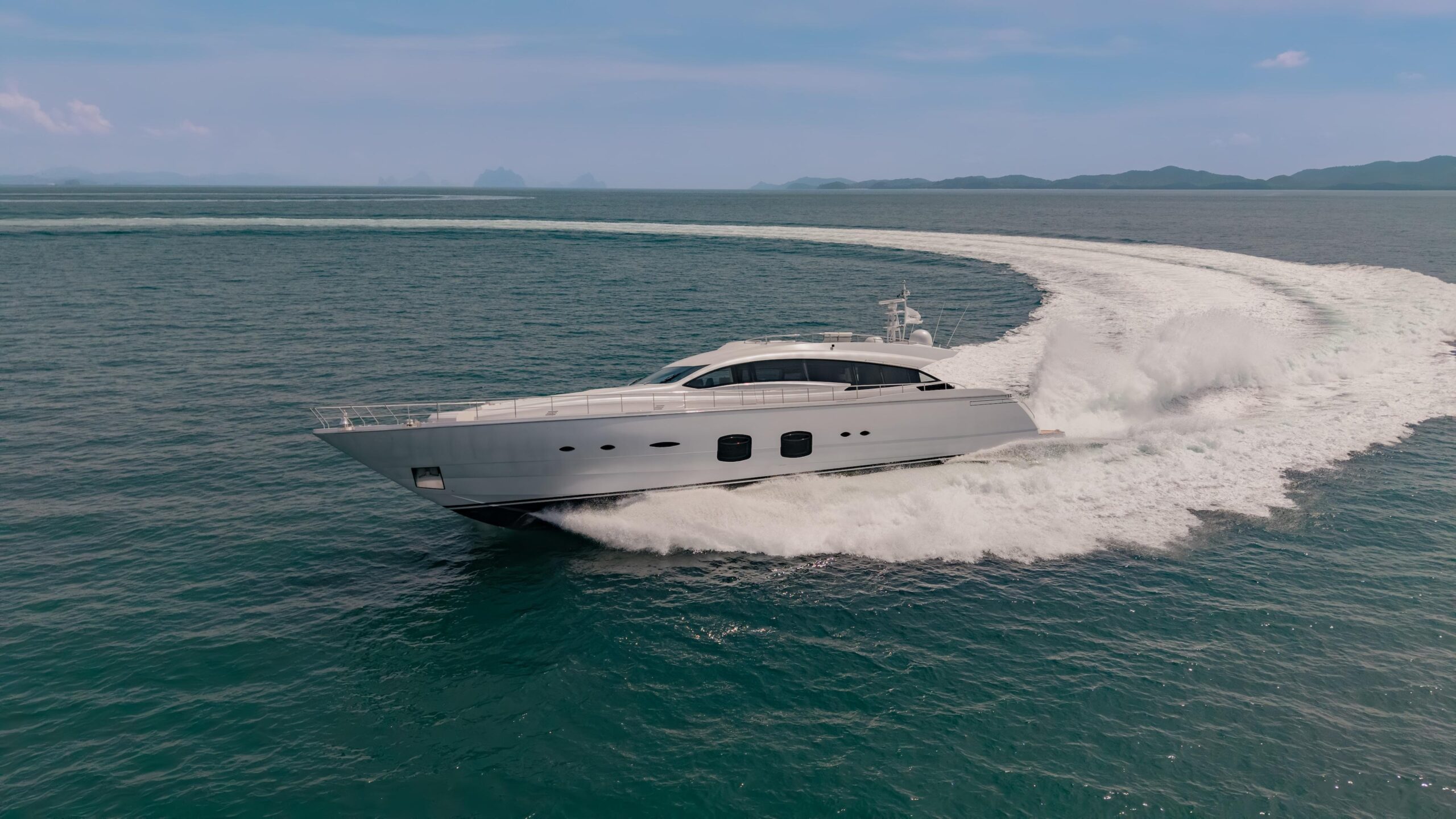 Яхта отличается универсальной планировкой, агрессивным профилем и окнами в надстройке, оснащена инновационными технологиями на борту и демонстрирует выдающиеся ходовые характеристики.