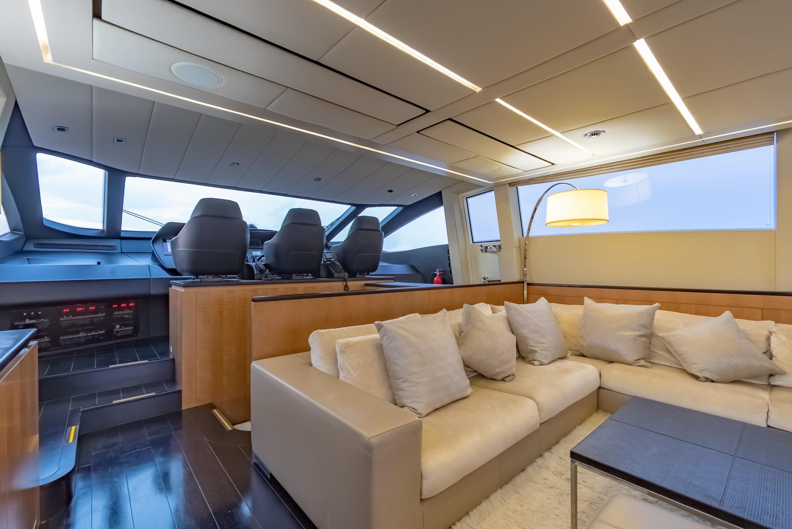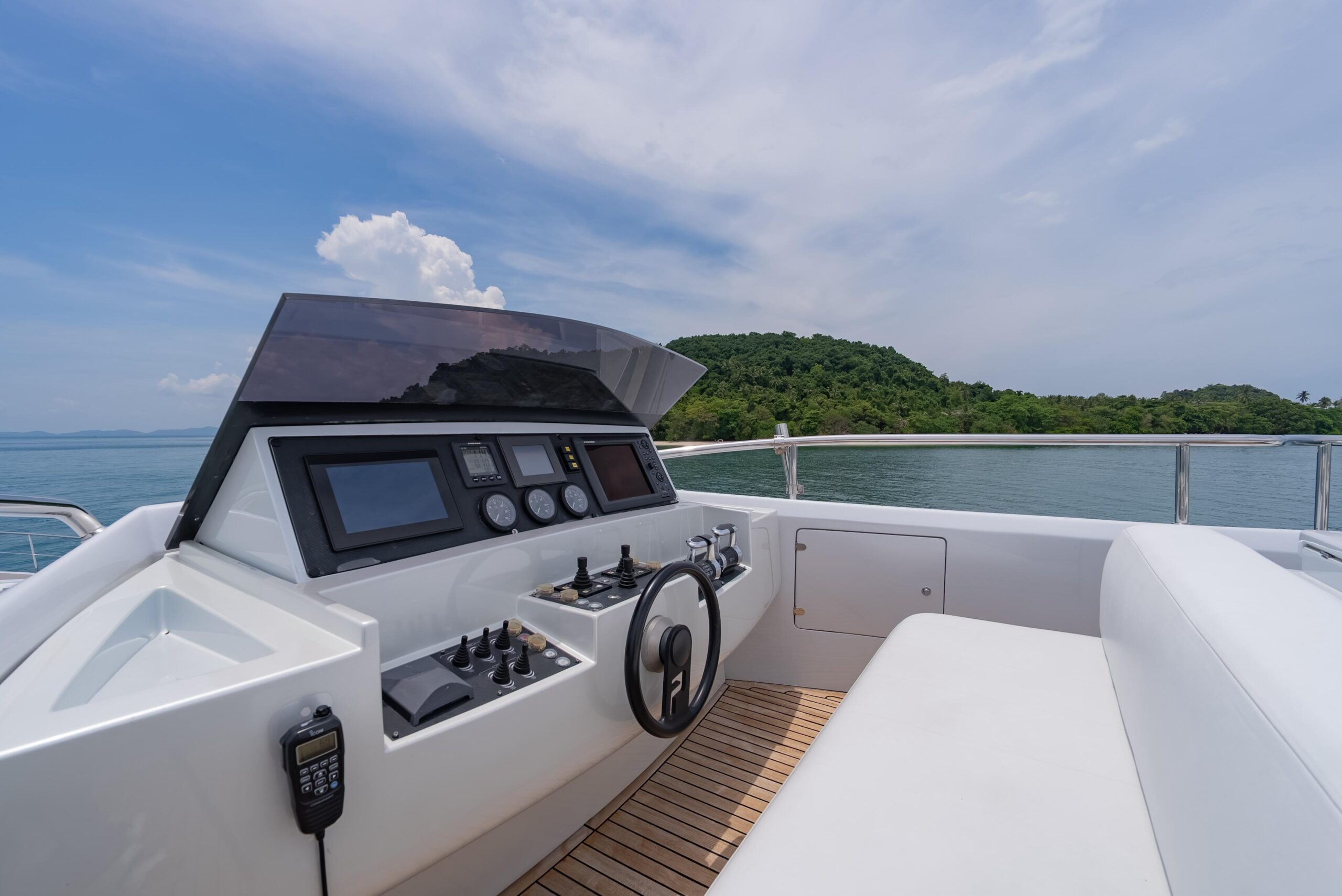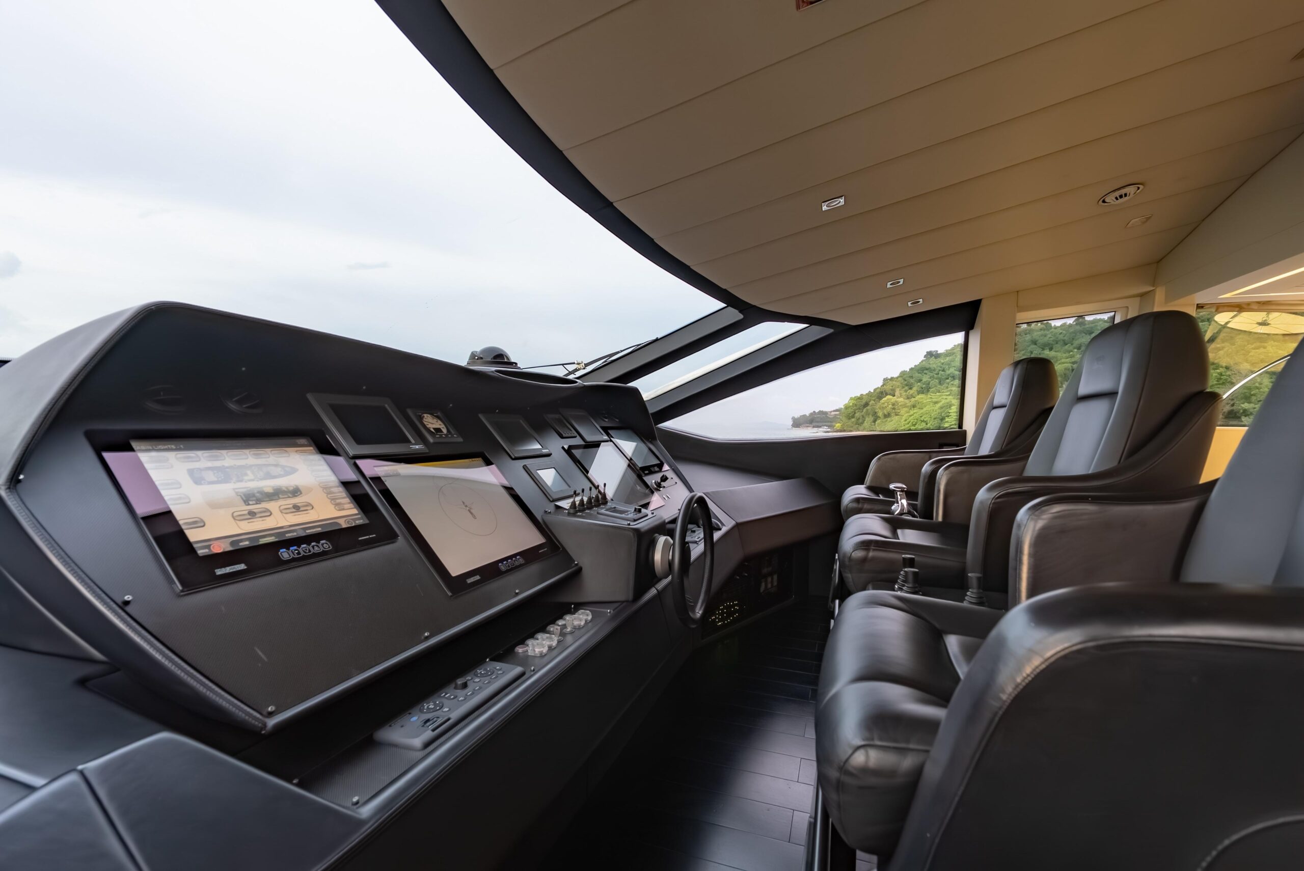 Рулевая рубка оснащена тремя удобными центральными регулируемыми креслами пилота, созданными в сотрудничестве с Poltrona Frau и Besenzoni. Пульт управления разработан с учётом навигационных и коммуникационных технологий, включая полный комплекс Furuno, отображаемый на 18-дюймовых экранах Masters.