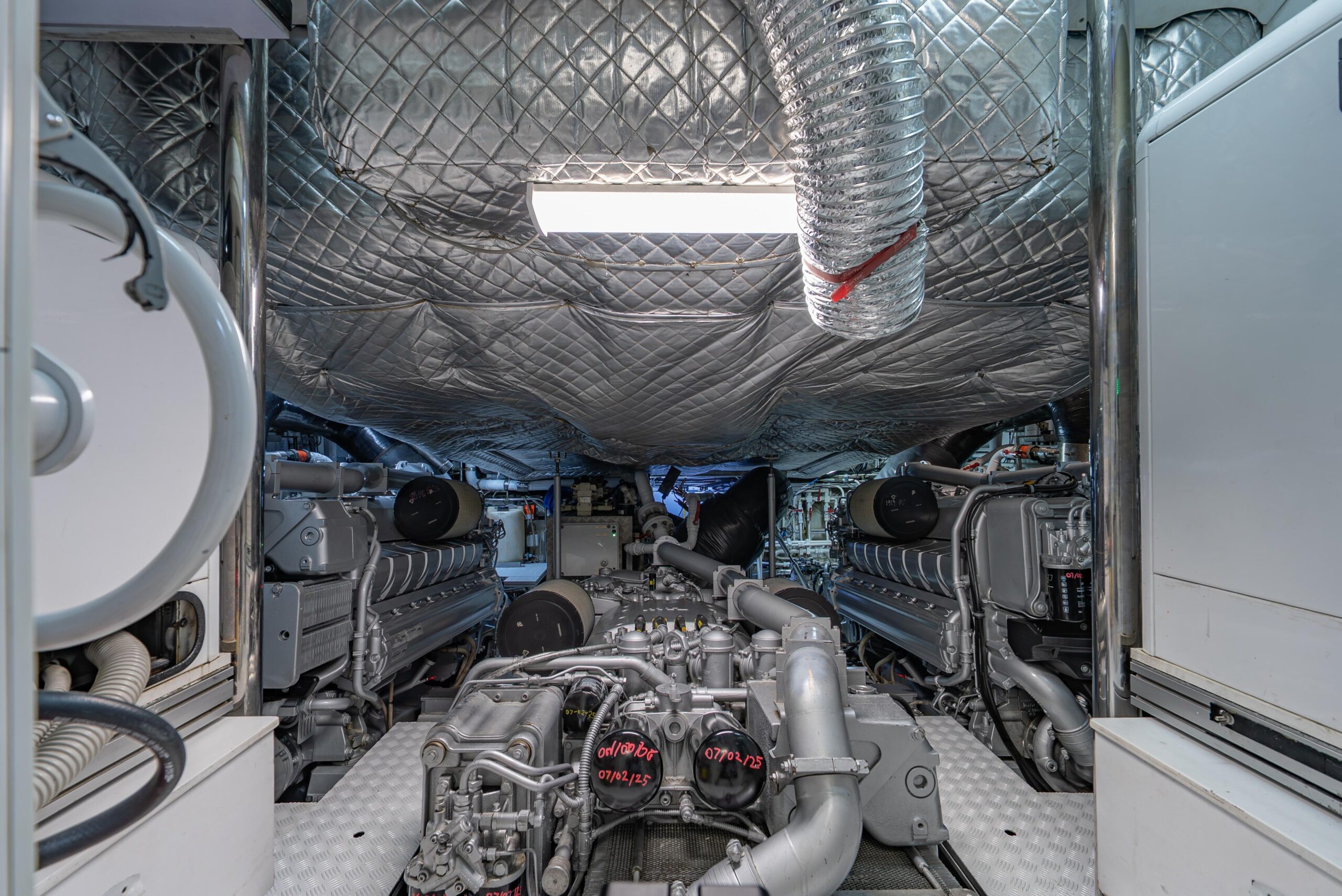 Построенная из композитных материалов, роскошная яхта Pershing оснащена тремя дизельными двигателями MTU 16V 2000 M94 мощностью по 2 638 л.с. каждый, развивает впечатляющую максимальную скорость 40+ узлов и комфортно идёт на скоростях 30+ узлов. Ширина корпуса — 22 фута, осадка — 6 футов.