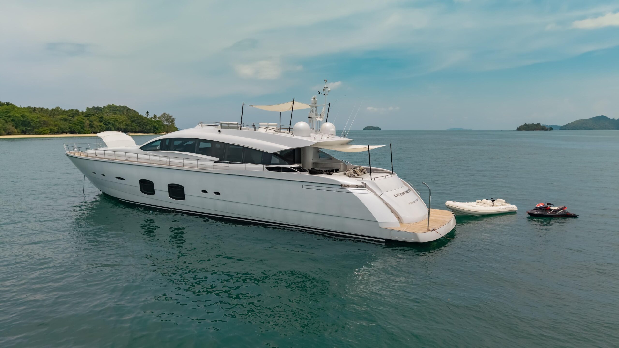 Изначально построенная владельцем Pershing, который владел яхтами этой марки четыре (4) раза и включил в комплектацию всё самое лучшее, на момент постройки она была единственной Pershing 108', построенной в соответствии с требованиями MCA, при этом яхта никогда не сдавалась в чартер.