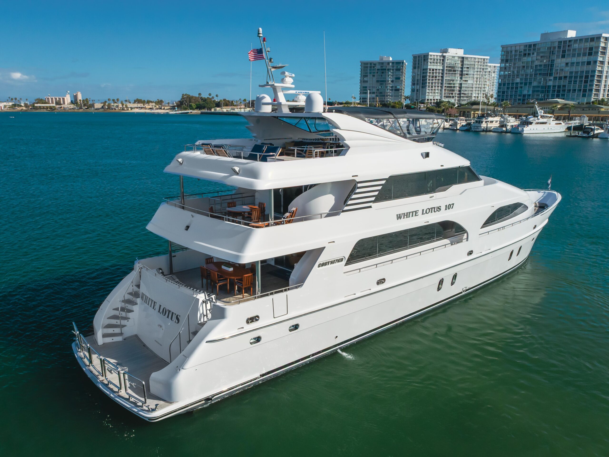 WHITE LOTUS — это 107-футовая трёхпалубная моторная яхта от верфи President Yachts, прошедшая элегантный рефит в 2023 году и имеющая всего 1 775 моточасов.