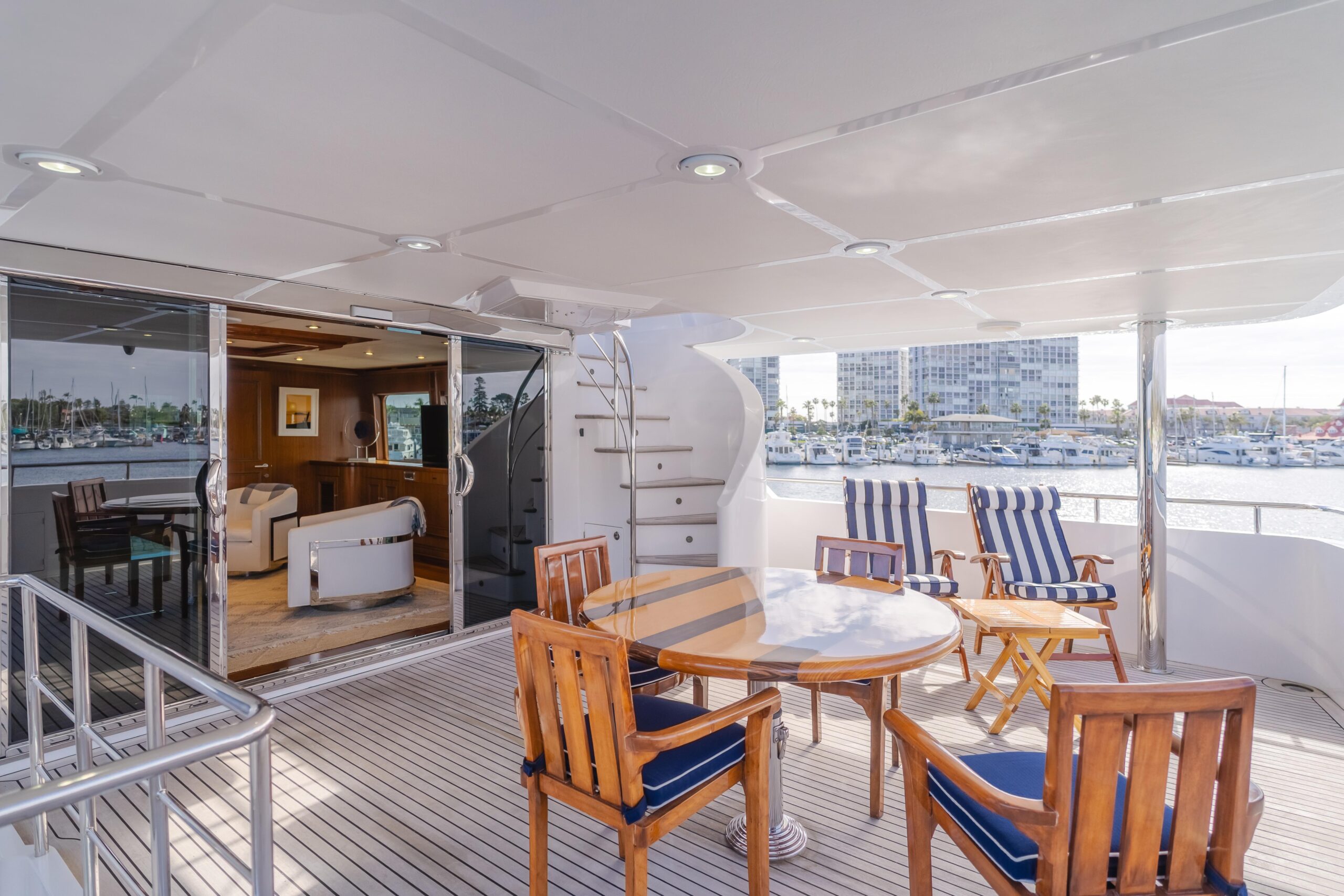 • Тиковая лестница вверх на кормовую палубу
