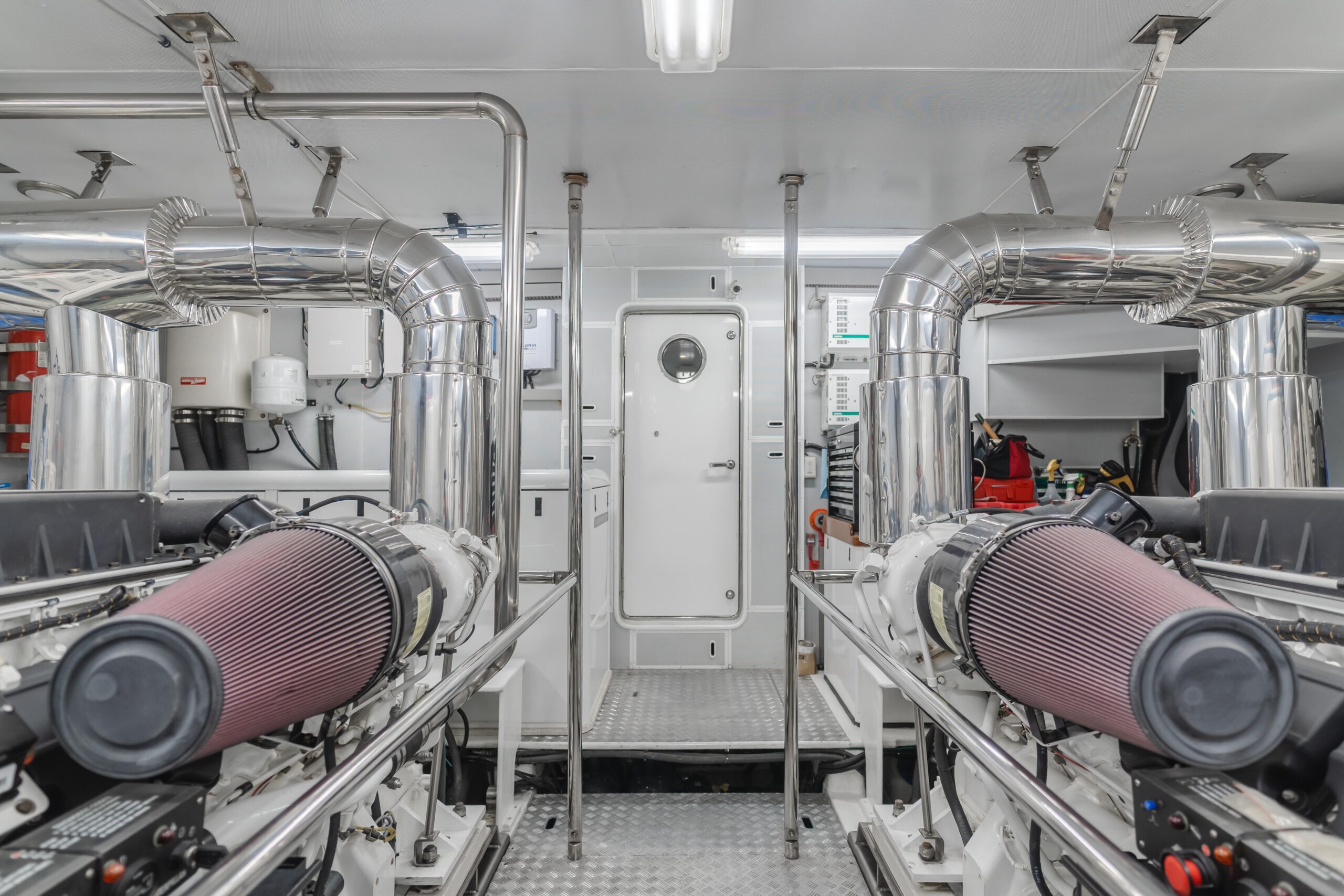 • Полная система Sonos по яхте (включая флайбридж), 5 сабвуферов; новый Ethernet по всему судну; Wi-Fi/спутниковый интернет Starlink; новые ТВ в мастер-каюте, салоне, VIP, гостевых каютах, на верхней палубе и в кокпите.