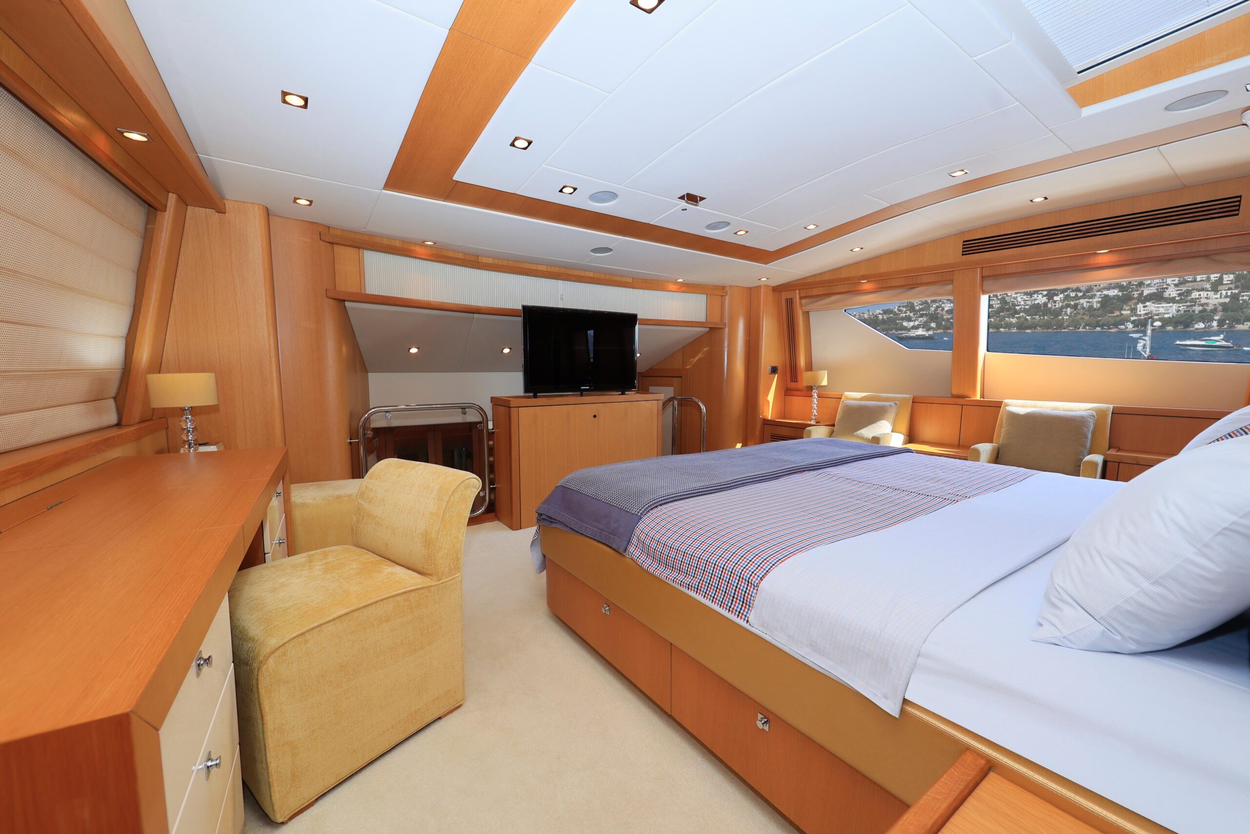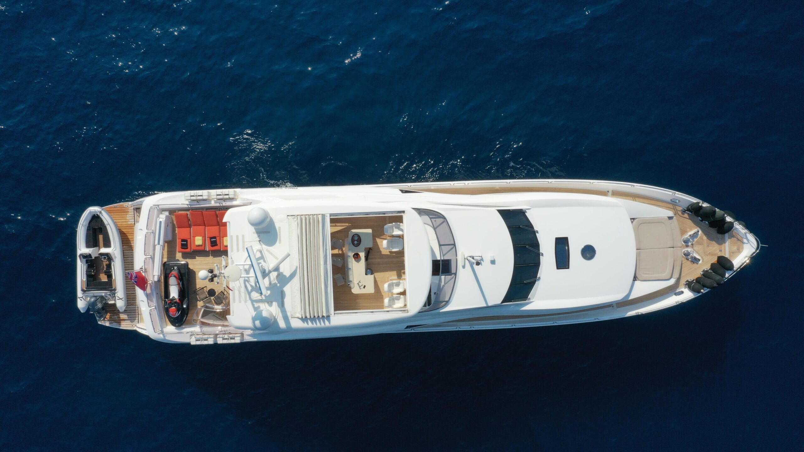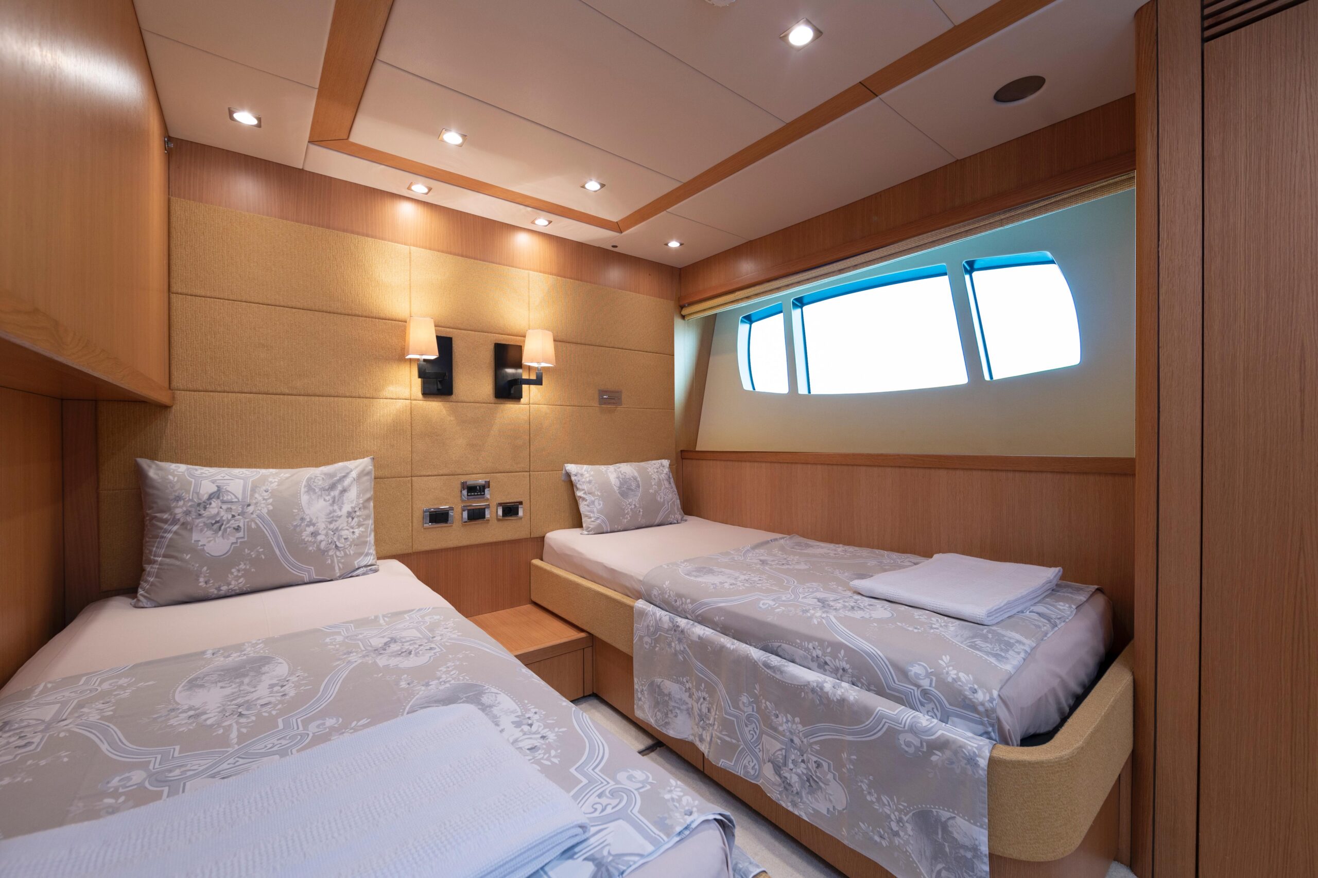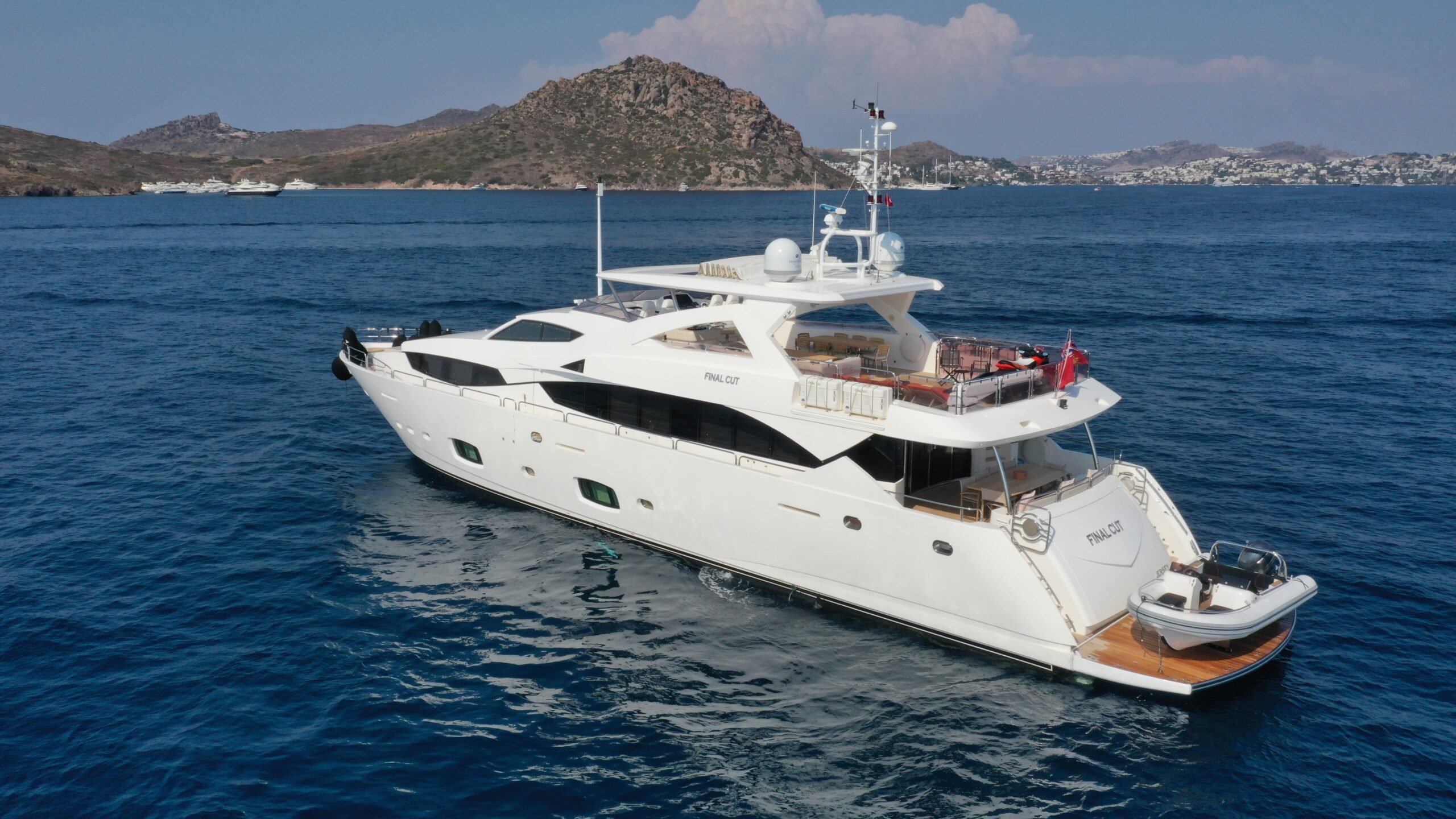 «Эта потрясающая яхта Sunseeker 34 M 2011 года спроектирована таким образом, чтобы создавать просторные зоны и обеспечивать максимальный комфорт для гостей. Приподнятая рулевая рубка, мастер-каюта на главной палубе и роскошный интерьер позволяют разместить до 10 гостей в 5 каютах.