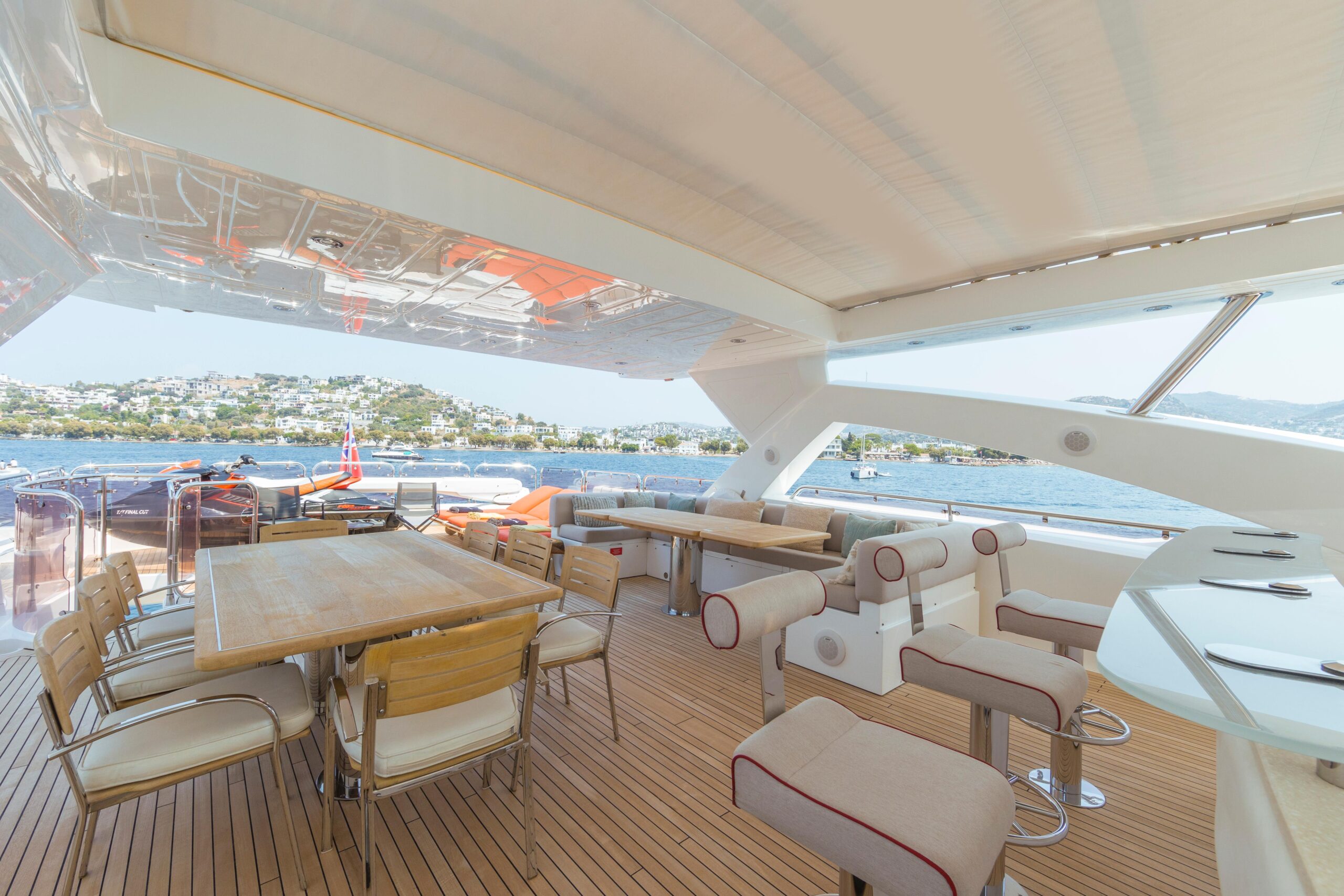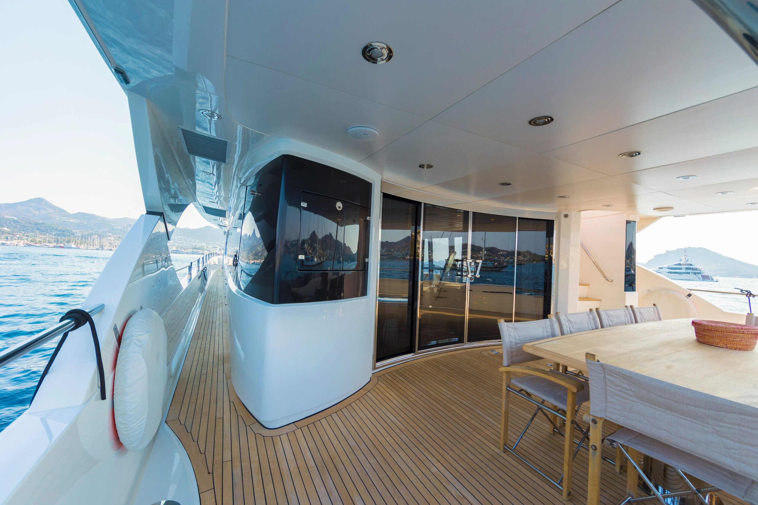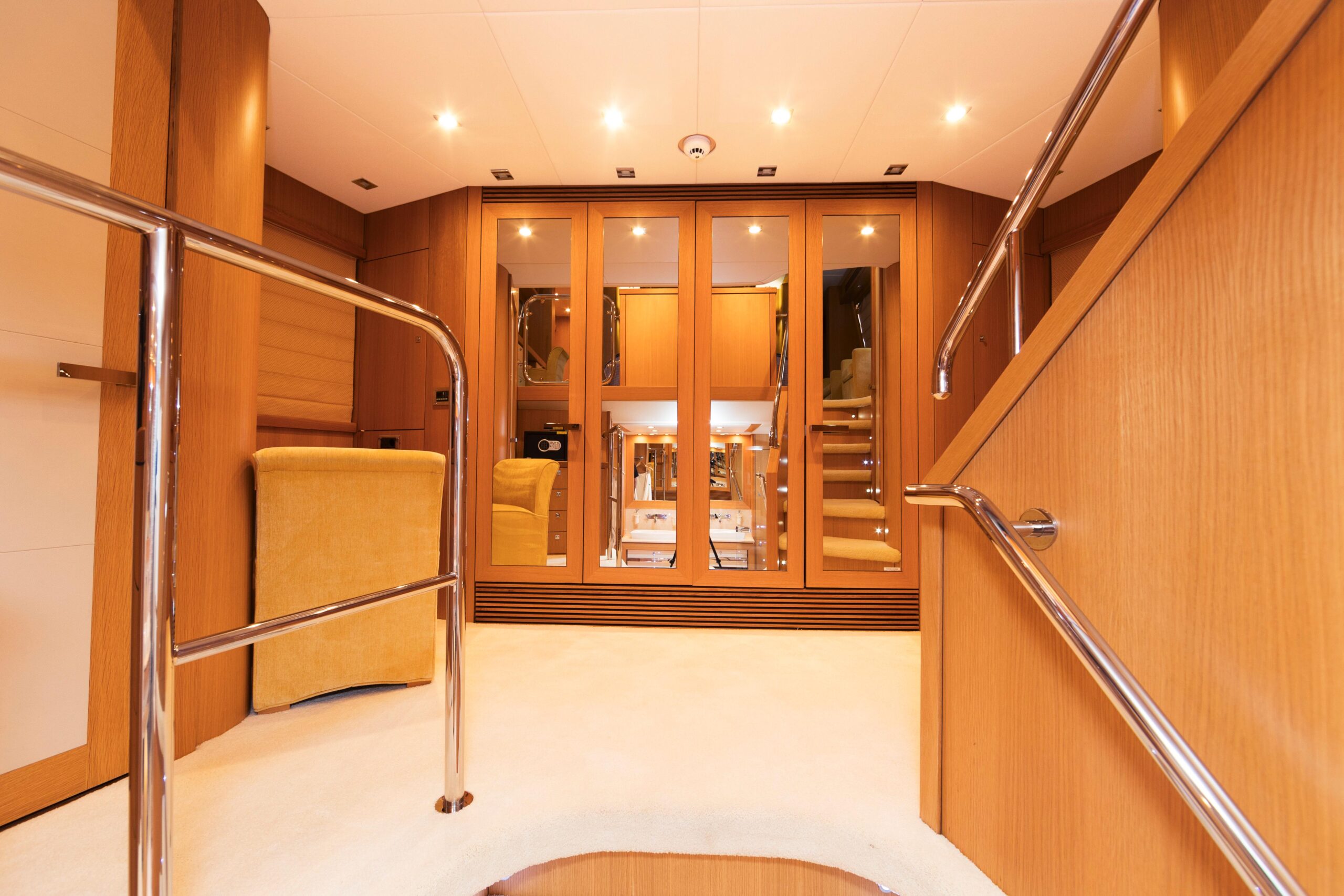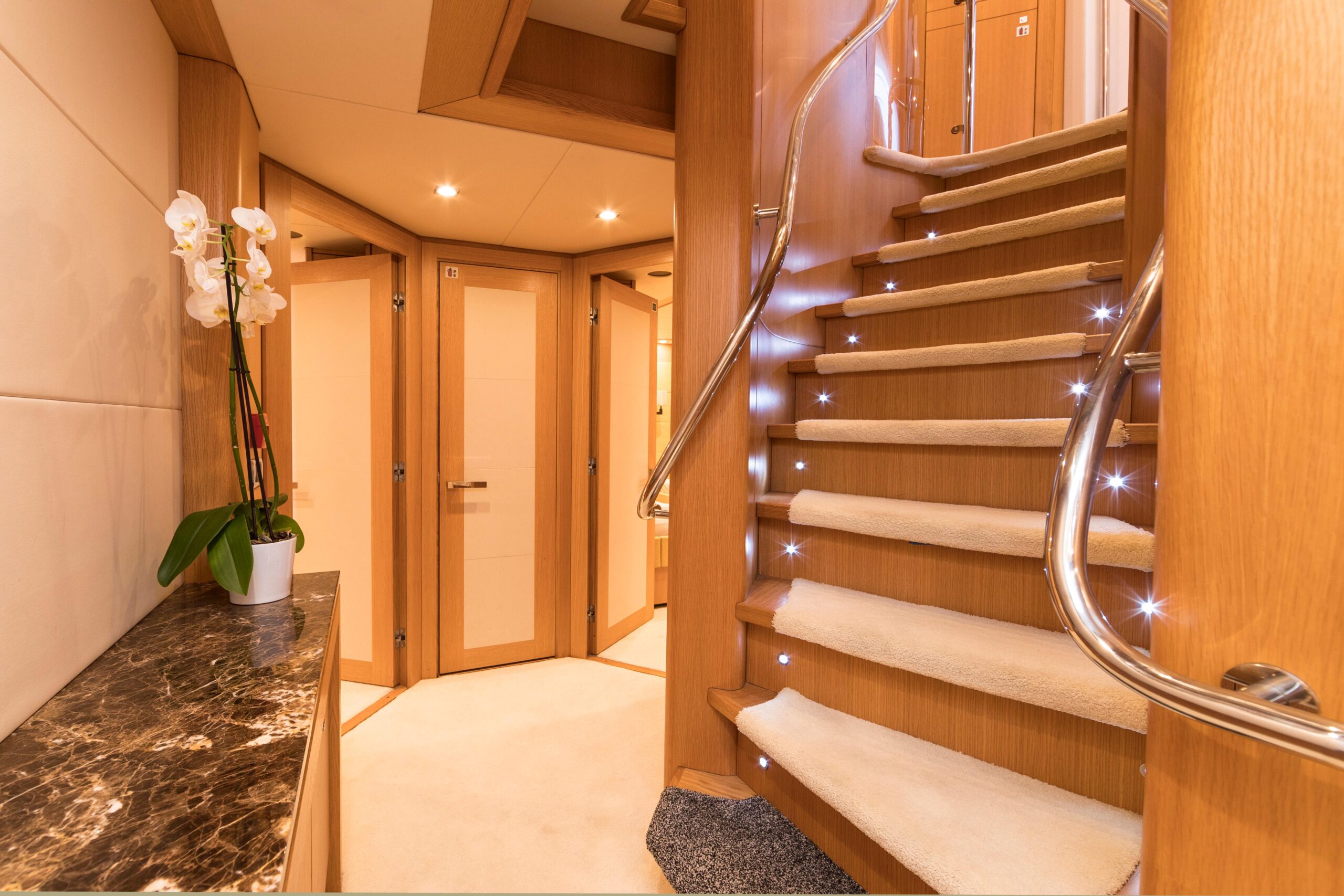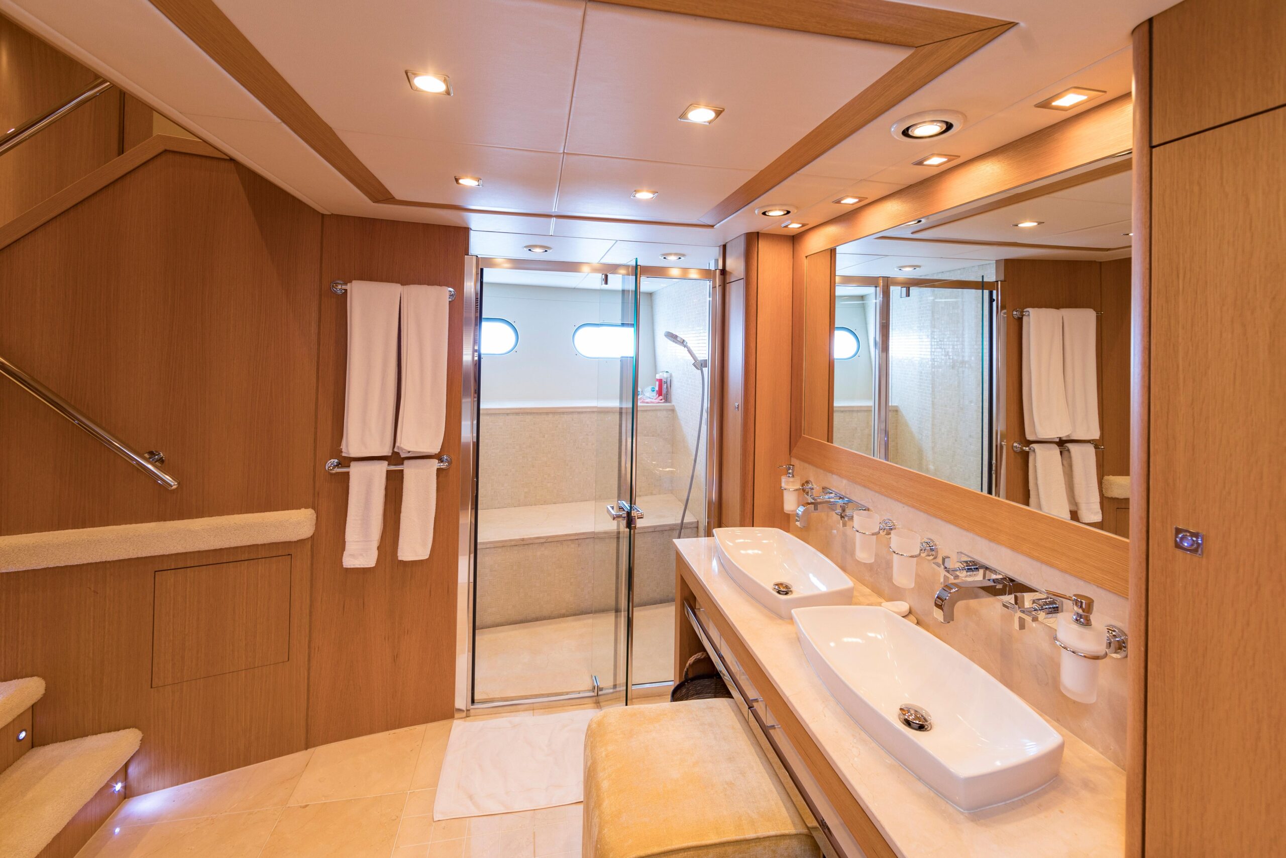 Захватывающие масштабы и классические плавные линии придают этой яхте безошибочно узнаваемый облик на воде. Во многих отношениях она ненамного меньше своей флагманской «сестры»: три просторные палубы предлагают роскошные зоны для отдыха и развлечений и щедрое размещение, основанное на полностью новом корпусе. Другие преимущества родства с яхтой 34M включают те же судовые системы и инфраструктуру, а также продуманную схему разделения зон экипажа и гостей по всему судну. Есть и впечатляющий флайбридж — на этот раз со вторым постом управления.