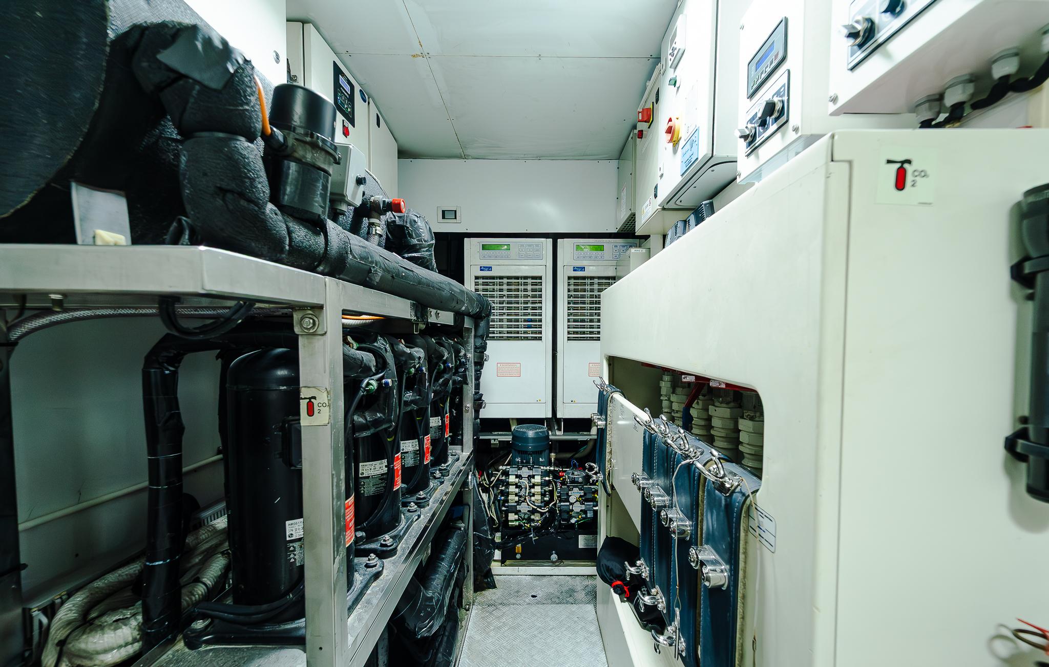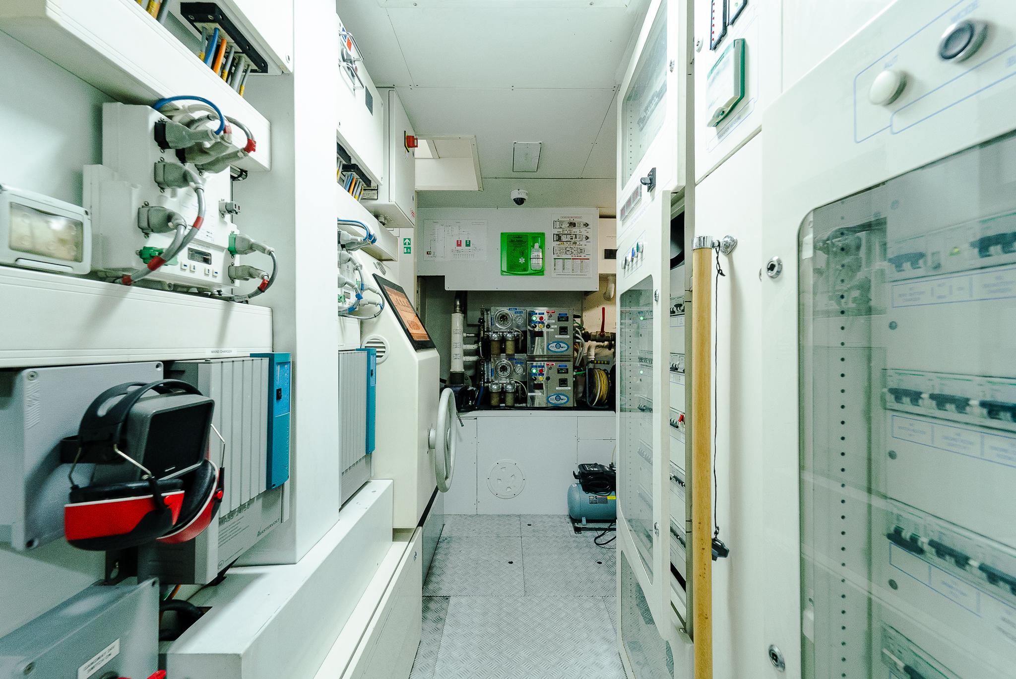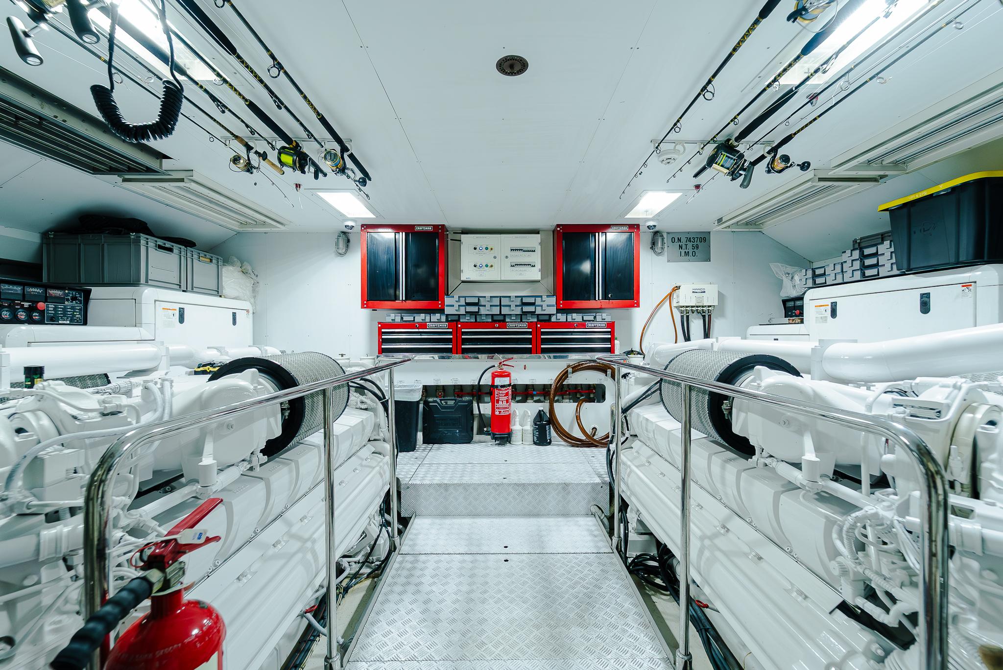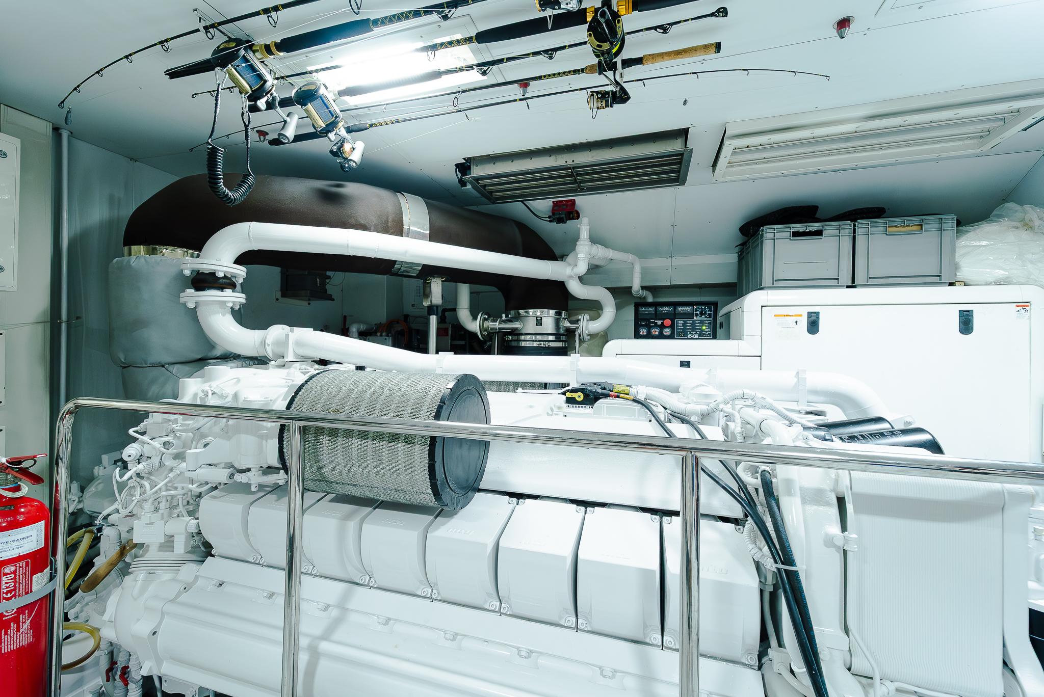 Построенная в соответствии с классификацией RINA и поддерживаемая в безупречном состоянии, яхта также оснащена двумя генераторами Kohler по 50 кВт (недавно полностью перебранными), опреснителем Idromar производительностью 360 л/ч и системой кондиционирования тропического класса мощностью 250 000 BTU.