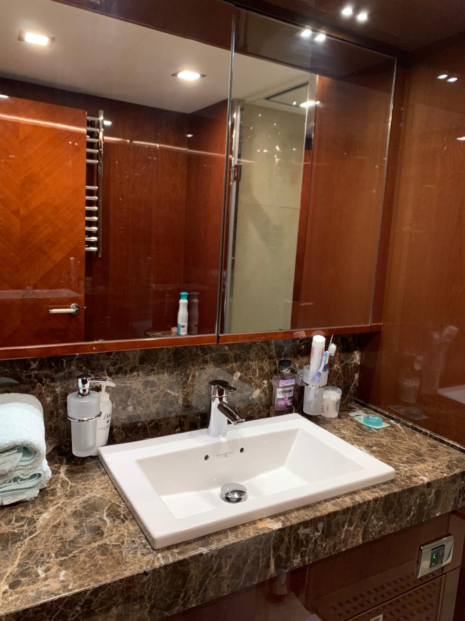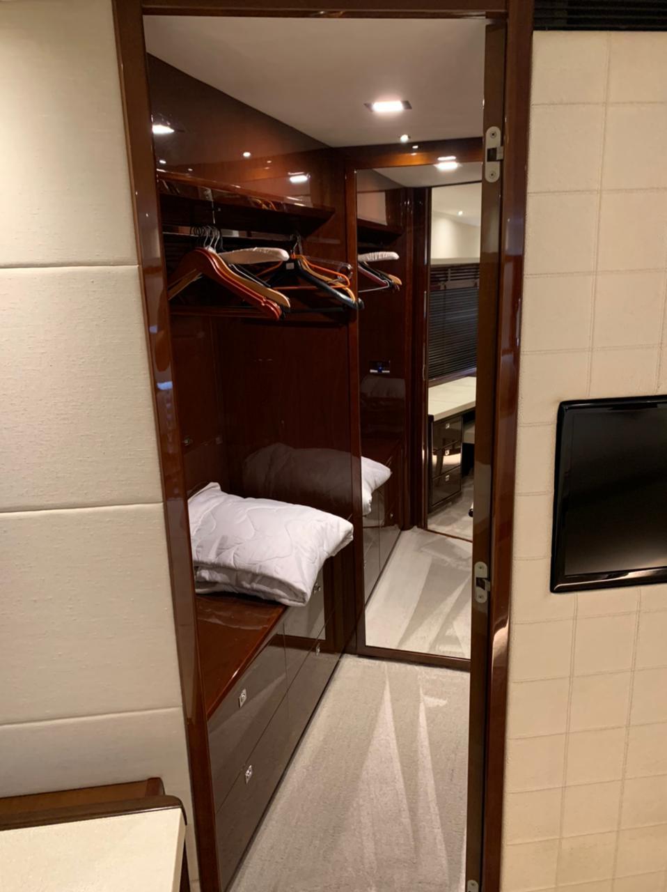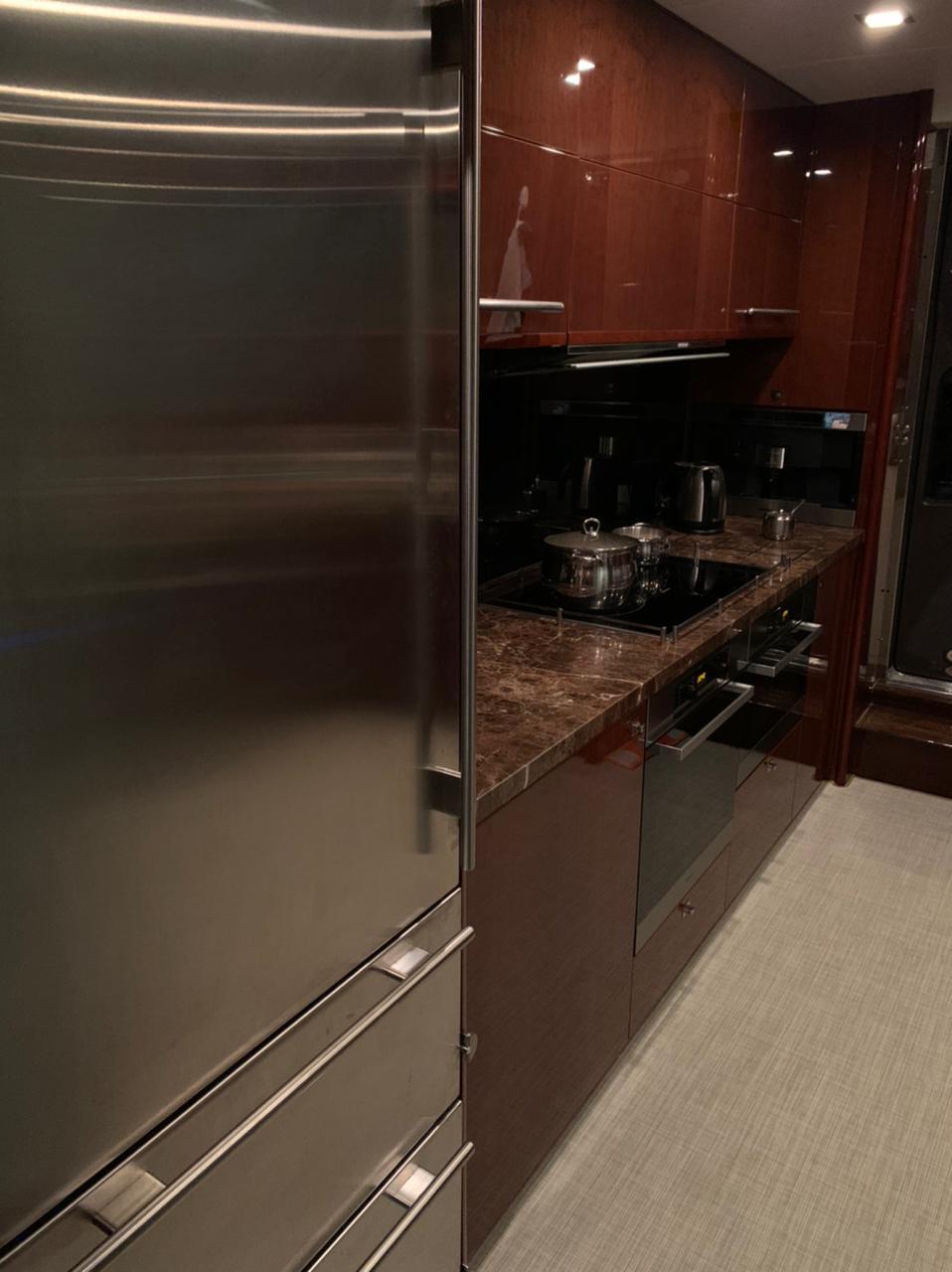 Размещение до 10 гостей в 5 каютах с собственными ванными комнатами. Интерьер включает мебель Fendi, LED-телевизоры и качественную AV-систему во всех каютах. Камбуз оборудован большим холодильником/морозильником с льдогенератором, посудомоечной машиной, духовкой и встроенной кофемашиной. В салоне — холодильник, винный шкаф и подъёмно-опускающийся телевизор с системой объёмного звучания. Размещение экипажа не указано.