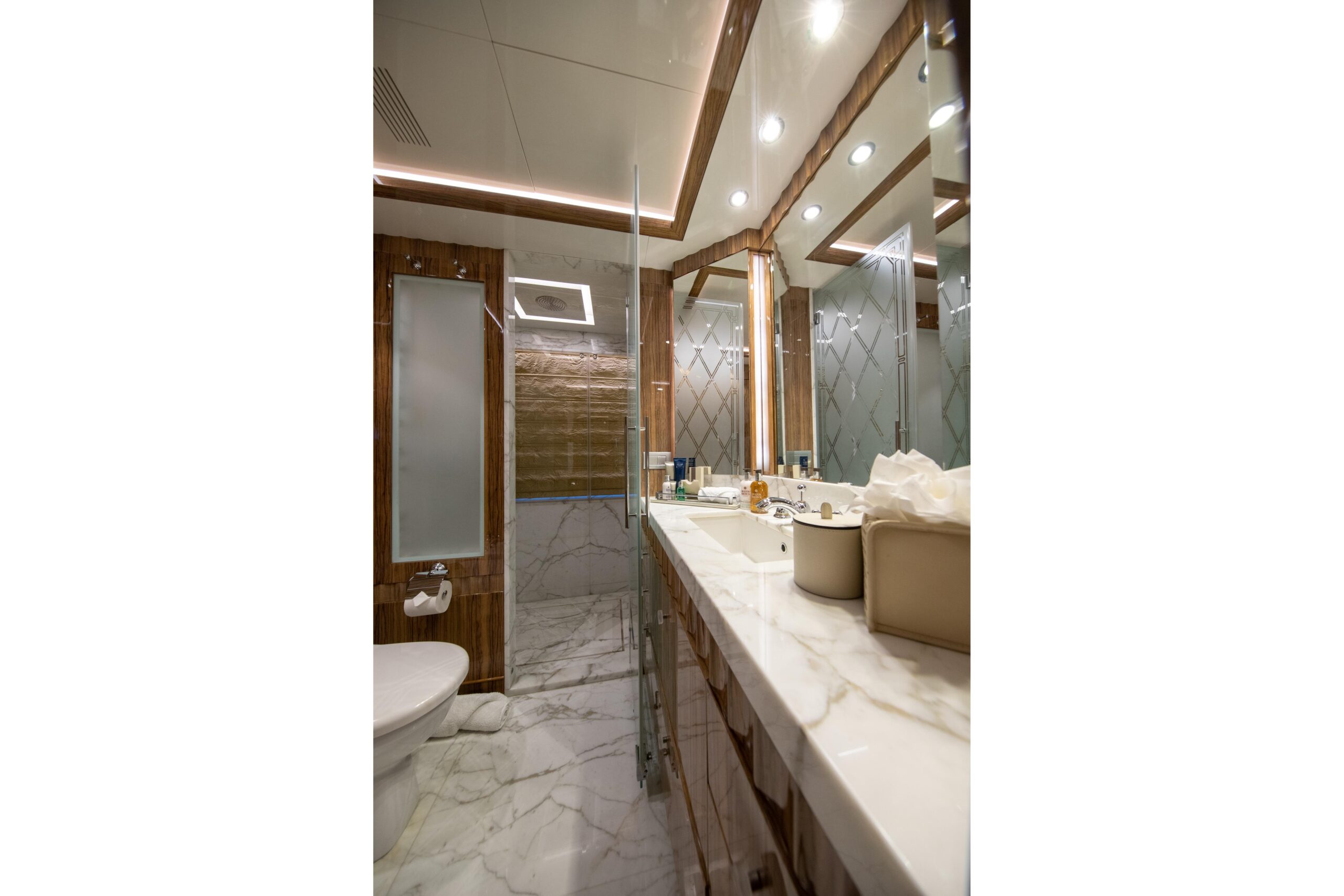 Наслаждайтесь чистой роскошью, позволяя дню раствориться в джакузи, где тёплая вода встречается с открытым горизонтом, создавая спокойный оазис в море. Каждая деталь на борту OKKO тщательно продумана, чтобы возвысить ваше путешествие.