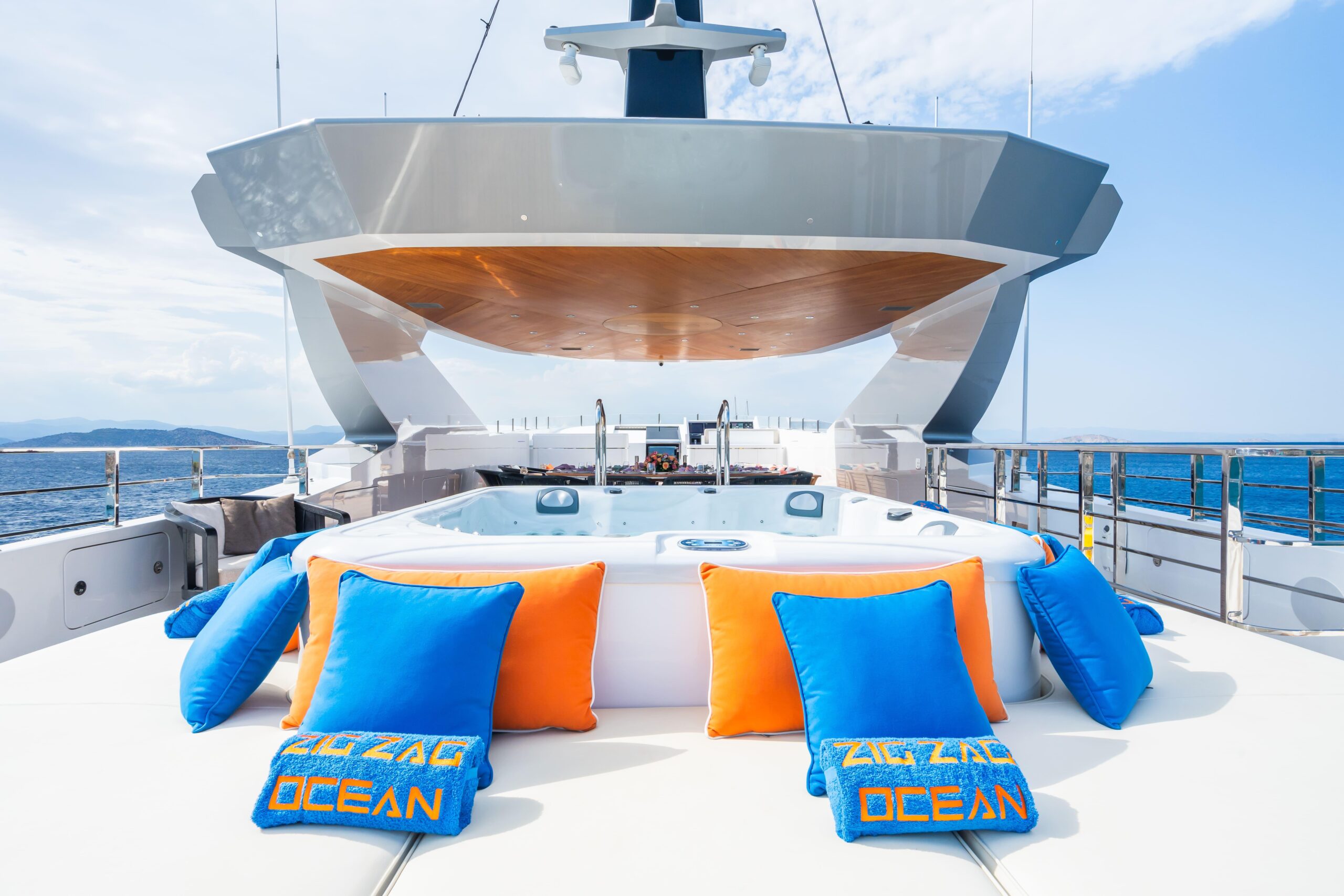 Zig Zag Ocean рассчитана на комфортное размещение до 10 гостей в 5 каютах. Все каюты отделаны материалами премиум-класса, включая высококачественную кожу и мрамор, обеспечивая максимальный комфорт и роскошь. Просторная полноширинная мастер-каюта оснащена гардеробной с большим объёмом хранения.