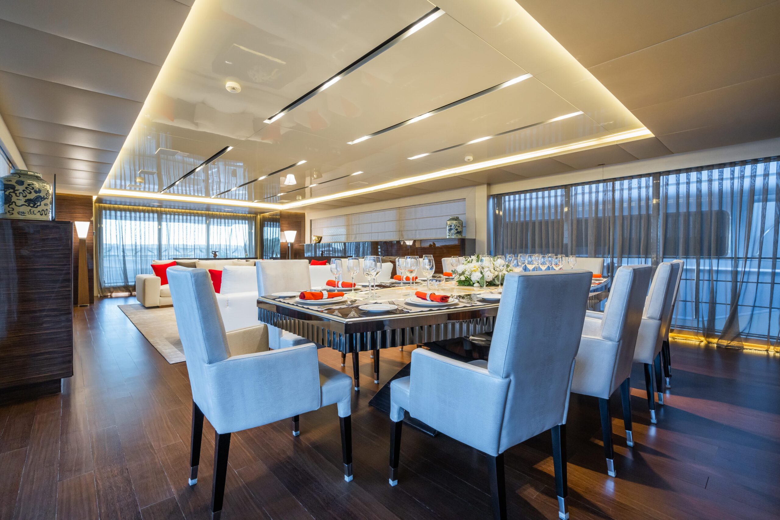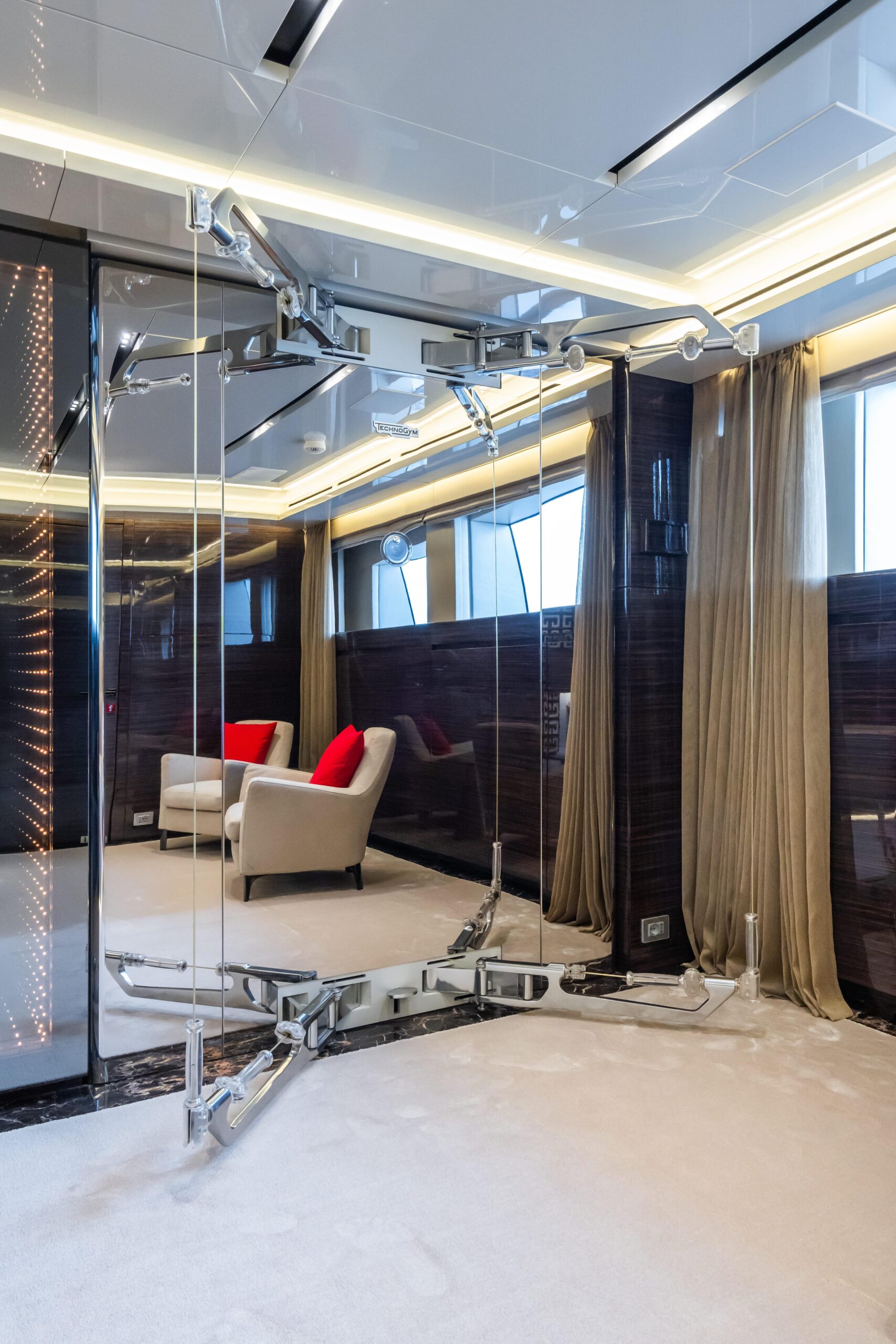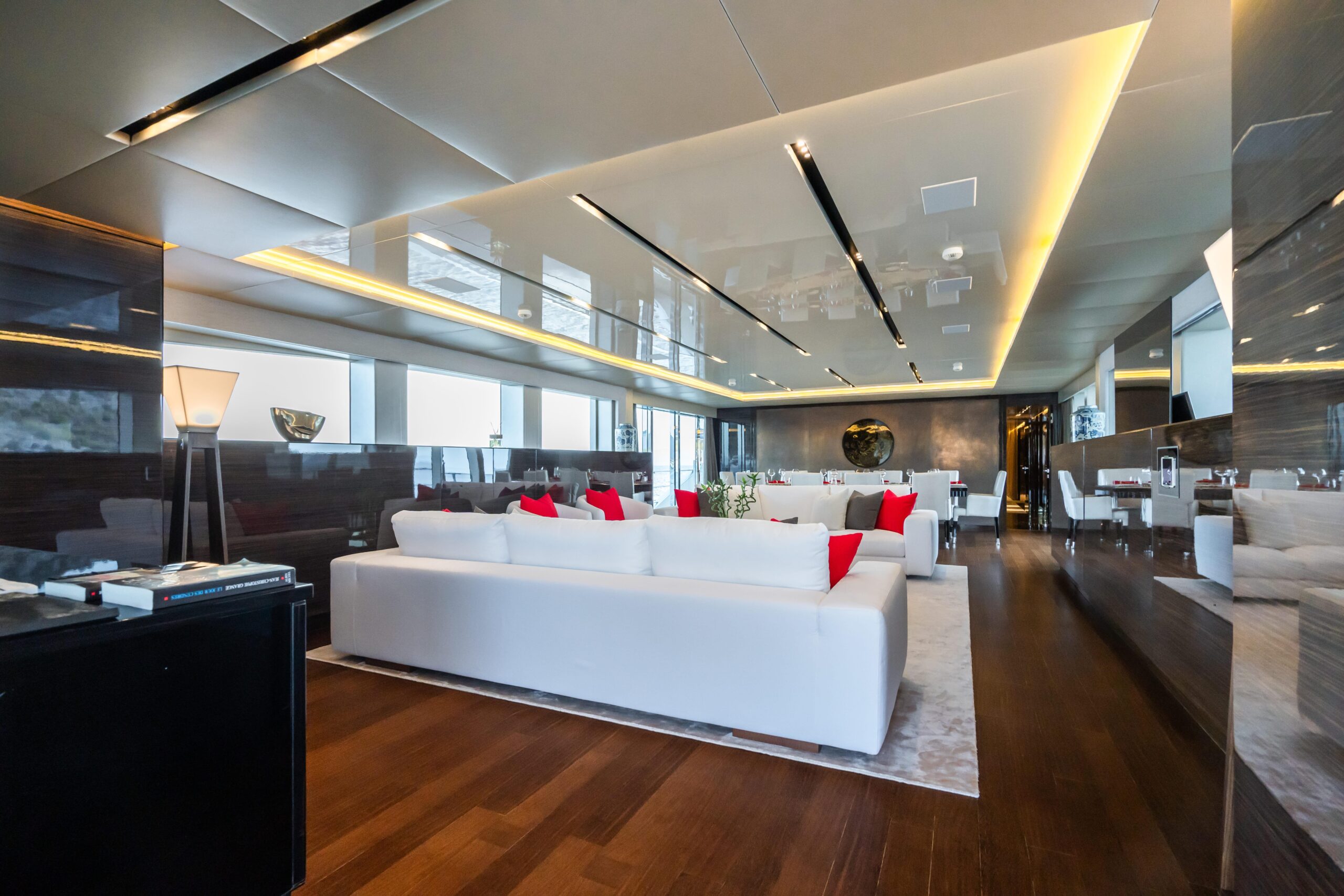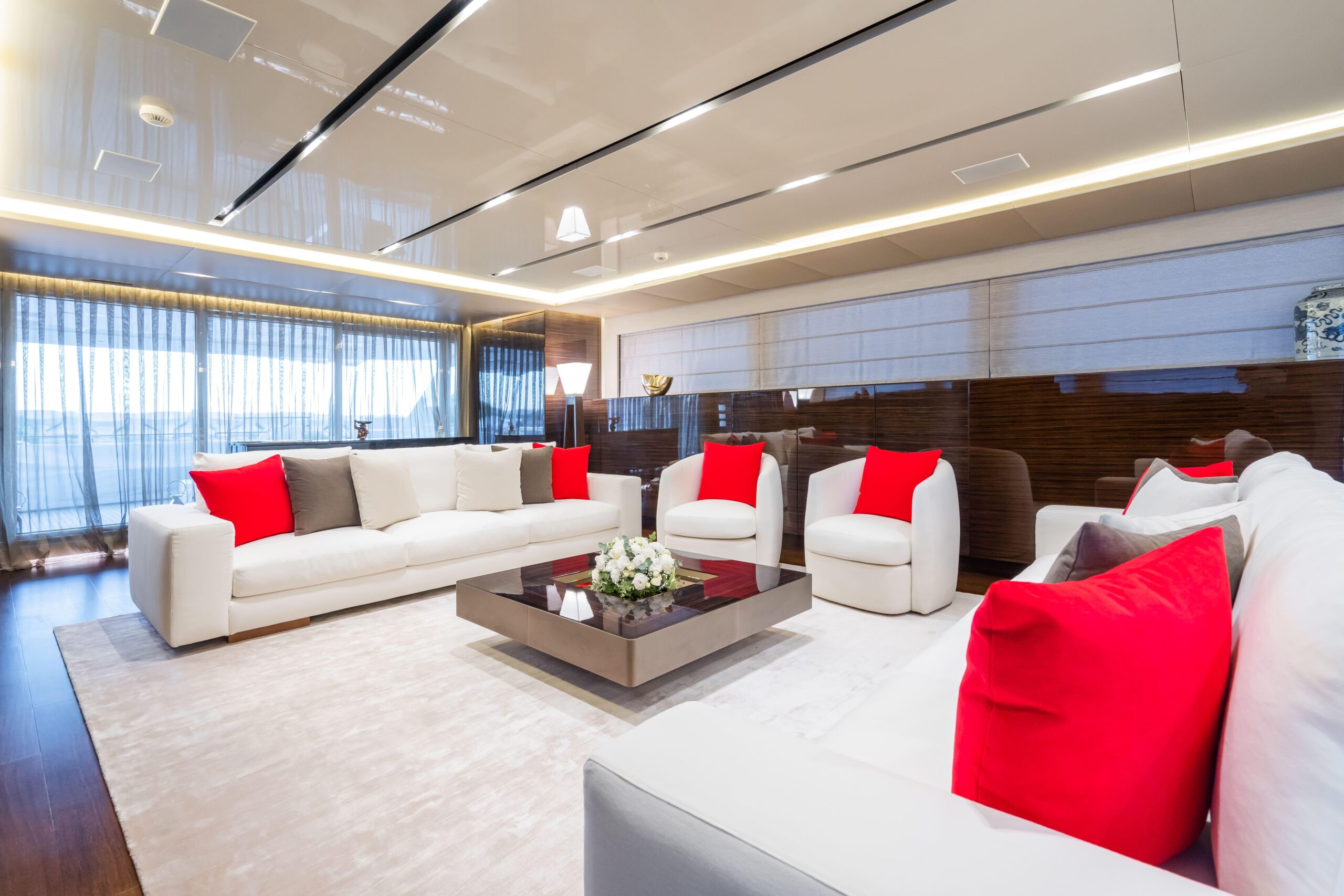 Яхта оснащена обширным списком опций и игрушек, а также дополнительным топливным баком увеличенной дальности, что делает её идеальной для чартерного использования. Планировка кают сосредоточена вокруг мастер-каюты и двух VIP-кают, что делает её отличным вариантом для отдыха семей и компаний друзей.