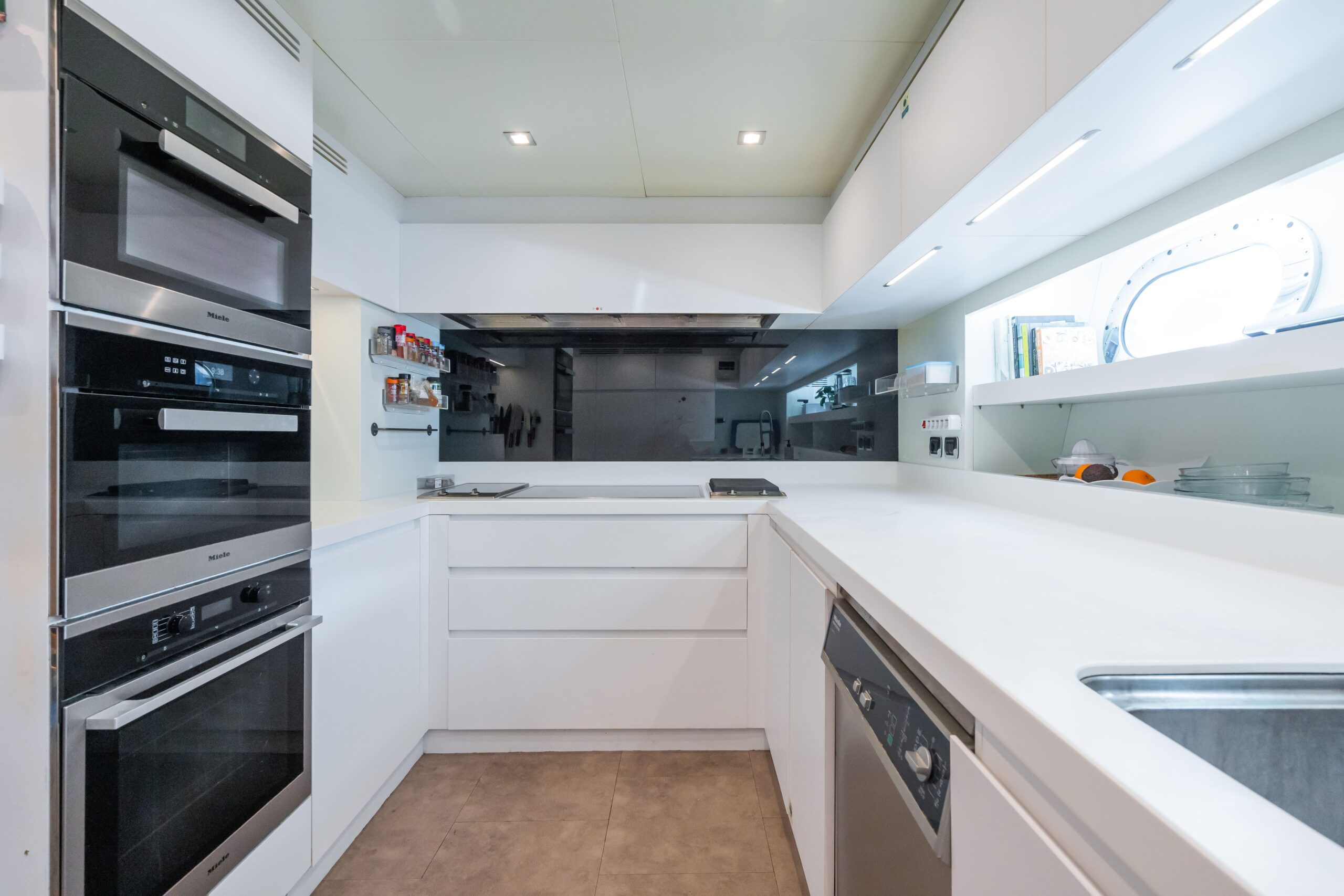 Служебная кладовая расположена всего в 3 метрах от главного салона на том же уровне палубы. Это удобное и полностью оборудованное помещение обеспечивает быстрый и эффективный сервис для гостей.