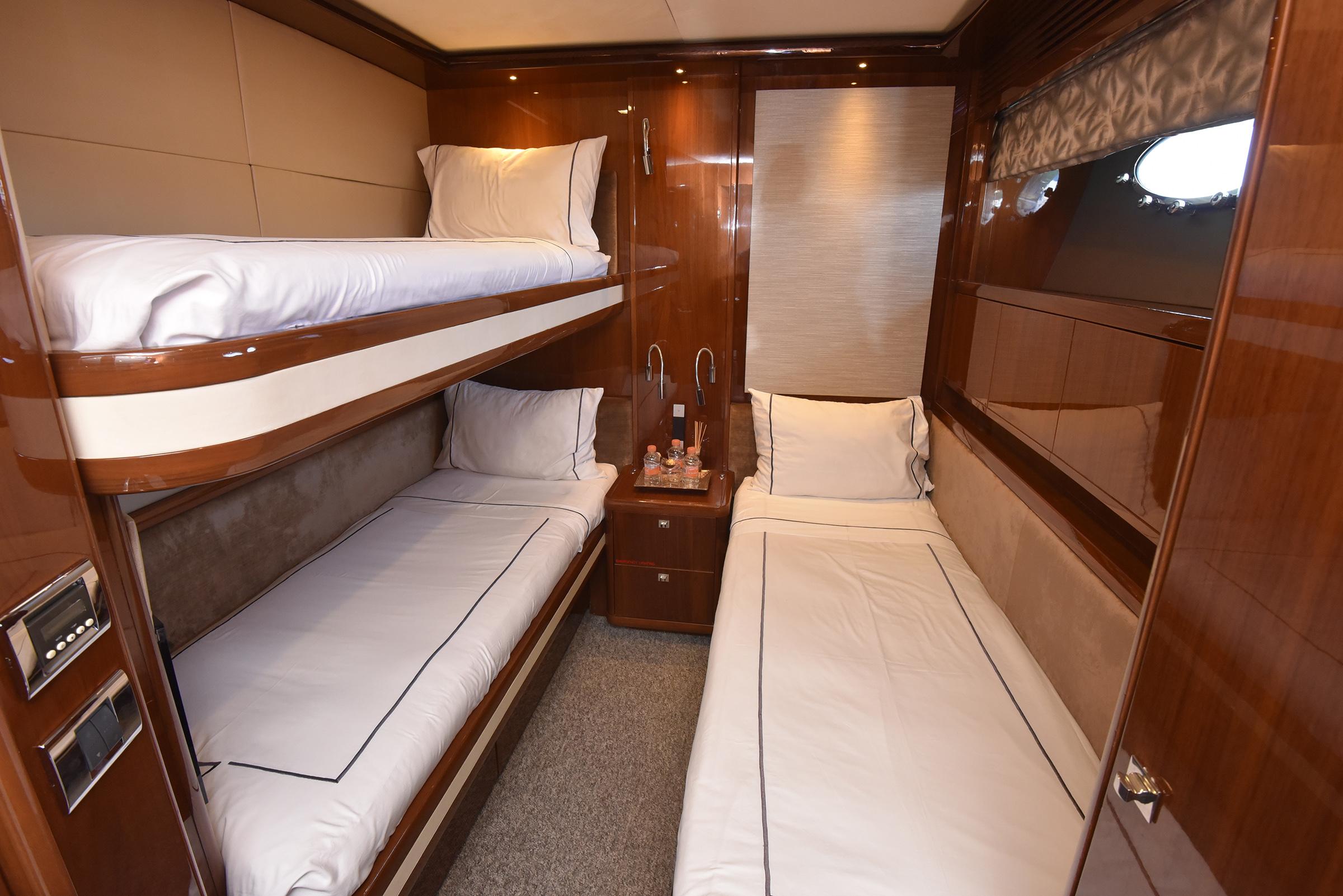 Princess One отличается редкой для своего класса планировкой с пятью полноценными каютами, включая мастер-каюту на всю ширину корпуса, просторный салон и камбуз, большое количество мест для хранения, а также обширные зоны отдыха и посадки на флайбридже, кормовой и носовой палубах — идеально для приёма гостей.