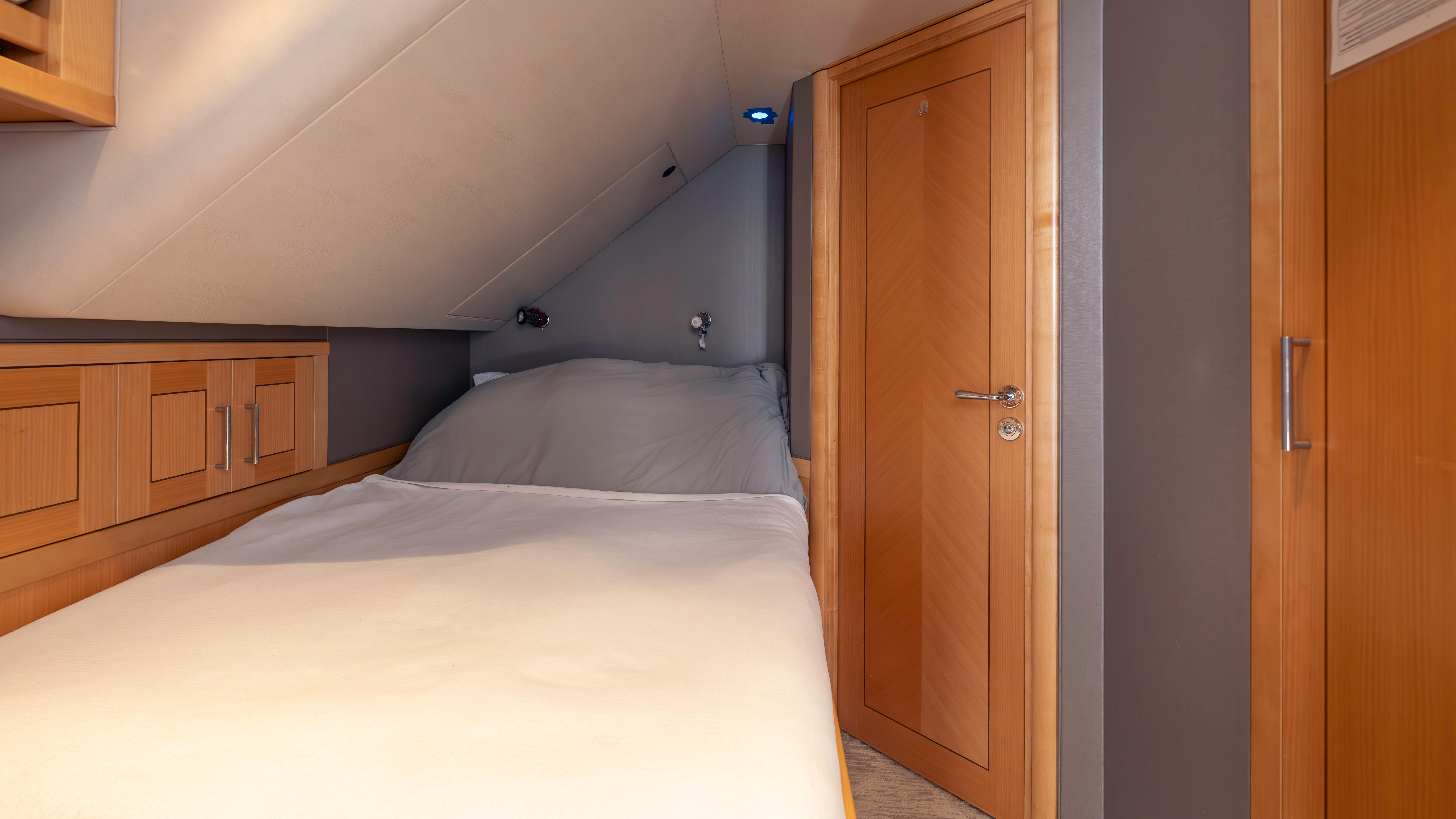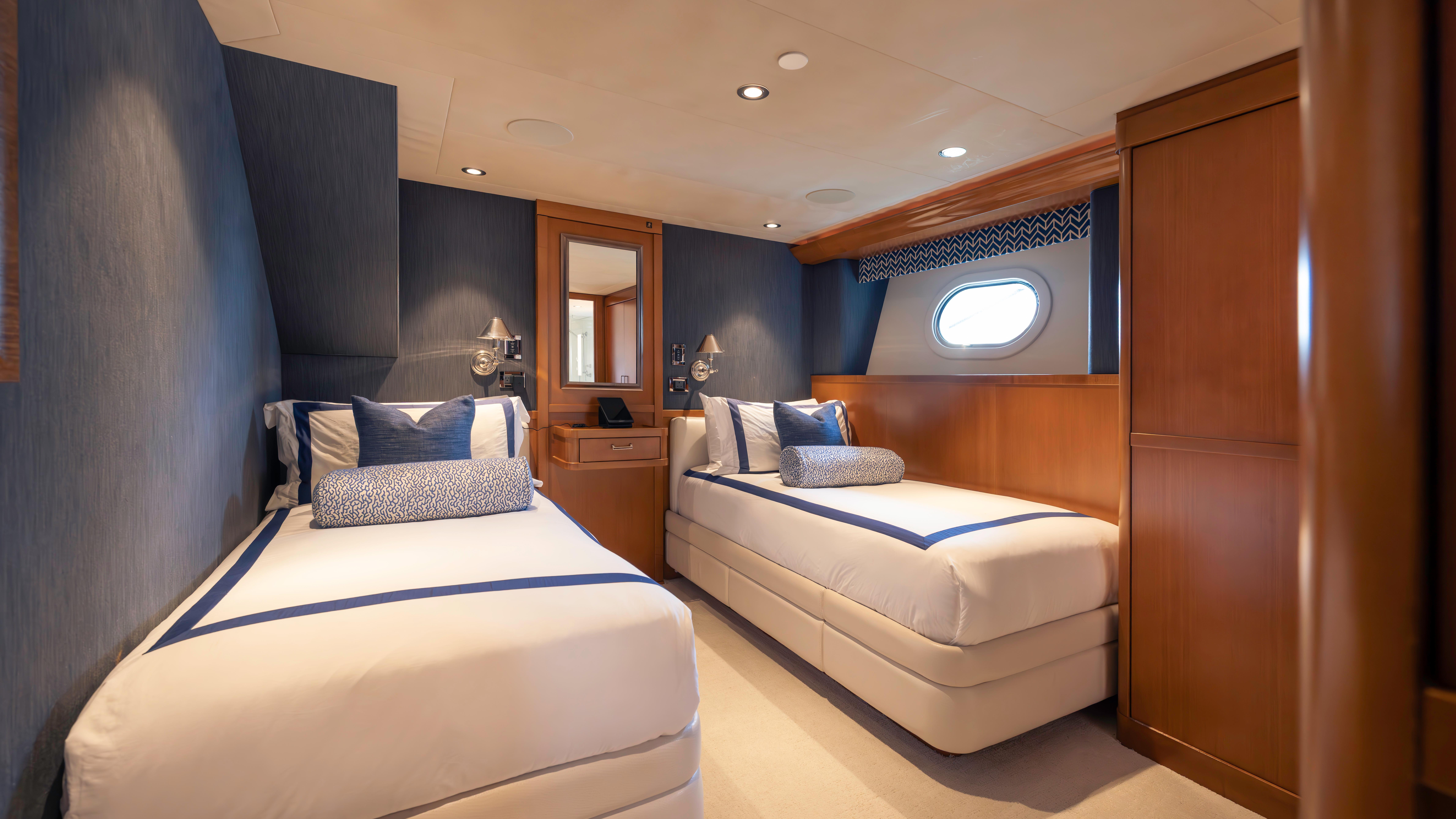 Westport 40M отличается грамотно спланированной компоновкой, максимально использующей пространство и обеспечивающей комфорт. Яхта располагает пятью роскошными каютами, включая мастер-каюту, и может разместить до десяти гостей. Каждая каюта оформлена с элегантной отделкой и имеет достаточное количество мест для хранения, создавая расслабляющую атмосферу для всех находящихся на борту.