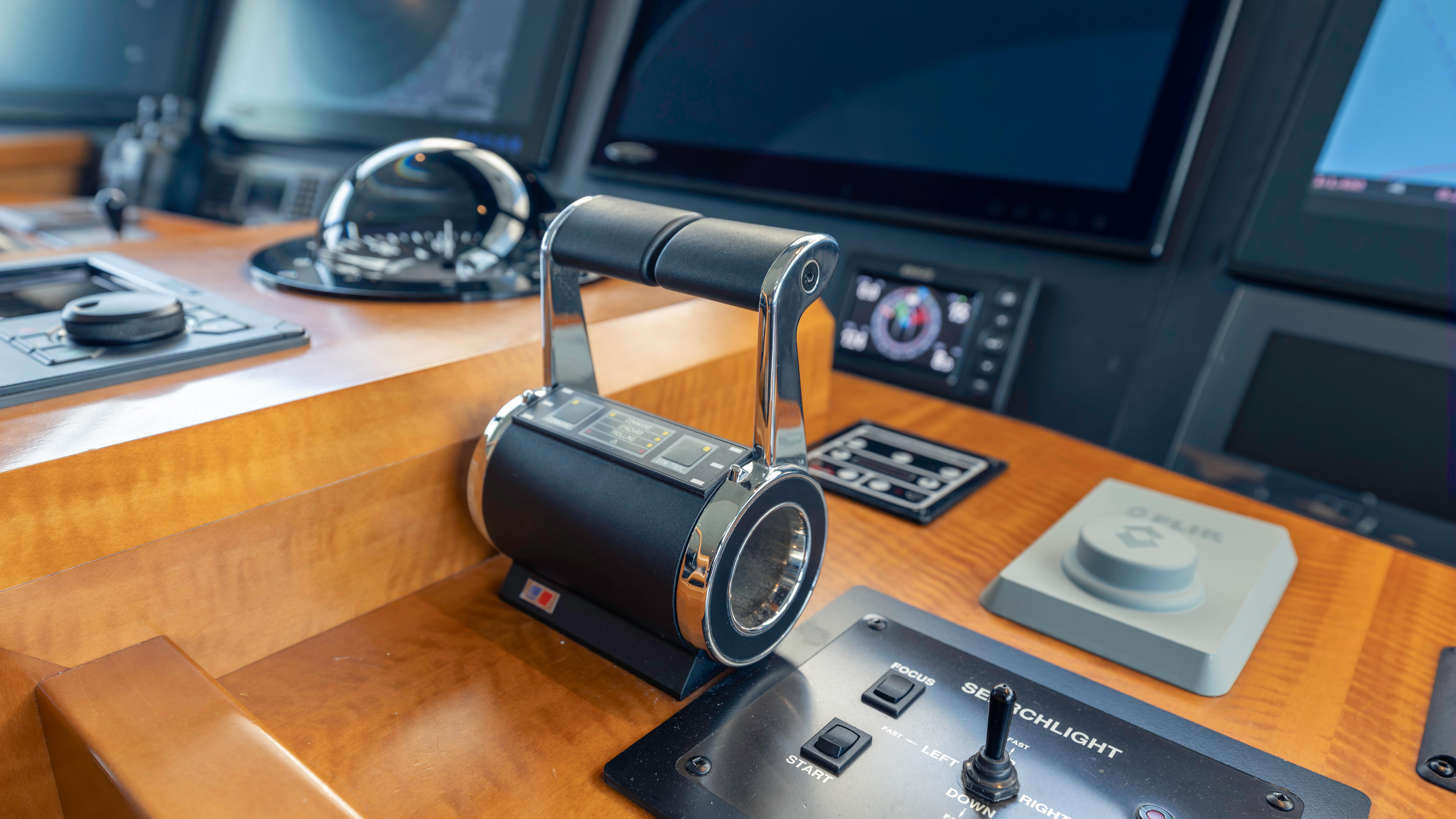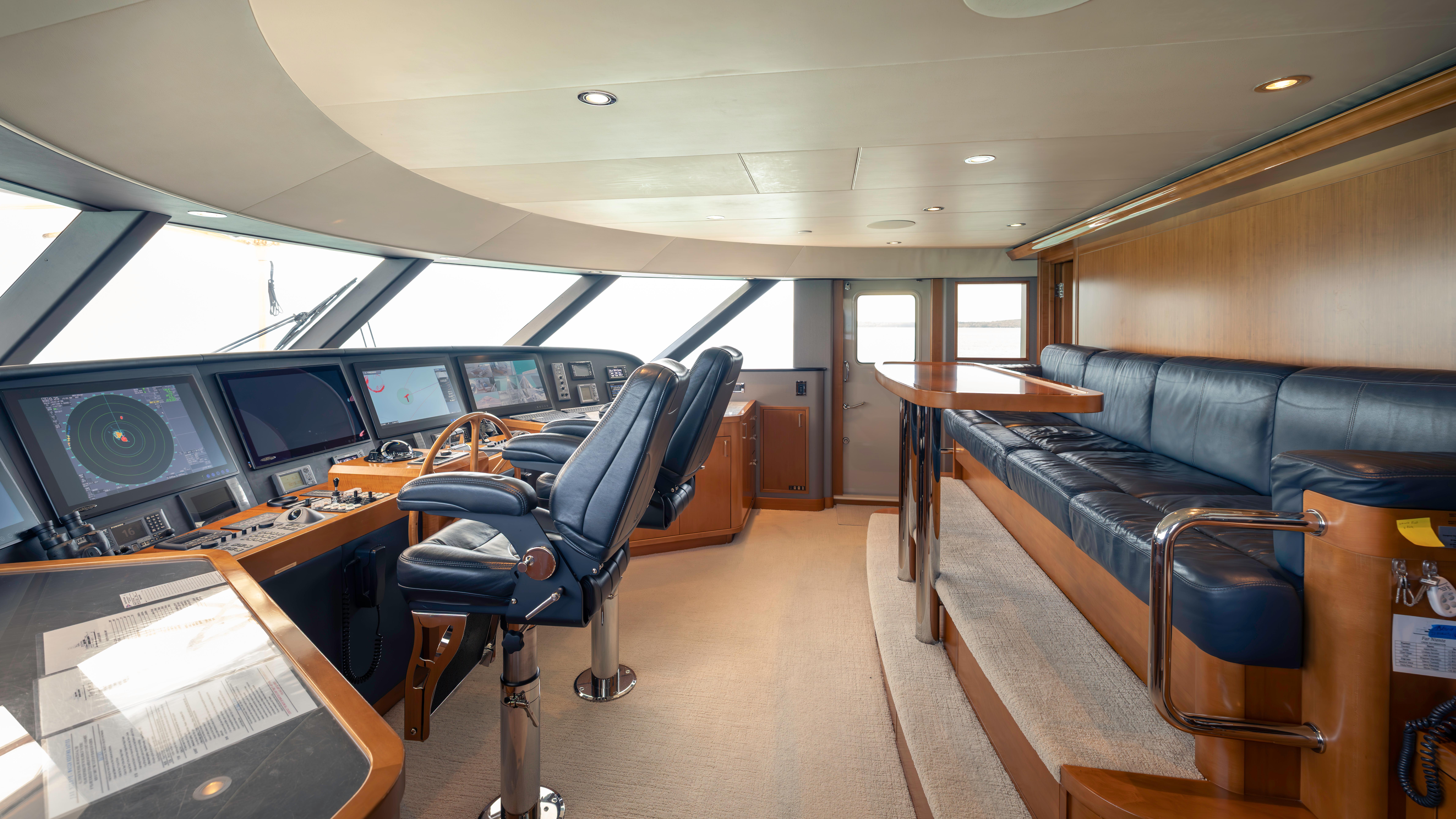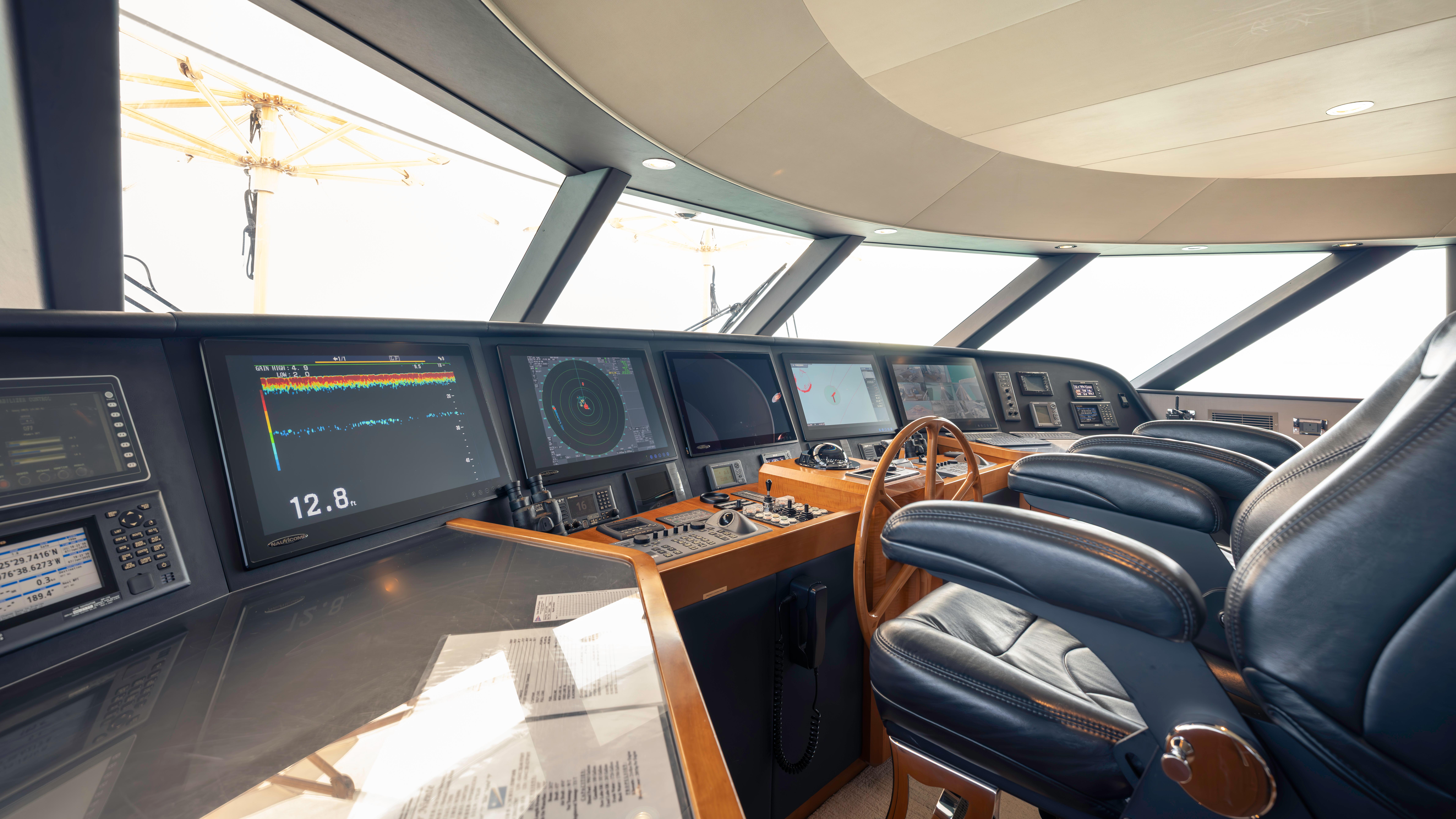 Непосредственно перед скайлаунжем расположена рулевая рубка с приподнятым диваном, откуда гости могут наблюдать за управлением судном и окружающими пейзажами. Это также популярное место для утреннего кофе с панорамными видами. Для капитана и экипажа предусмотрен современный навигационный и коммуникационный комплекс последнего поколения.