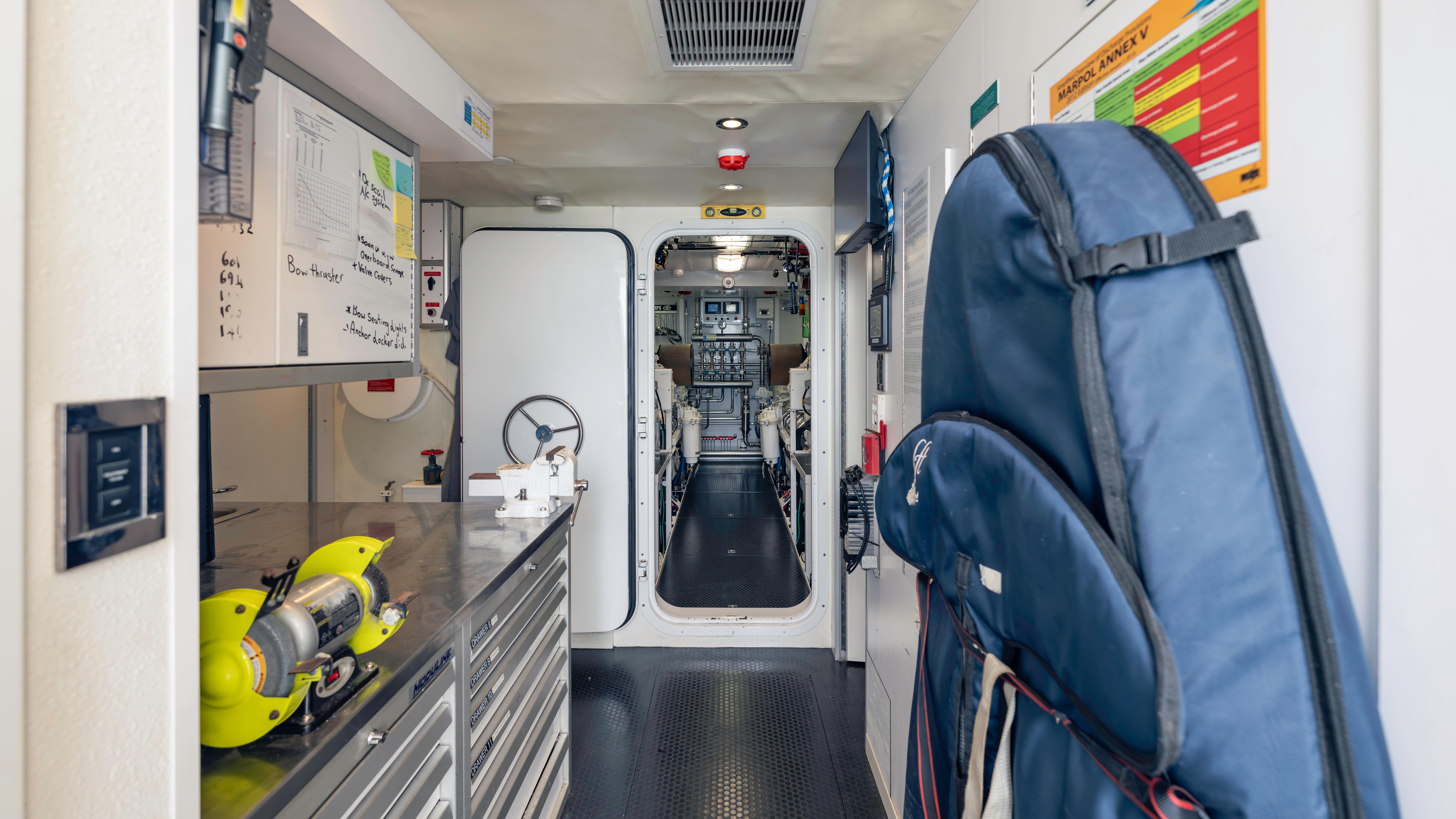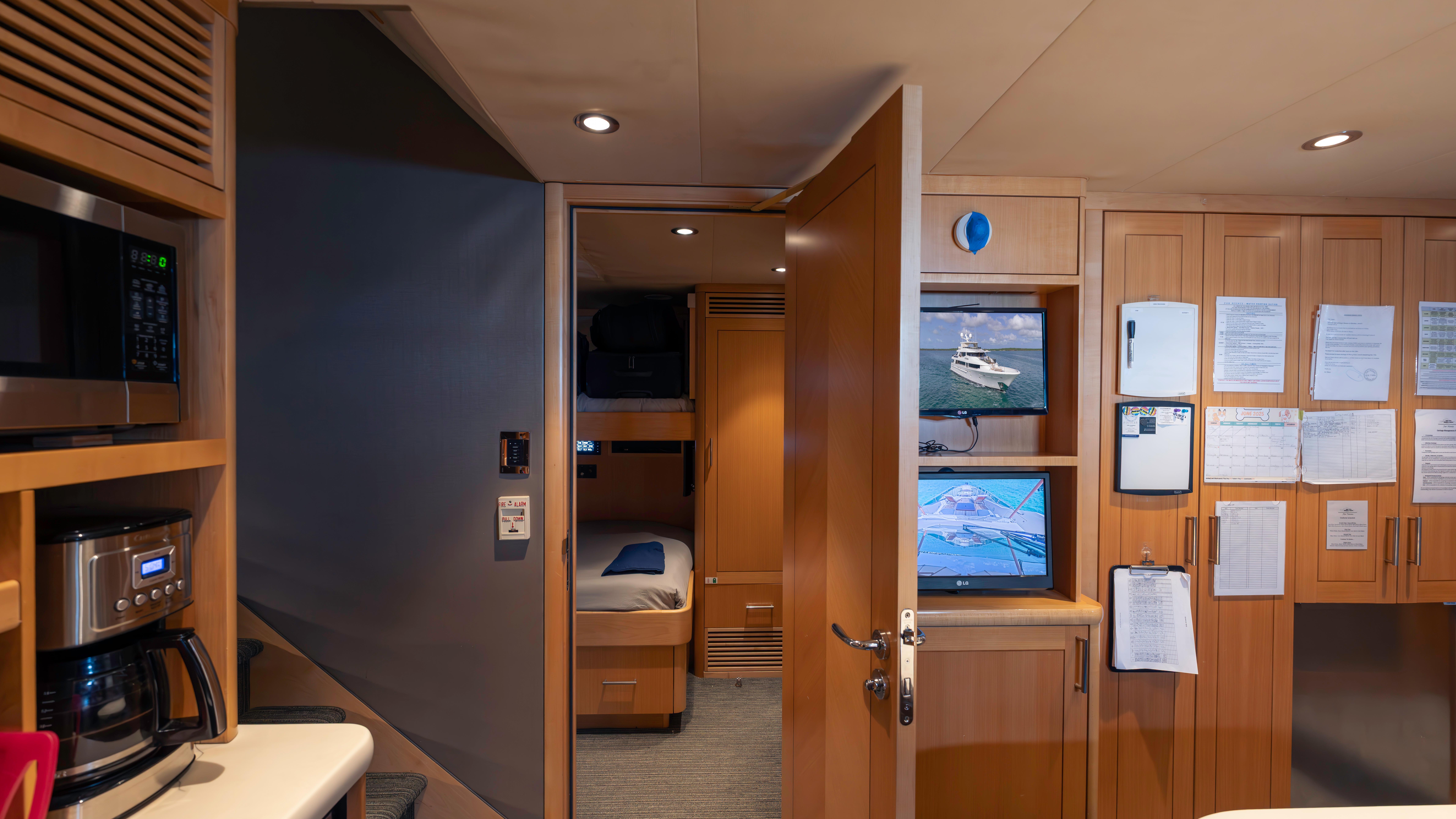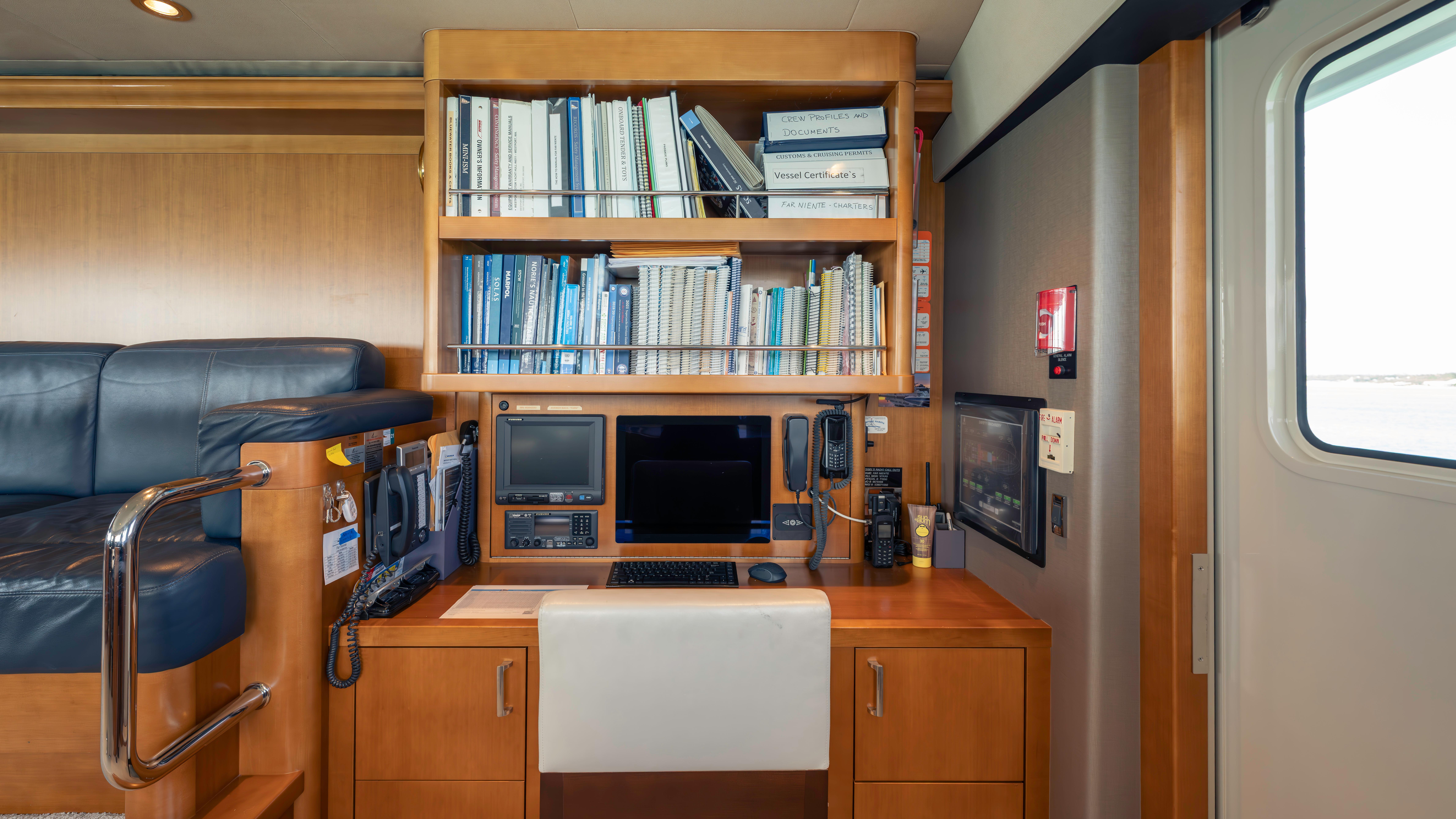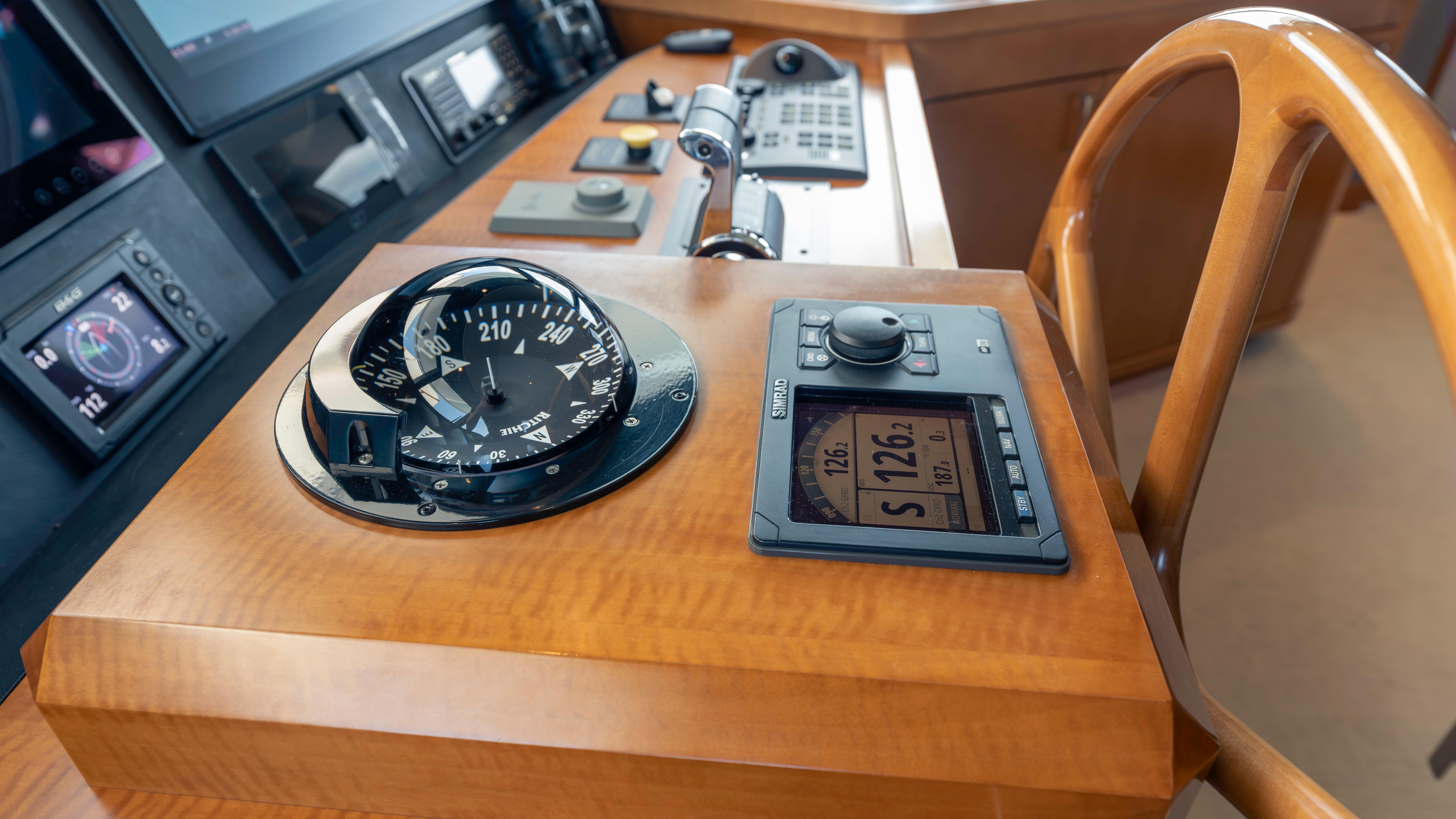 Непосредственно перед скайлаунжем расположена рулевая рубка с приподнятым диваном, откуда гости могут наблюдать за управлением судном и окружающими пейзажами. Это также популярное место для утреннего кофе с панорамными видами. Для капитана и экипажа предусмотрен современный навигационный и коммуникационный комплекс последнего поколения.
