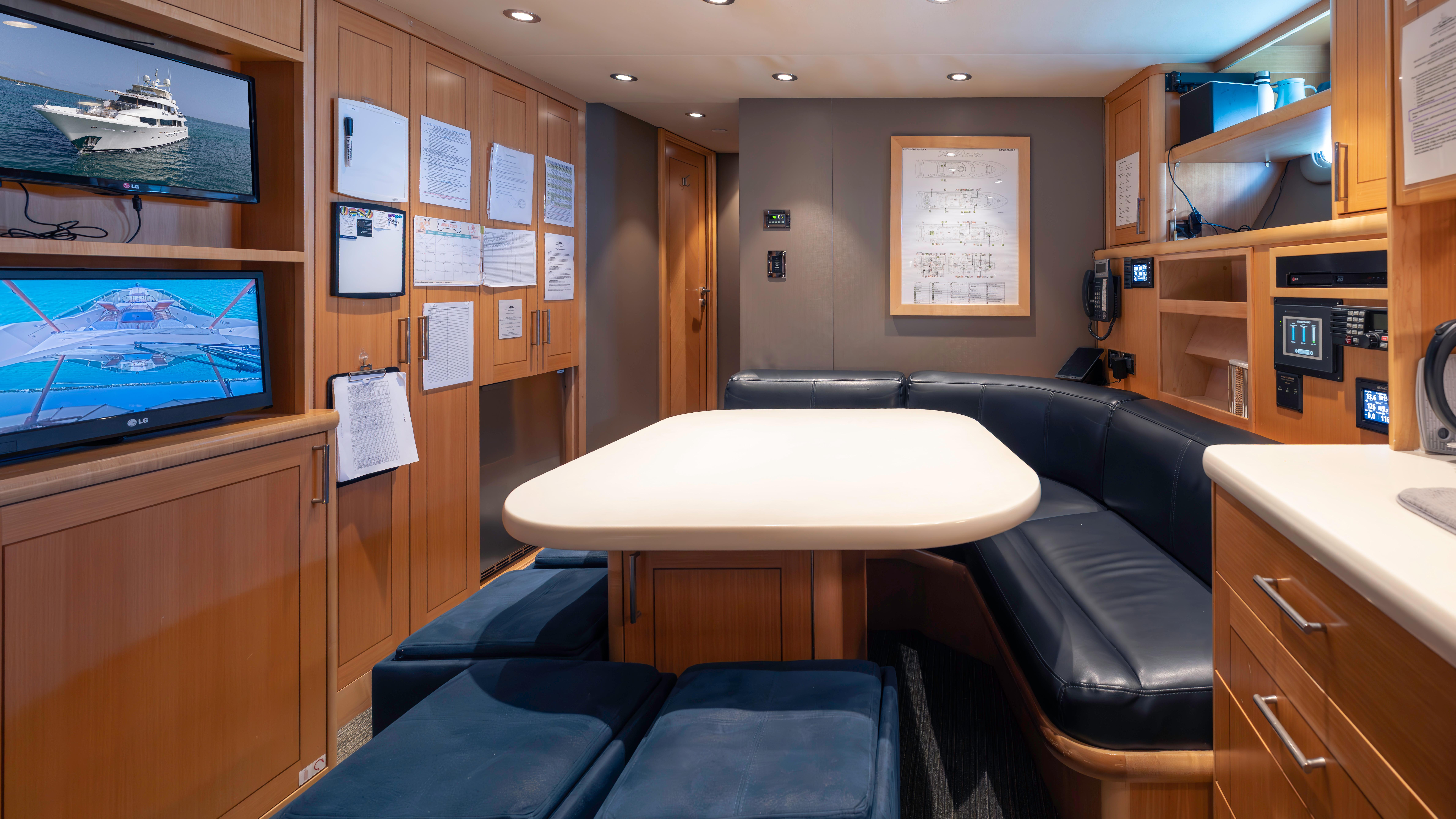 В носовой части от главного салона расположена формальная обеденная зона. Обслуживание осуществляется напрямую из камбуза через двустворчатую дверь.