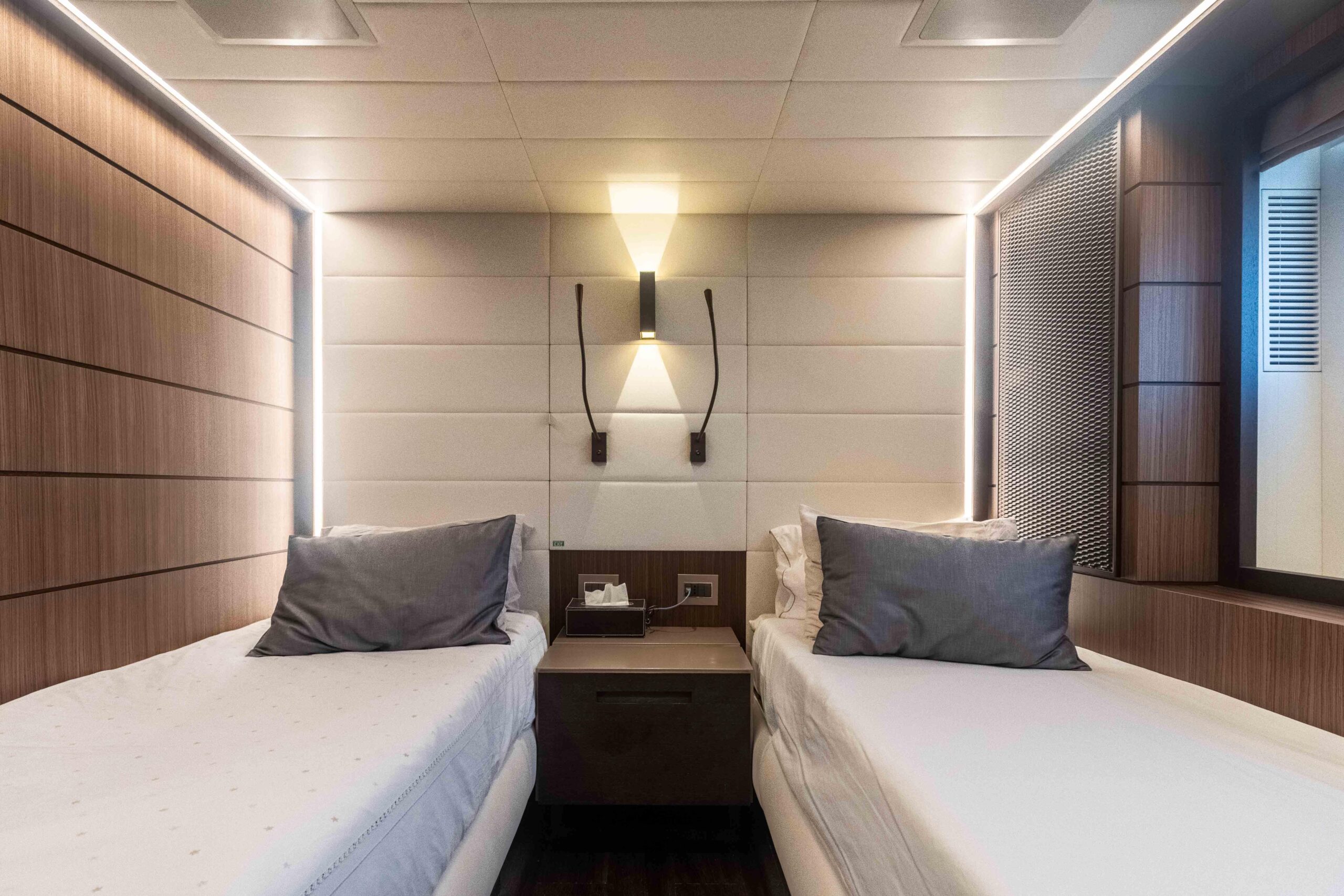 2 x каюты с раздельными кроватями и собственными санузлами, одна из которых трансформируется в двуспальную