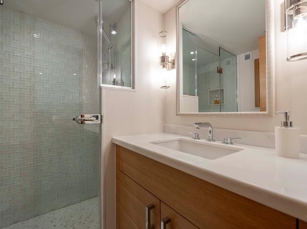 • Душ камень/плитка с безрамной стеклянной дверью