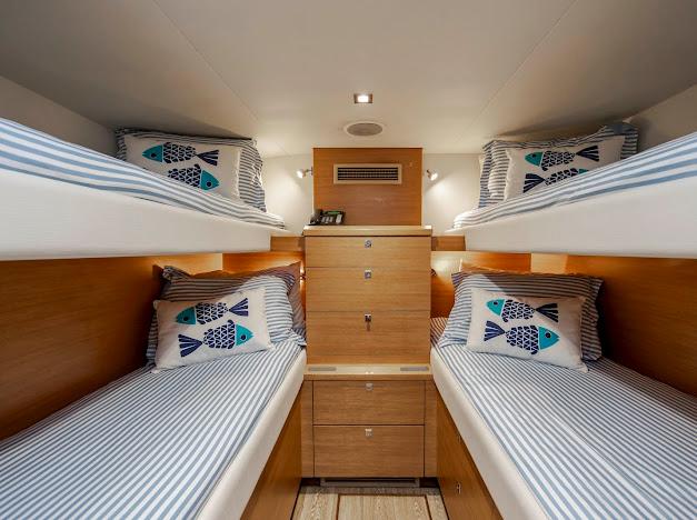 LIVING THE EXPERIENCE ПРЕДЛАГАЕТ ПЛАНИРОВКУ С 5 КАЮТАМИ, РАССЧИТАННЫМИ ДО 12 ГОСТЕЙ, ВКЛЮЧАЯ МАСТЕР-КАЮТУ И 3 ГОСТЕВЫЕ КАЮТЫ, КАЖДАЯ СО СВОЕЙ СОБСТВЕННОЙ ВАННОЙ КОМНАТОЙ, ОБЕСПЕЧИВАЯ ПРИВАТНОСТЬ ДЛЯ ВЛАДЕЛЬЦЕВ И ГОСТЕЙ. ДОПОЛНИТЕЛЬНО ПРОСТОРНЫЕ КАЮТЫ ЭКИПАЖА РАССЧИТАНЫ НА 6 ЧЕЛОВЕК.