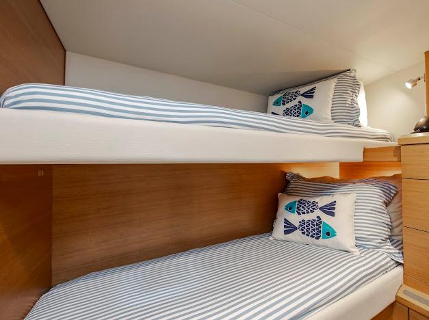 • Двухъярусные кровати (правая каюта) и двуспальная кровать (левая каюта)