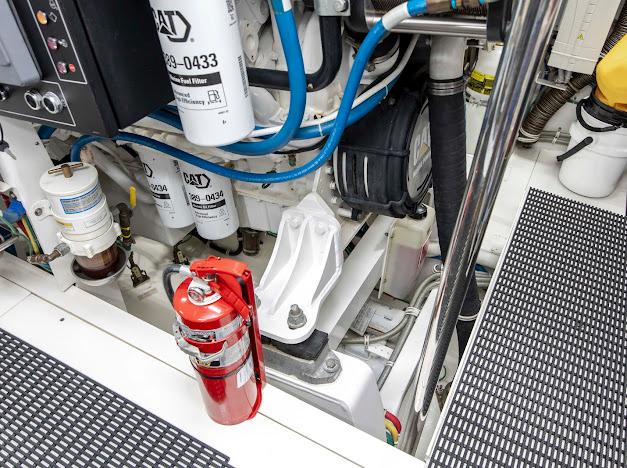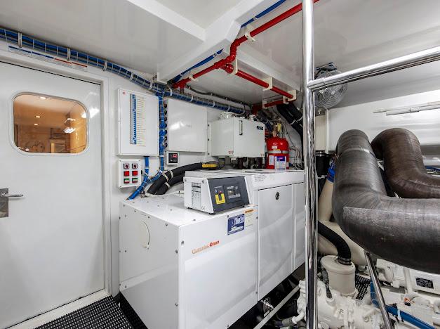 • Стационарная система пожаротушения FM200 для отсека двигателей/генераторов с автоматическим и дистанционным ручным запуском, плюс звуковая и световая сигнализация срабатывания