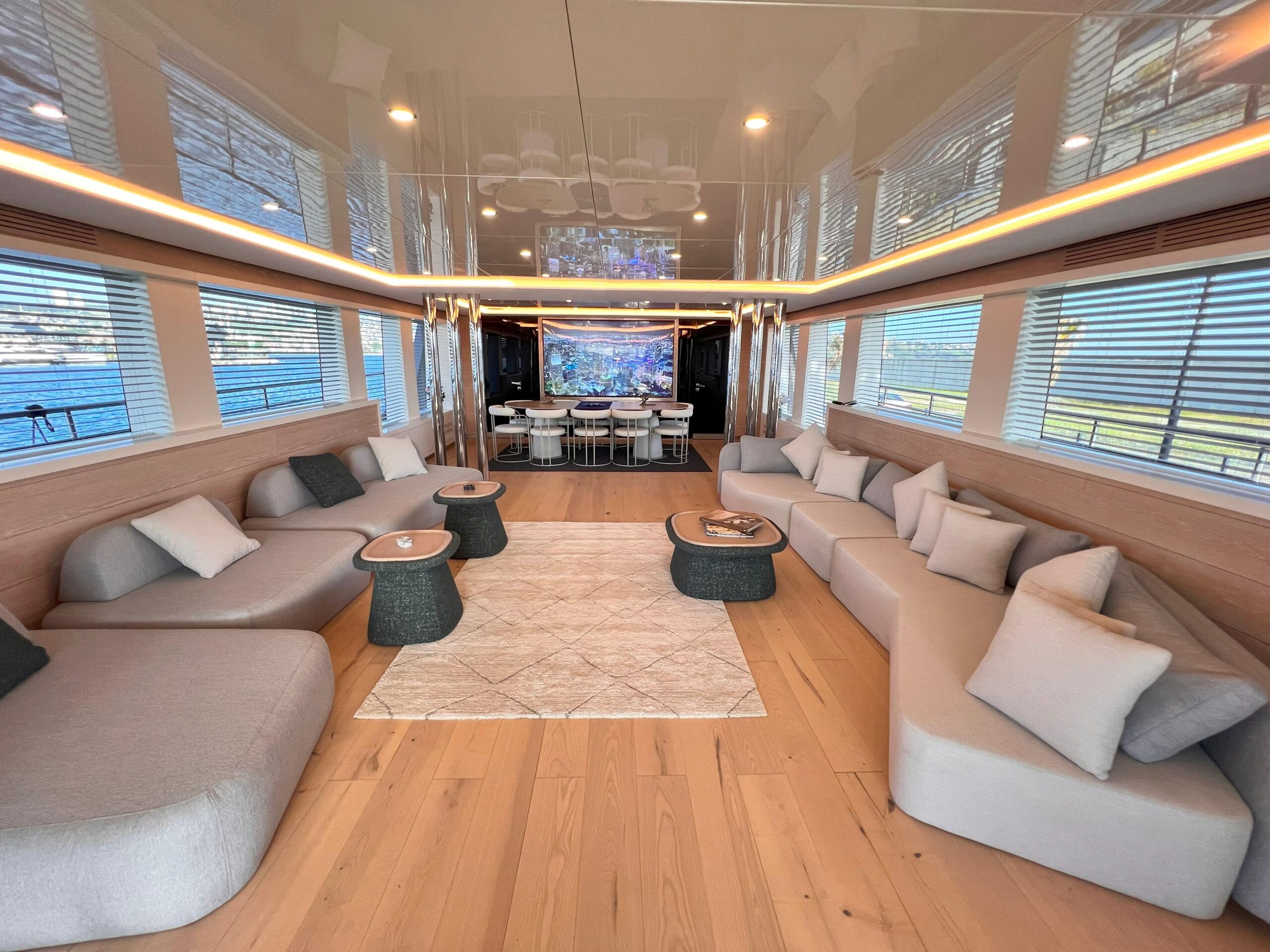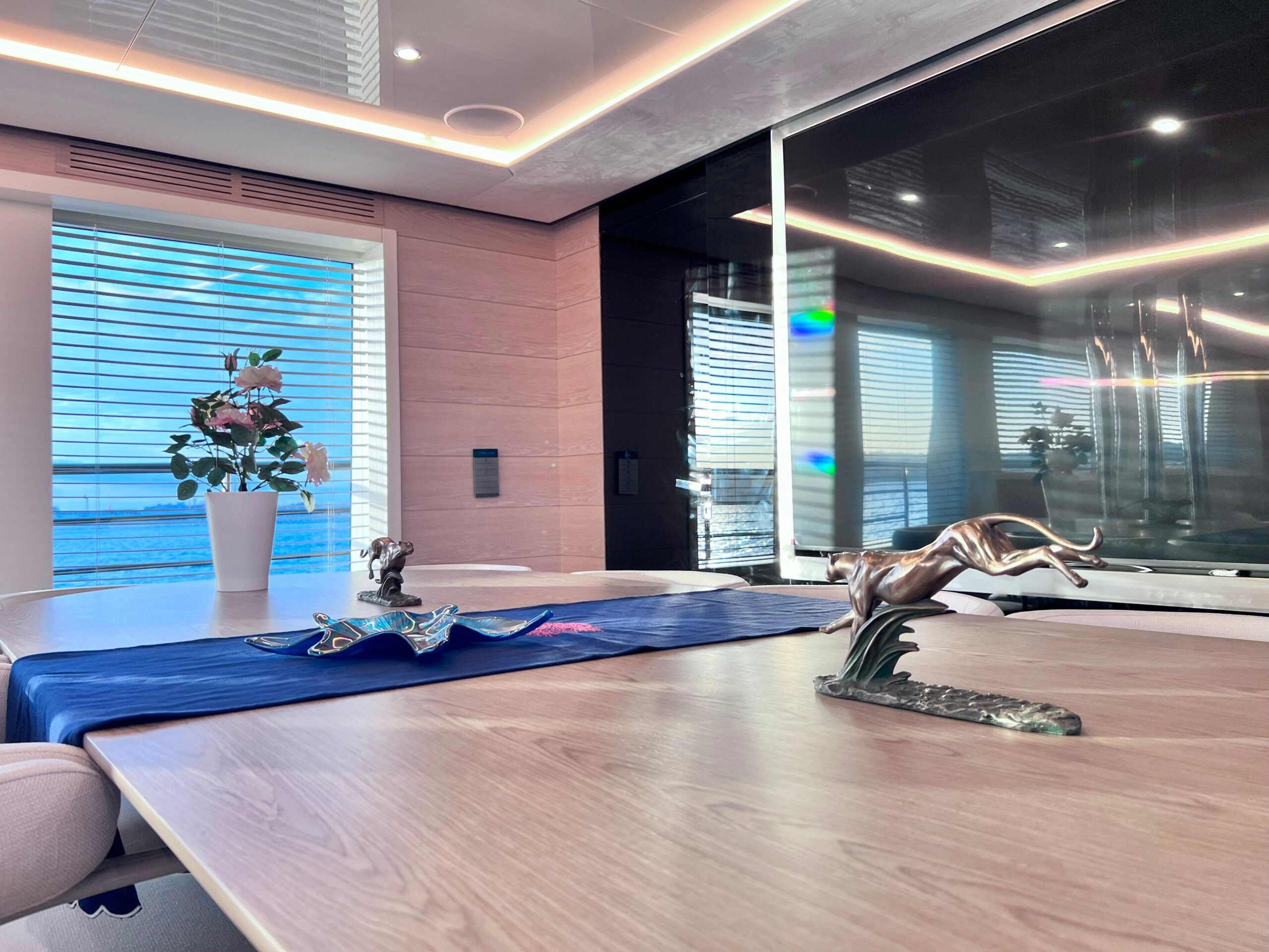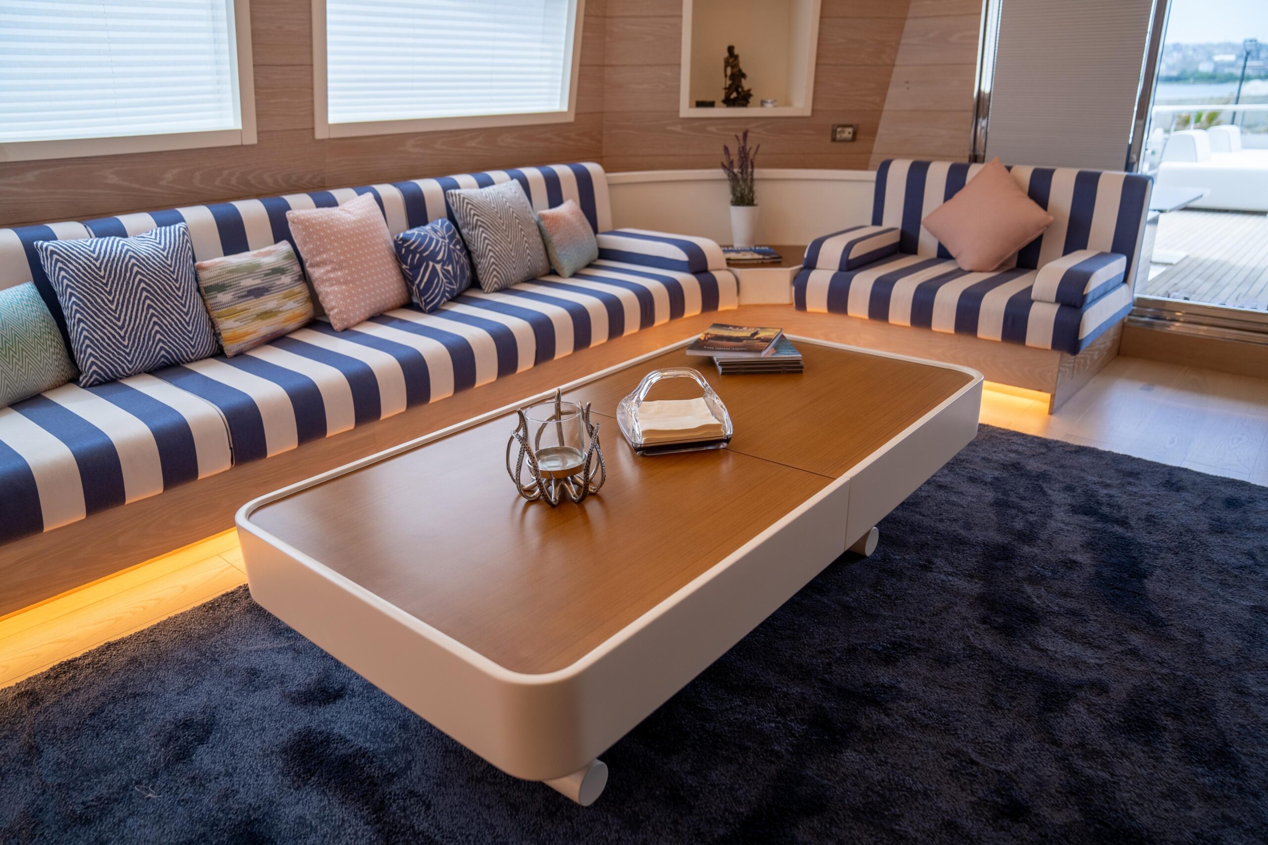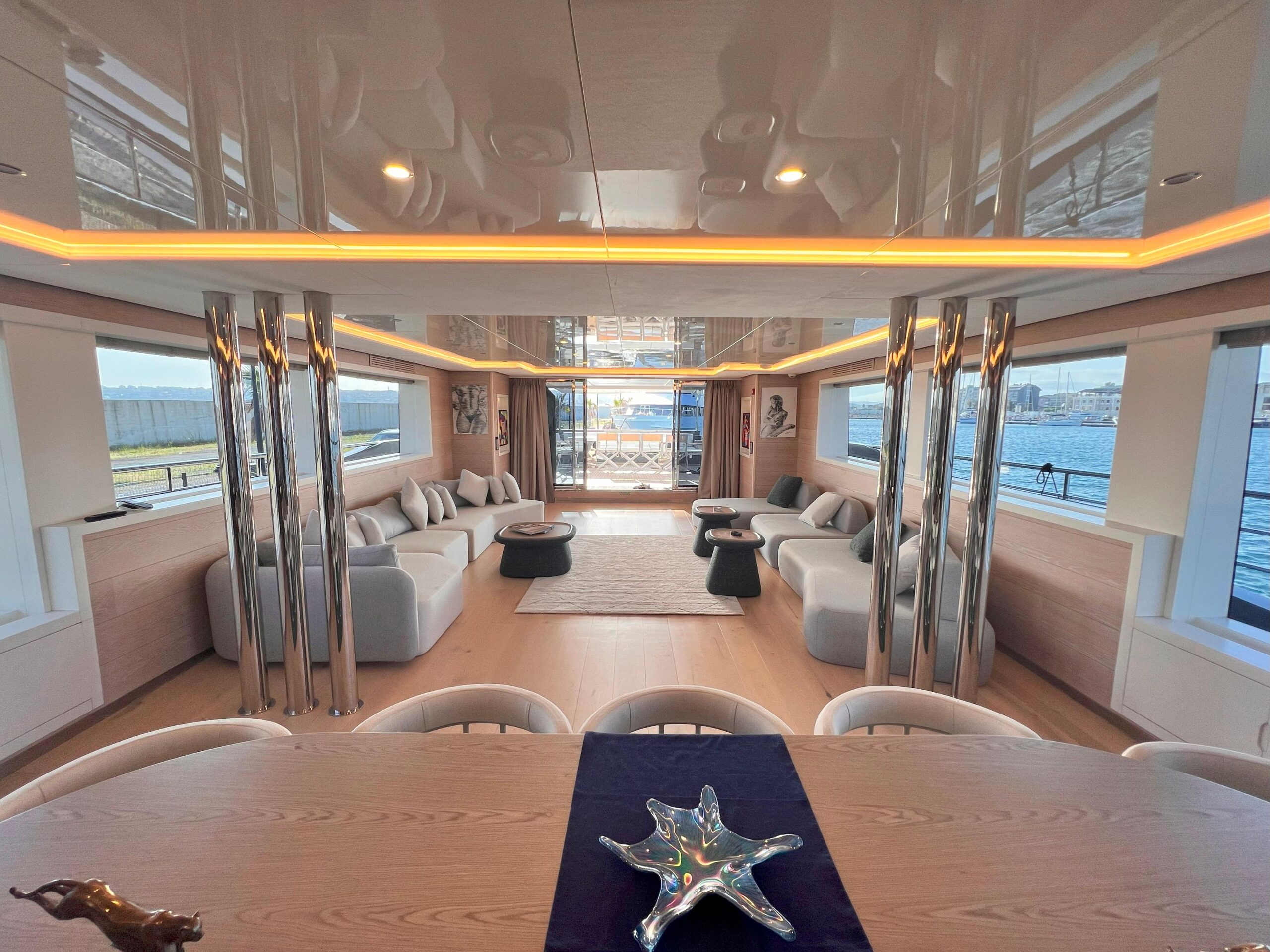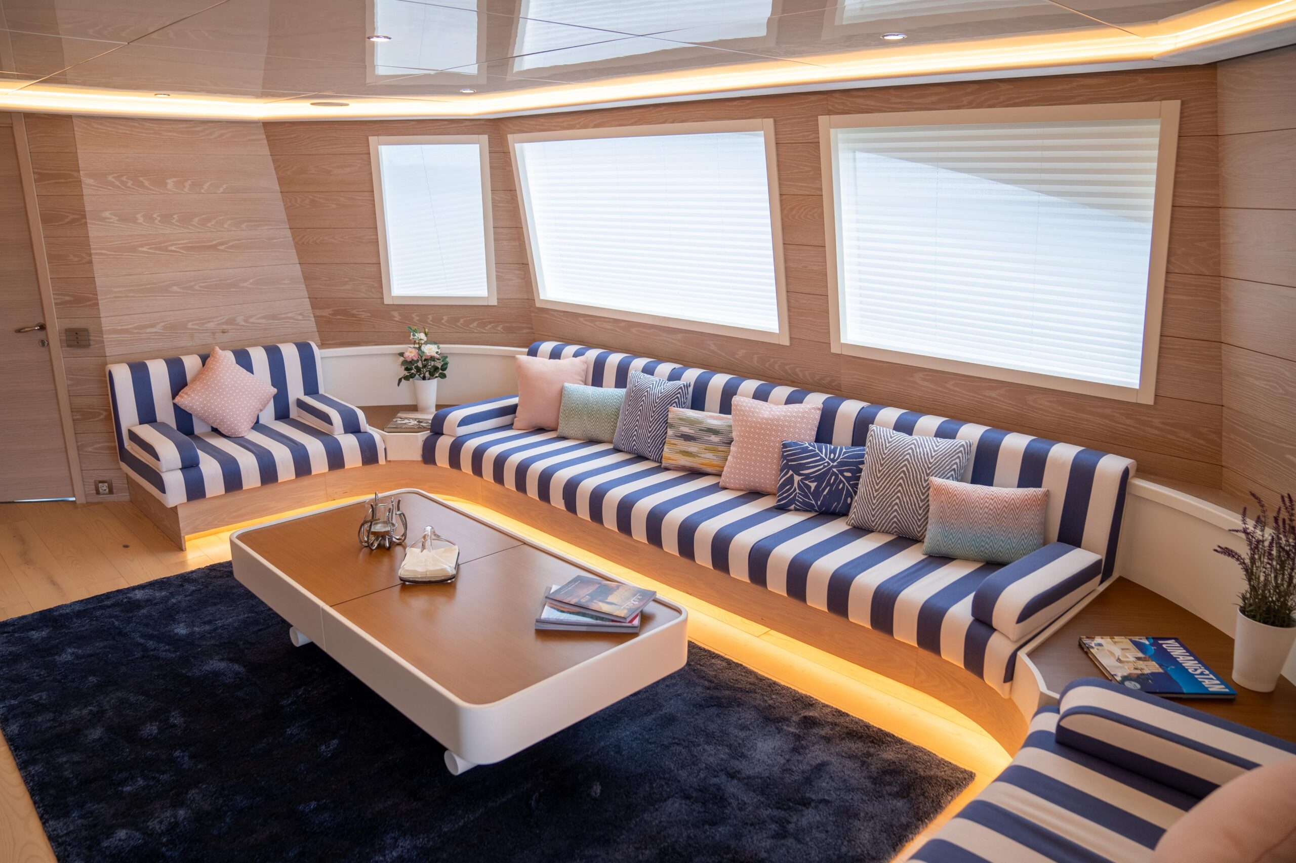 Новый дизайн сочетает современный минимализм с классическими морскими акцентами, включая полосатую обивку. Ибрагим Конья и его команда курировали редизайн, добавив новую мебель и детали по всей яхте. Среди значимых нововведений — новая игровая комната на верхней палубе и современные телевизоры с большим экраном как на верхней, так и на главной палубах.