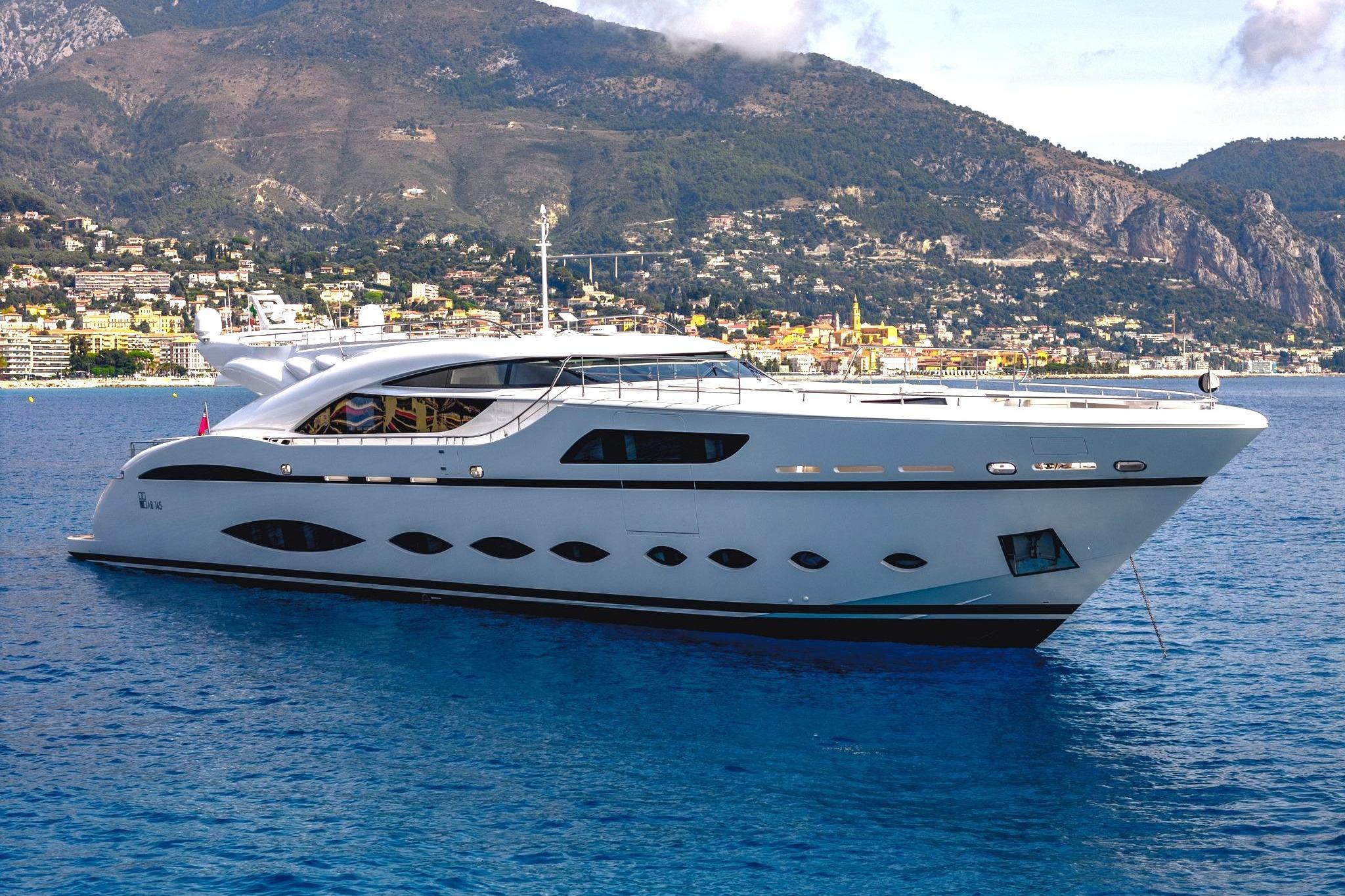 Уникальный экстерьер и интерьер, созданные верфью AB в тесном сотрудничестве с владельцем. Мировые лидеры в области водомётных двигательных установок. Предлагает исключительный уровень комфорта и непревзойдённые динамические характеристики. Оснащена тремя (3) двигателями MTU M94, обеспечивающими захватывающую максимальную скорость до 42 узлов. Просторные зоны отдыха и развлечений на открытом воздухе — от носовой палубы и сандека до бич-клаба. Современные и стильные интерьеры с обилием естественного света. Мастер-каюта с опускающимся балконом. Большой гараж для тендера и просторный бич-клаб. Офисное пространство / тренажёрный зал на нижней палубе.