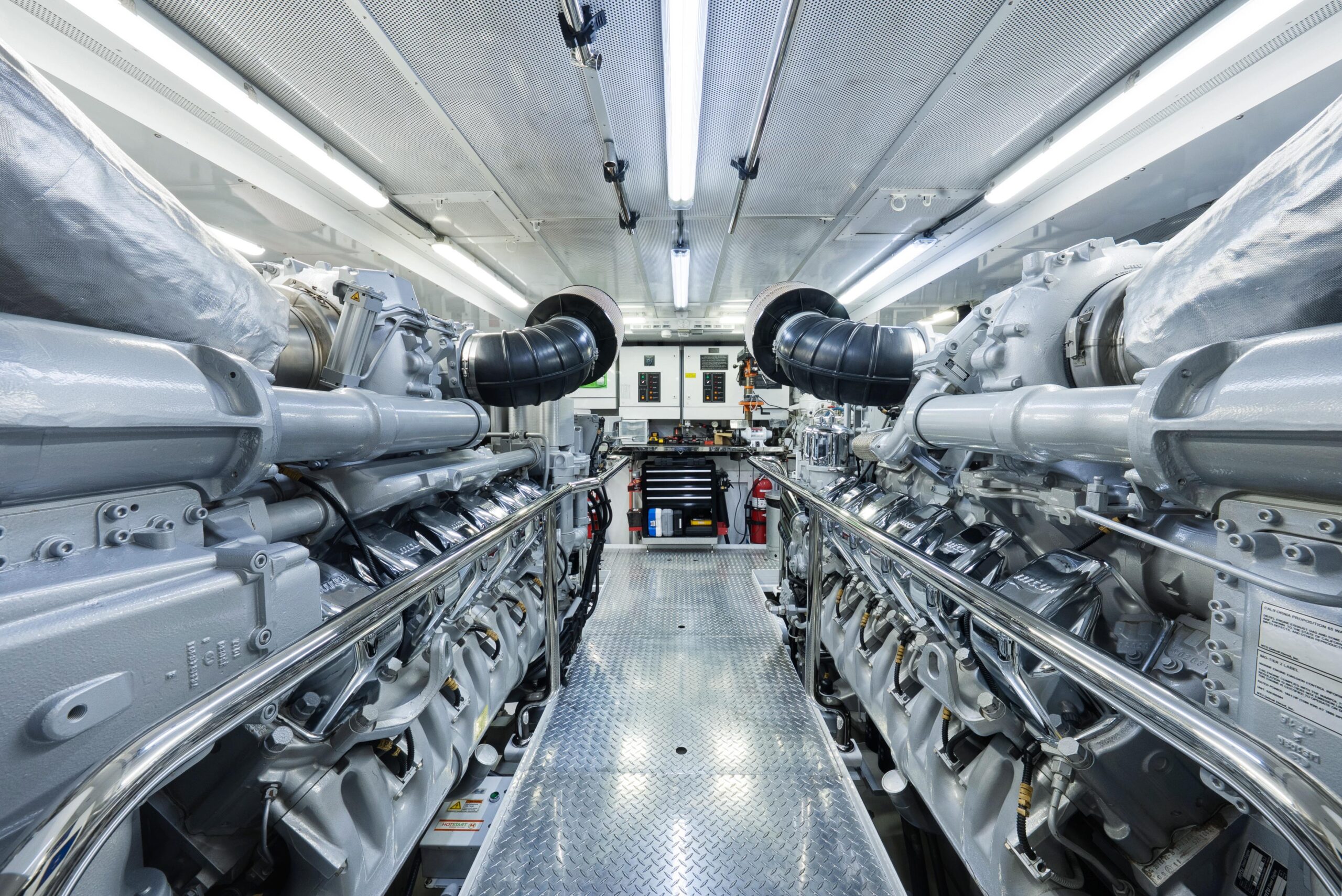 Экипаж заходит на яхту через палубу по левому борту, имея собственный коридор доступа на все палубы, что позволяет не пересекать гостевые зоны.