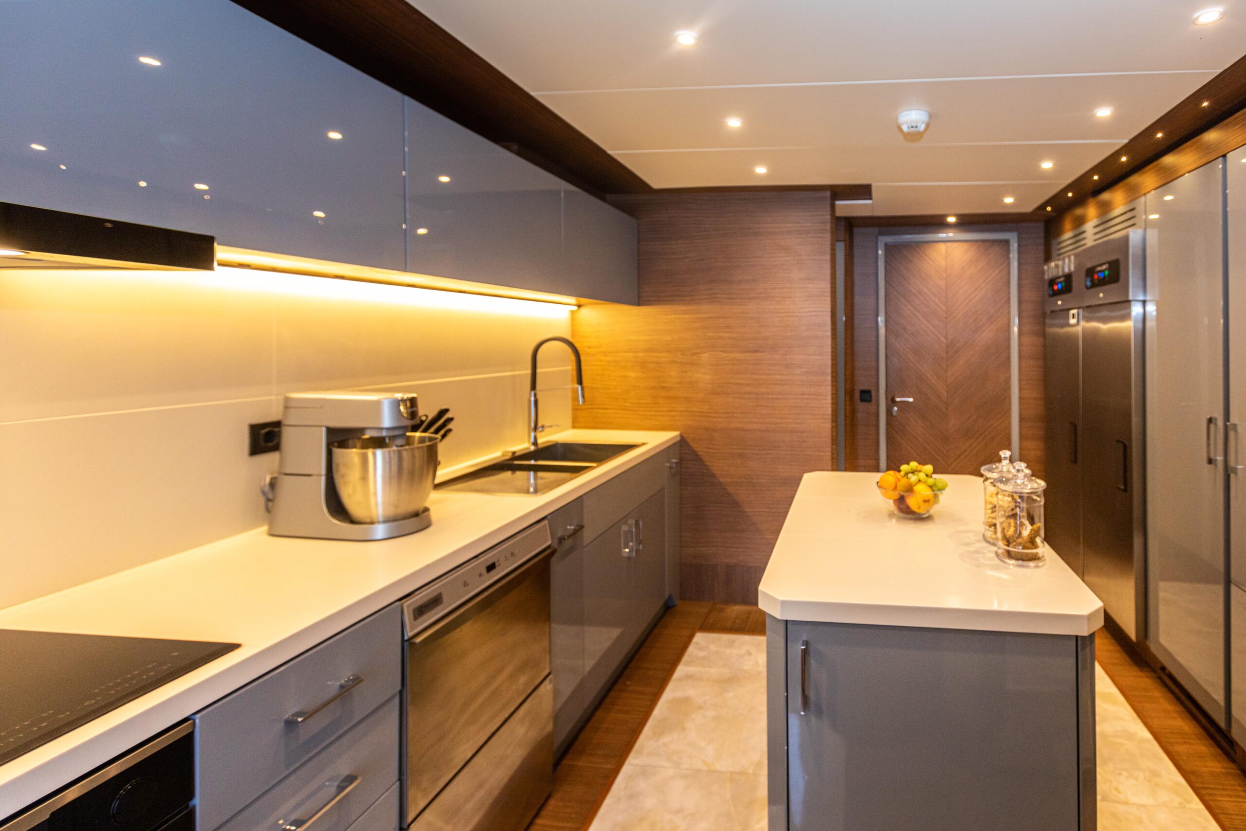 Зона экипажа включает комфортабельные каюты, каюту механика с собственным санузлом и две двухместные каюты экипажа с общей ванной комнатой. Просторная кают-компания/лобби и прачечная полностью отвечают потребностям профессионального экипажа. Недавно спроектированная каюта капитана расположена на верхней палубе непосредственно за рулевой рубкой.