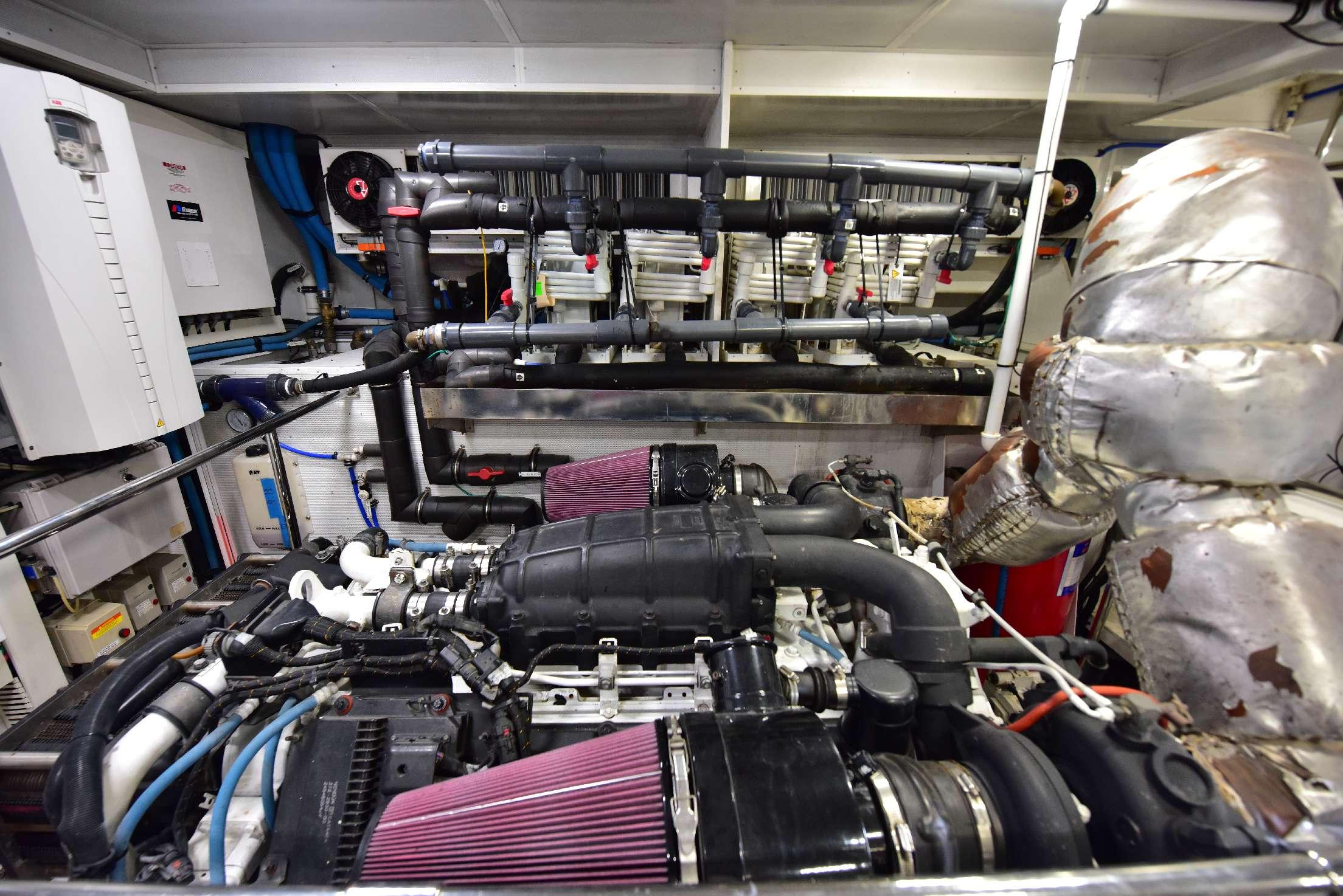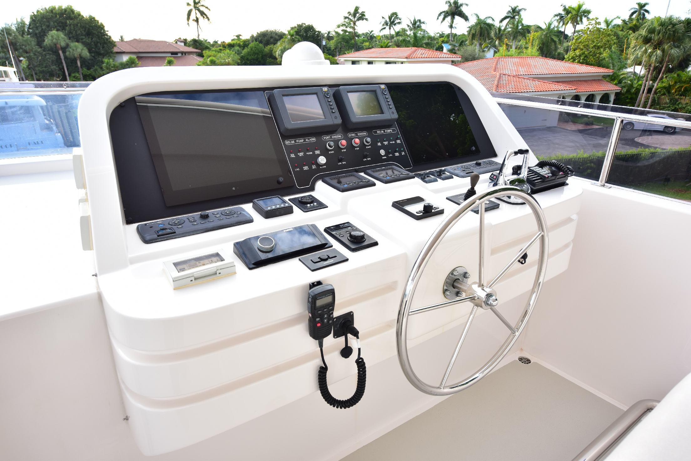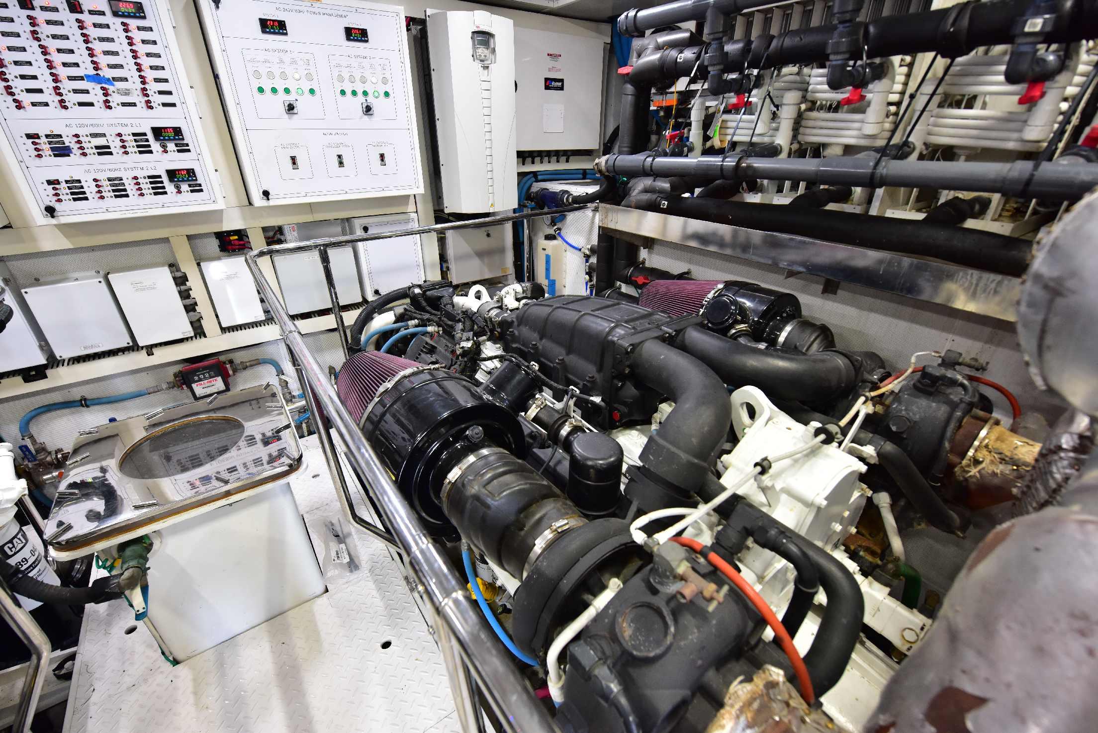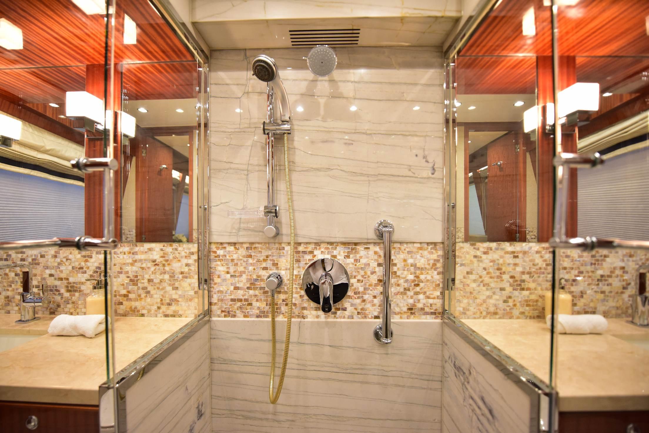 На борту расположены пять кают, включая мастер-каюту на главной палубе. Салон предлагает просторную зону отдыха с диваном, креслами, журнальными столиками и мультимедийной системой. В носовой части салона находится формальная обеденная зона, отделённая от лаунджа частичной перегородкой с декоративным стеклянным рисунком. Большие окна по периметру наполняют пространство естественным светом, а ближе к проходу расположена элегантная дневная туалетная комната.