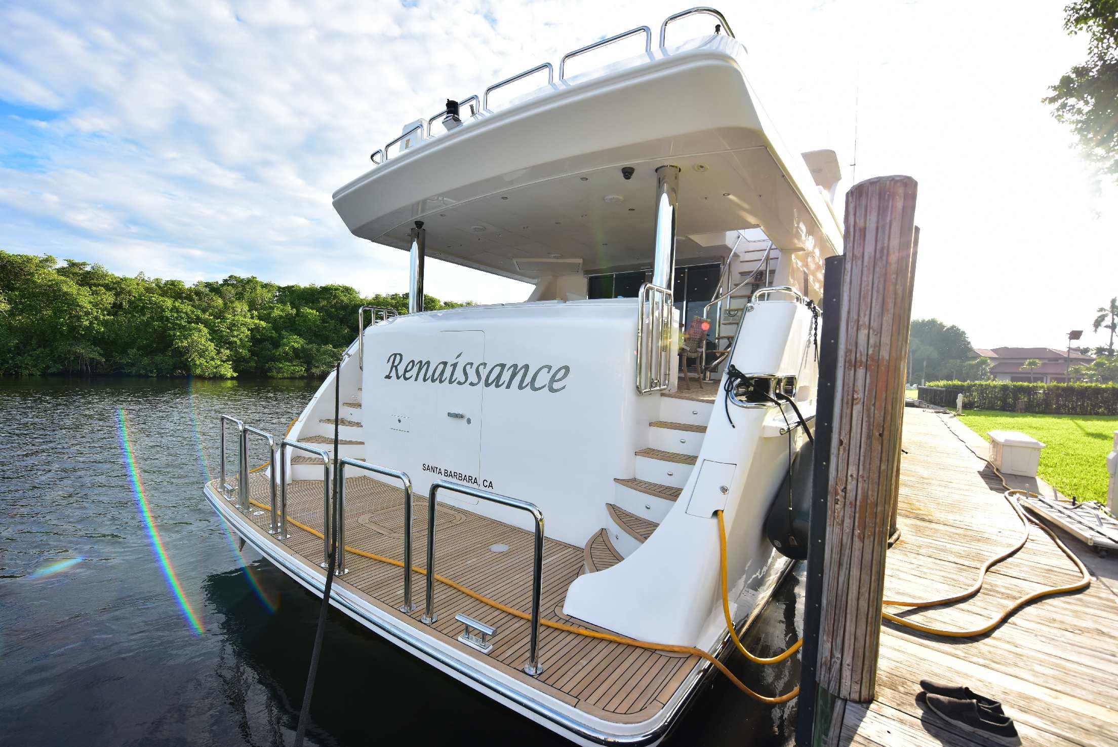 Моторная яхта M/Y Renaissance — это 116-футовая яхта Hargrave с полноценными проходными палубами по периметру (full walk-around), спущенная на воду в 2016 году. Яхта оснащена высокопроизводительным корпусом от Jack Sarin Naval Architects, главными двигателями Caterpillar C32 и стабилизаторами как на ходу, так и на якоре. Интерьер разработан студией Yacht Interiors by Shelley и выполнен в современном стиле с вневременной мебелью, нейтральными ковровыми покрытиями и мягкой скрытой подсветкой.