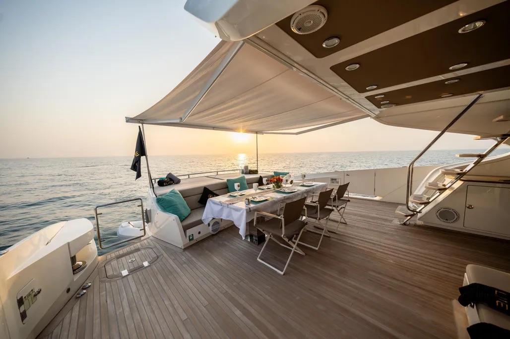 Стеклянные панели хардтопа с фирменным «жаберным» рисунком, разработанным Каном Ялманом, придают модели 105HT уникальный и узнаваемый облик, вдохновлённый дизайном суперкаров. Ниже палубы форма корпуса, созданная Умберто Тальявини, и композитная конструкция Numarine обеспечивают уверенный и стабильный ход как на скоростях свыше 30 узлов, так и при комфортном крейсе около 26 узлов.