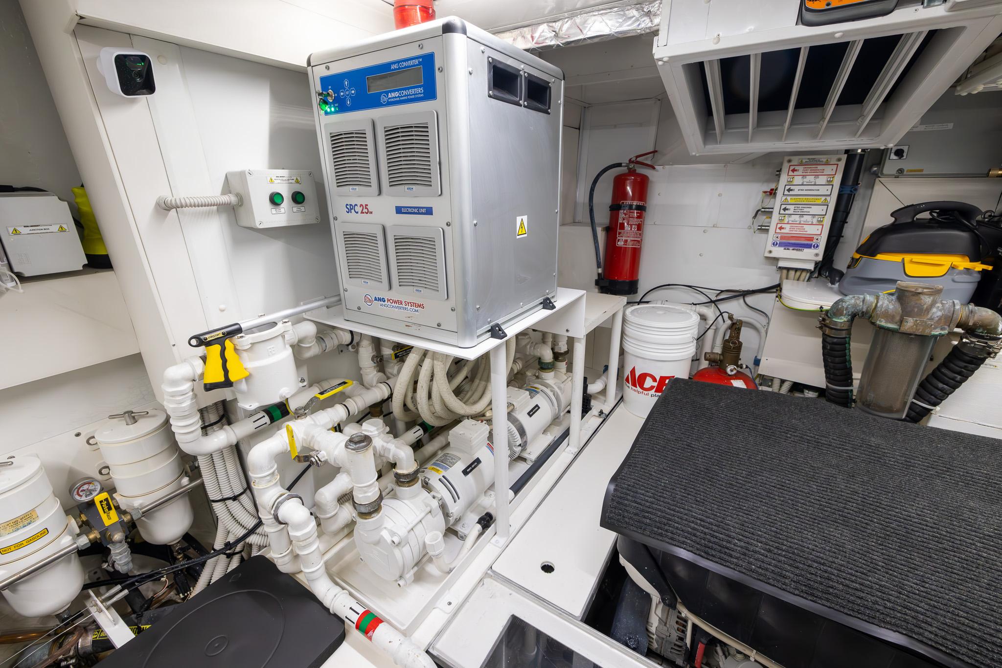Sea Metri V была спроектирована и построена с исключительным вниманием к эффективным крейсерским скоростям, с применением технически продвинутых методов и материалов для снижения веса, а также с тщательной проработкой баланса. Её лёгкий глиссирующий корпус (64 тонны) и три проверенных двигателя Volvo Penta D13-900 л.с. с приводами IPS 1200 (под-драйвы) позволяют Sea Metri V, по заявлениям верфи, быть на 20% более эффективной по сравнению с серийными яхтами аналогичного размера, оснащёнными более мощными двигателями и традиционными валовыми установками. Яхта отличается лёгкой манёвренностью, быстрой реакцией рулевого управления, устойчивостью, а также низким уровнем шума и вибраций. Крейсерская скорость составляет 20 узлов при расходе 100 галлонов в час, максимальная скорость — 26 узлов при расходе 135 галлонов в час. Наработка двигателей низкая (780 часов), яхта находится в отличном состоянии и очень хорошо обслуживалась.