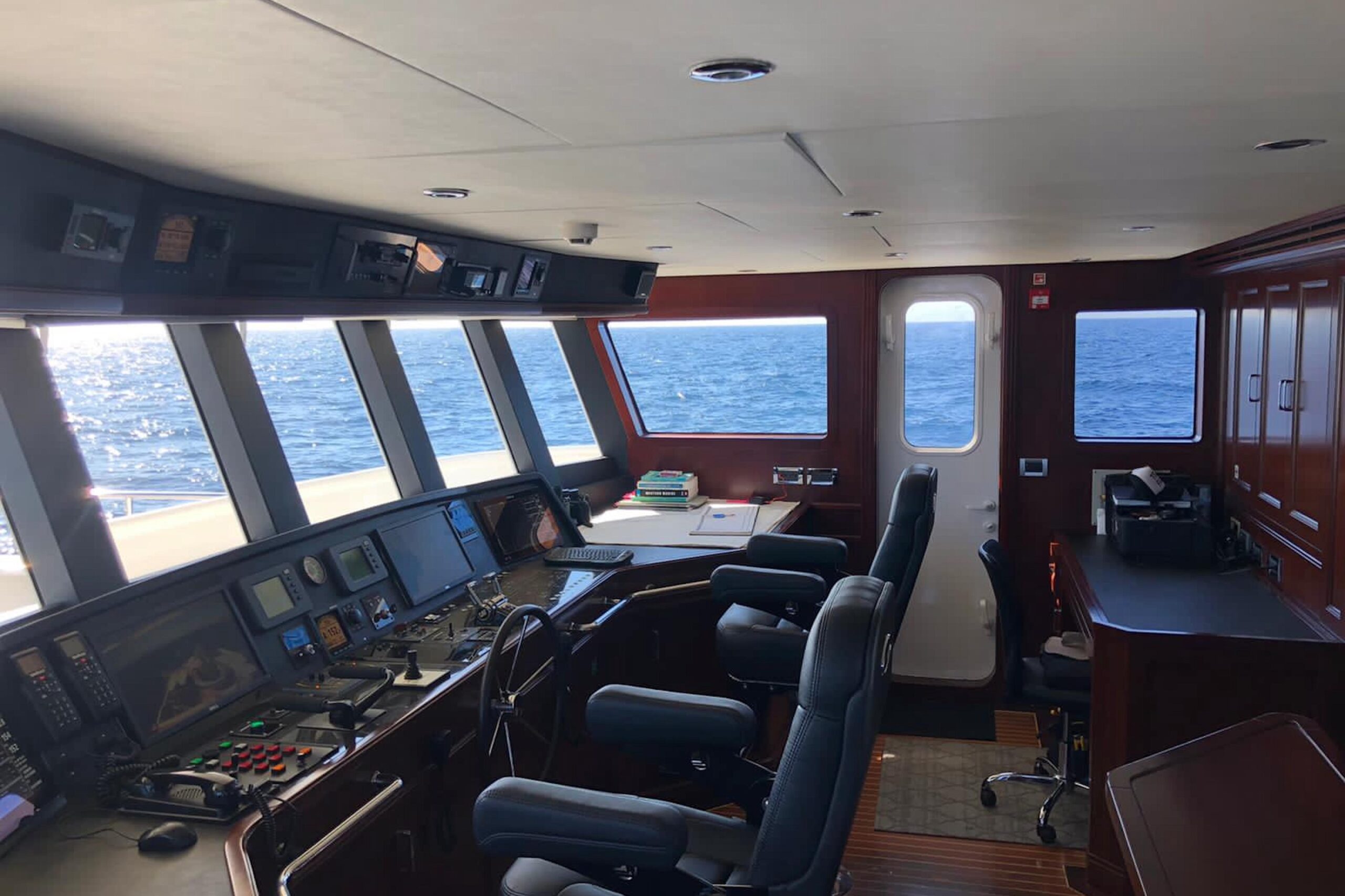 • Seafire FM-200 160L/DN50: автоматическое пожаротушение; панели сигнализации в рубке/crew lounge, ручные органы — на главной палубе по правому борту