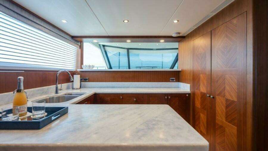 Элегантность, комфорт и пространство — 100-футовая моторная яхта заметно превосходит другие яхты своего класса по габаритам. Это ощущается во всём, вплоть до камбуза, который спроектирован с учётом высоких требований чартерной эксплуатации. Щедрость пространства и точность исполнения модели 100 ощущаются и видны в каждой детали.