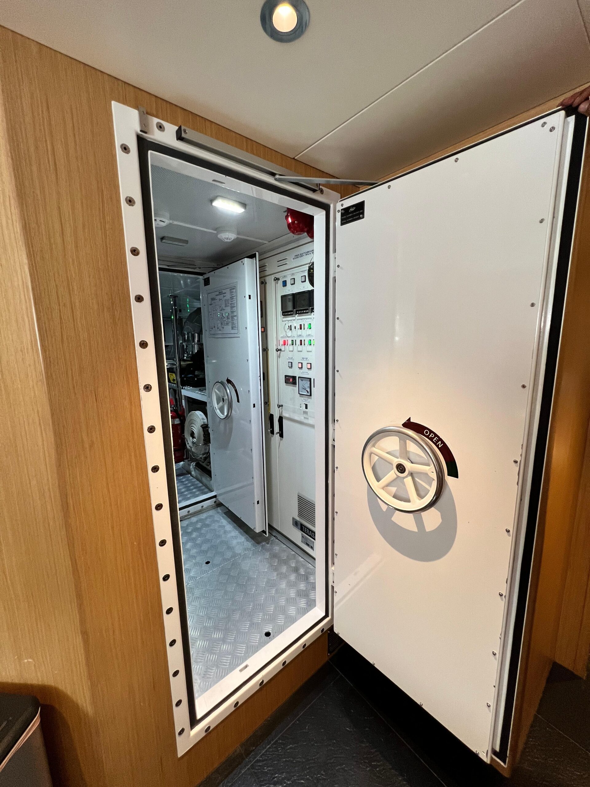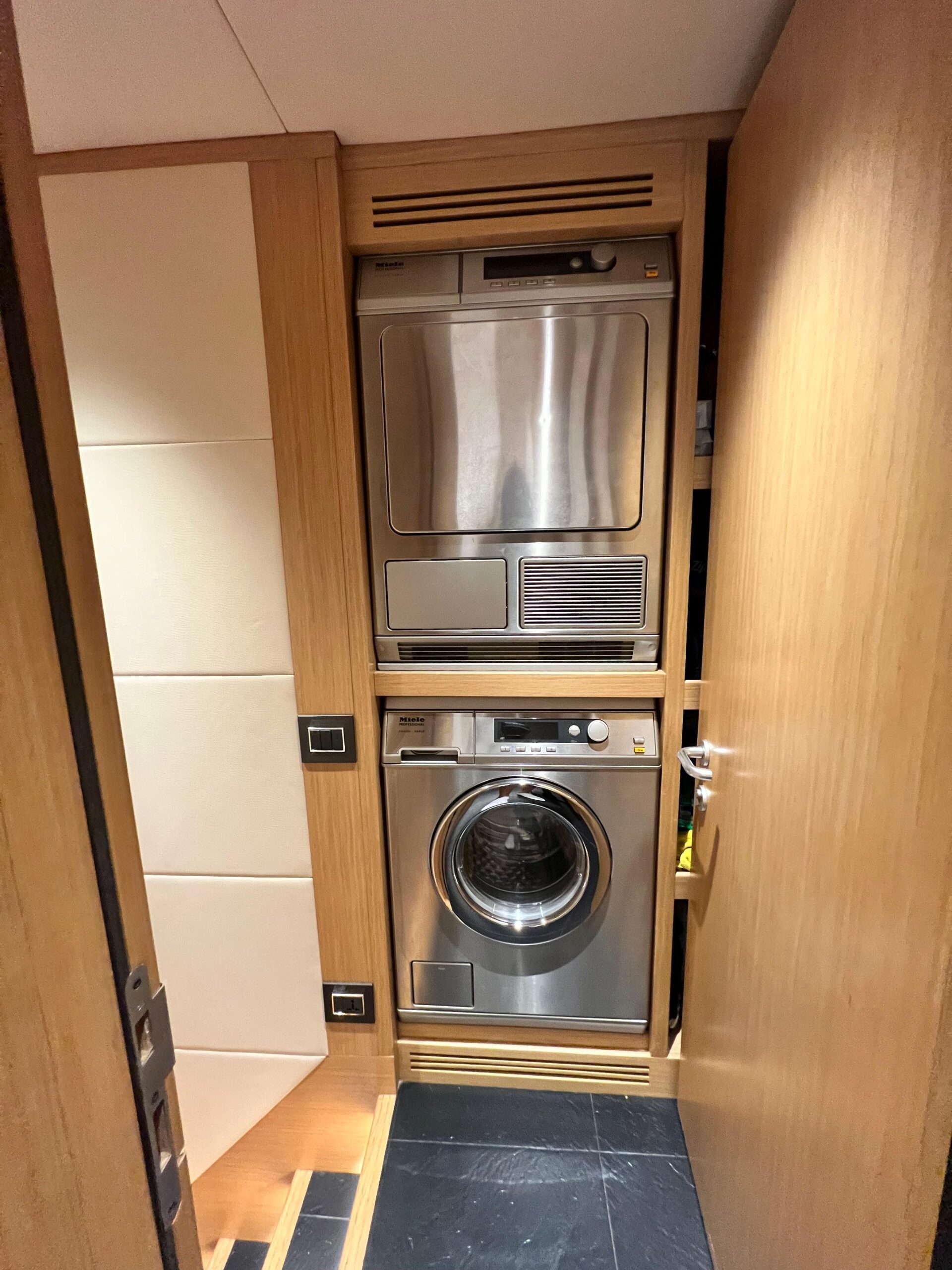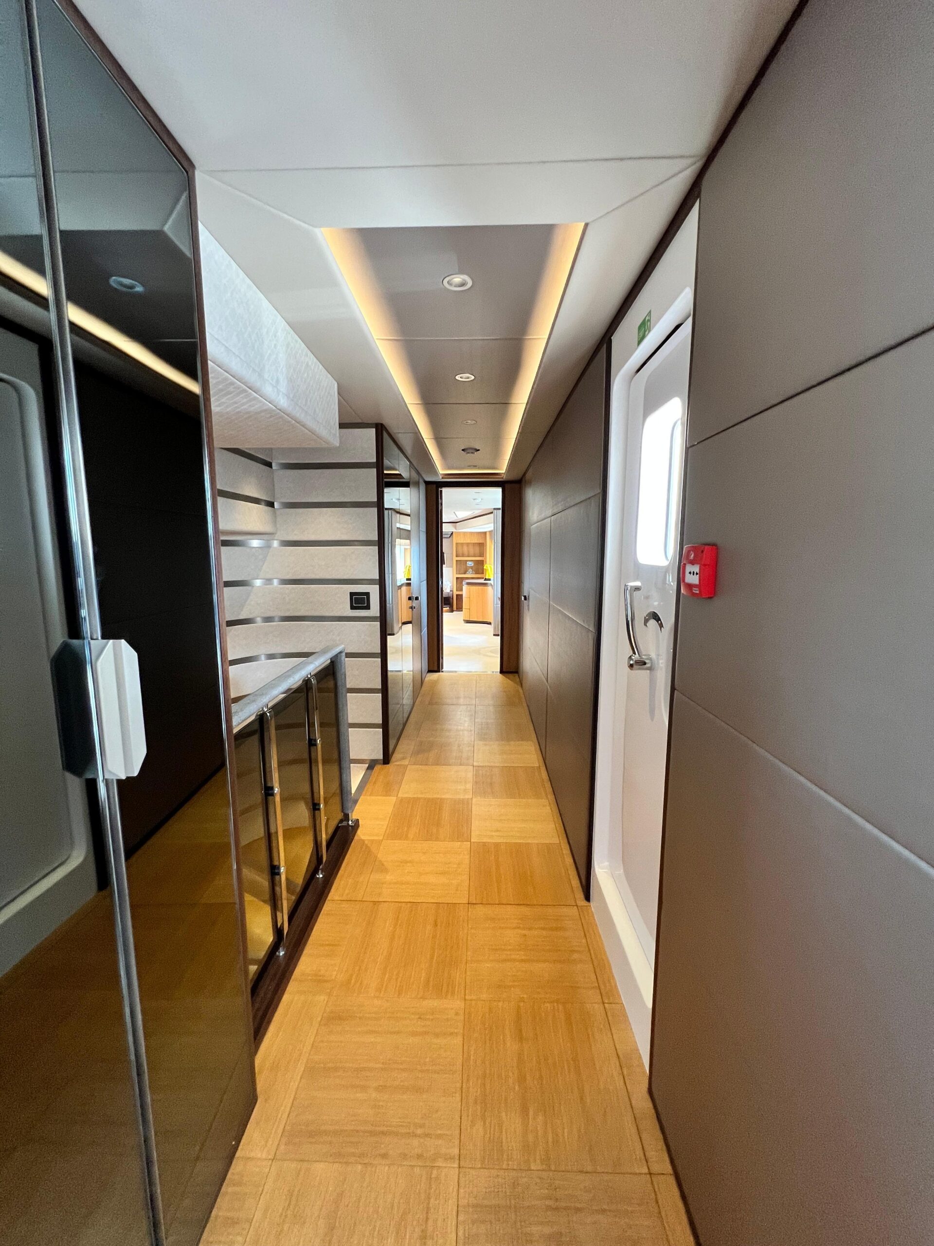 Два двигателя MAN V12 и общий запас топлива 15 700 литров обеспечивают крейсерскую скорость 17 узлов и максимальную скорость 23 узла. Это надёжная и комфортная полуводоизмещающая яхта с низким расходом топлива, отлично подходящая для дальних переходов.