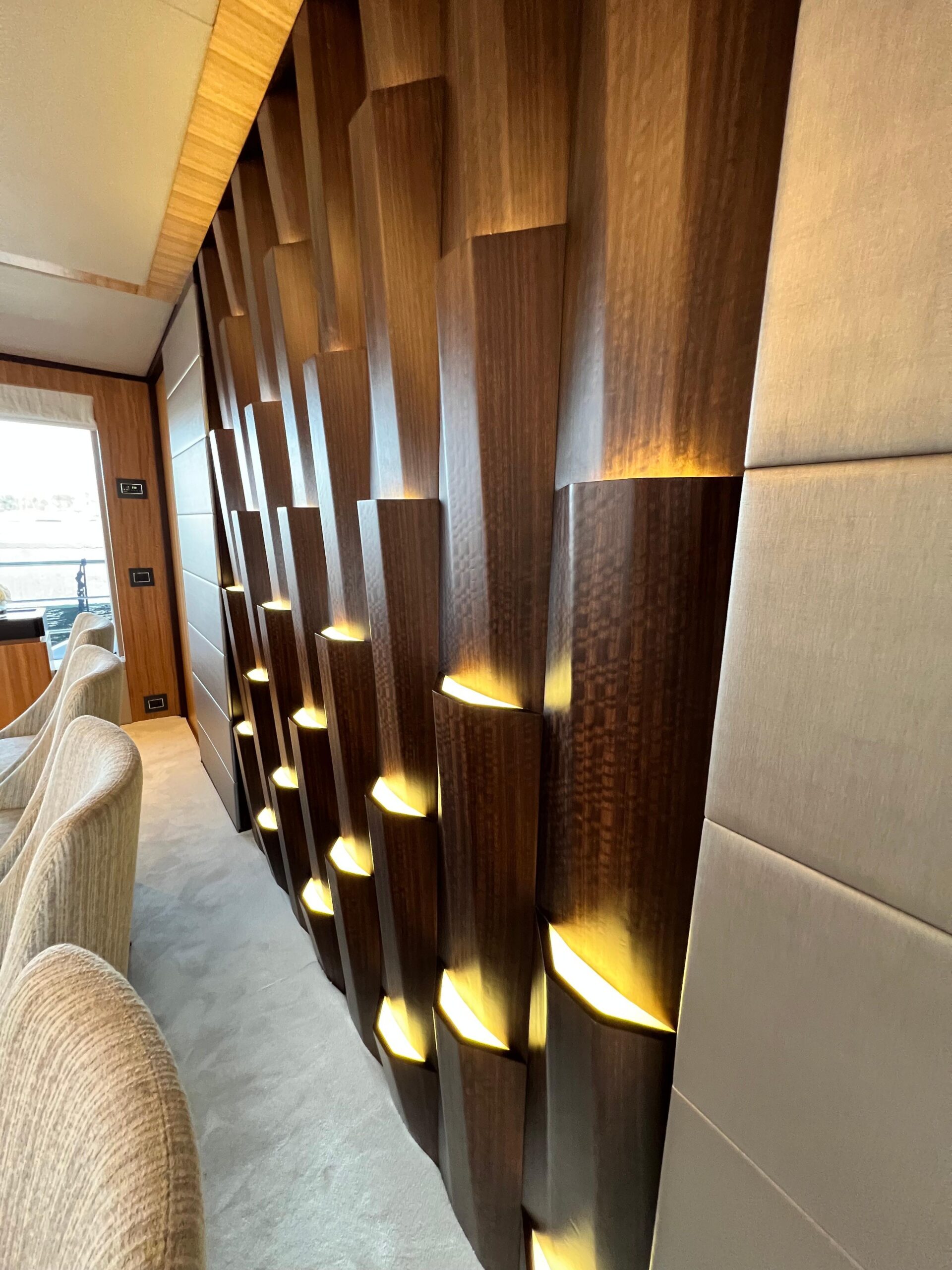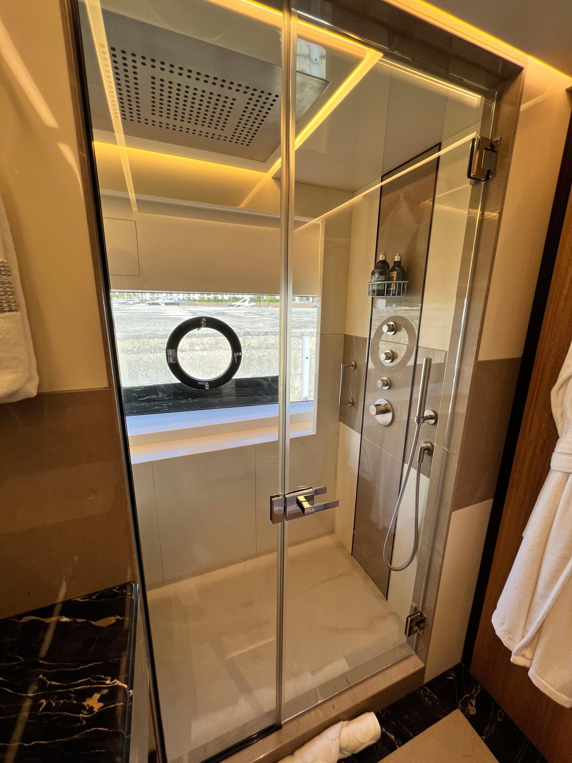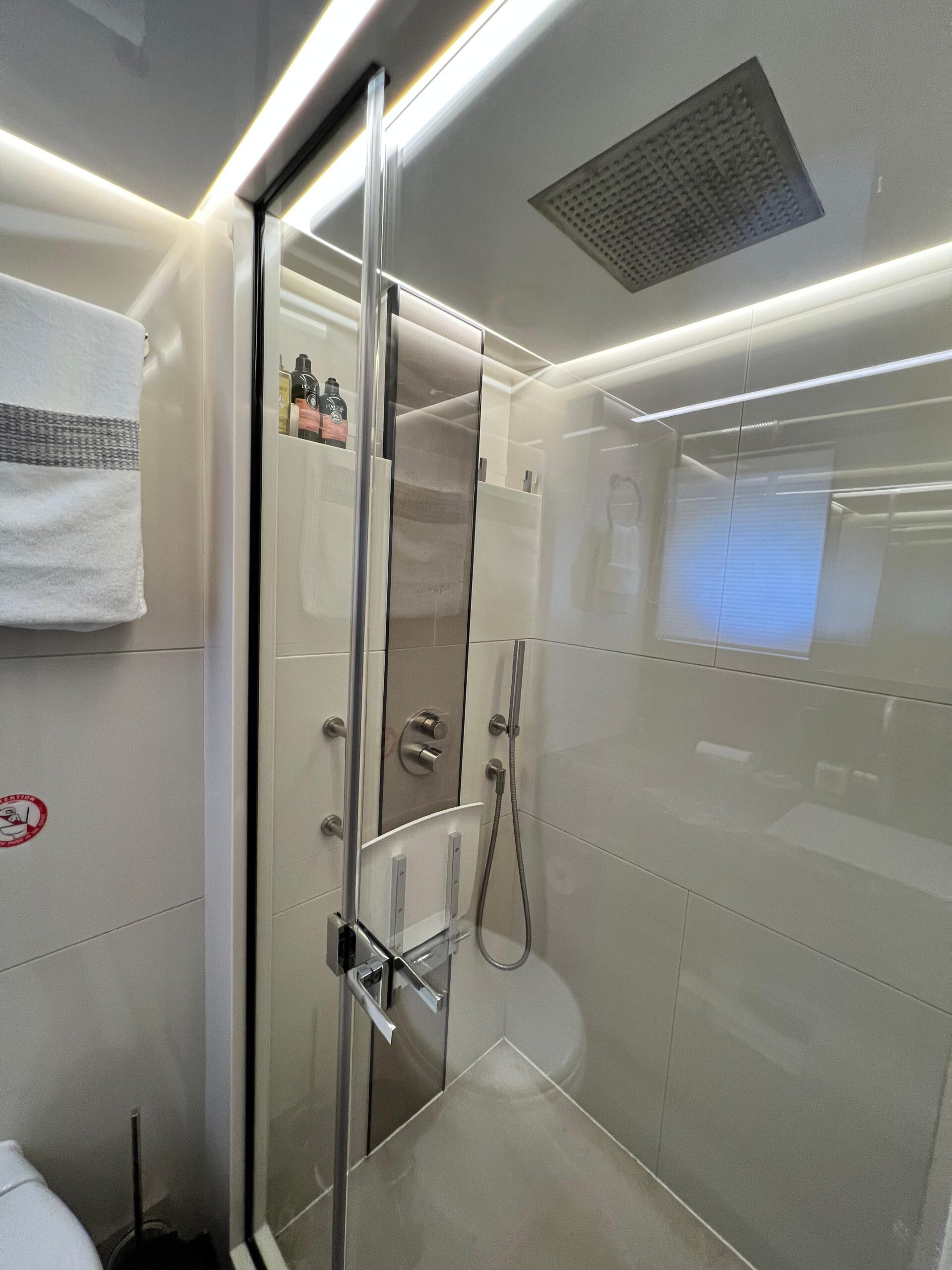 также располагает уникальным и уютным скайлаунжем на верхней палубе, предлагающим дополнительный салон с панорамным обзором моря на 360° и автоматическими раздвижными окнами с обеих сторон.