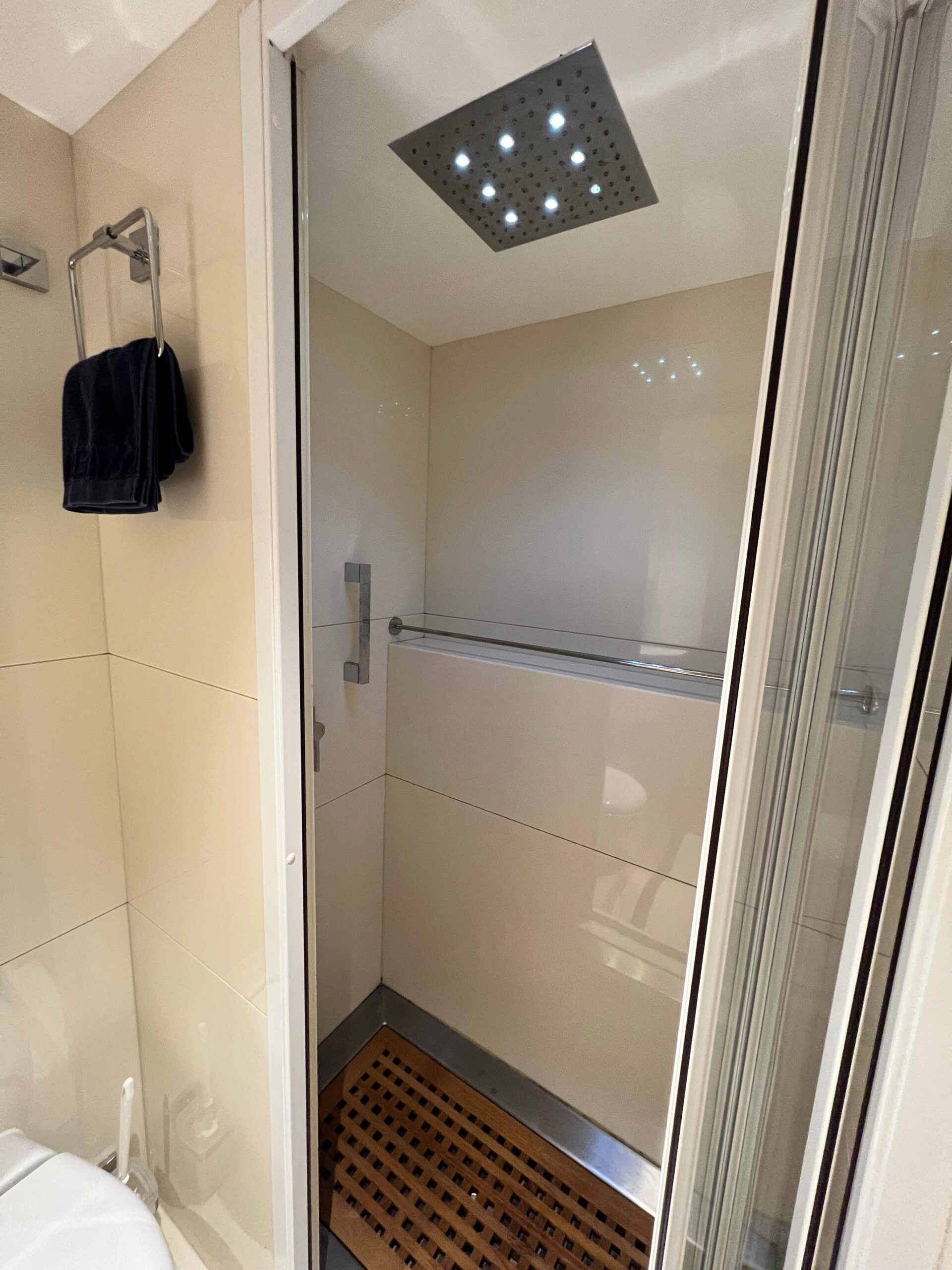 также имеет уникальный и уютный скайлаунж на верхней палубе с дополнительным салоном, панорамным видом на море 360° и автоматическими раздвижными окнами с обеих сторон.