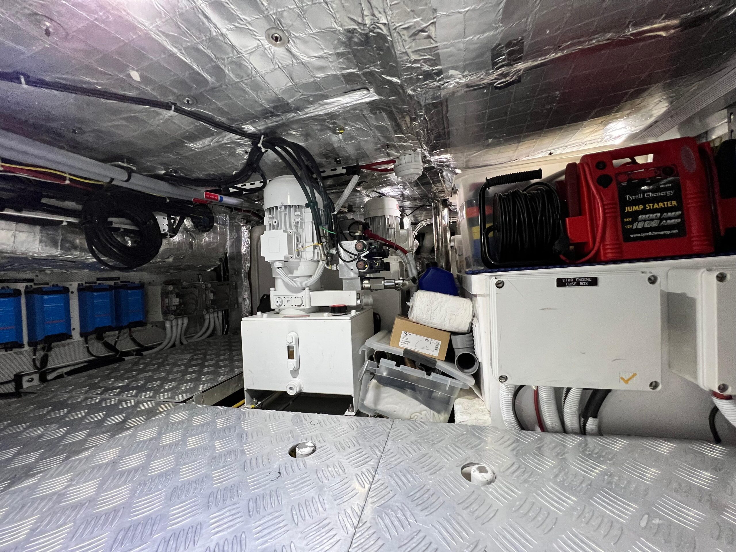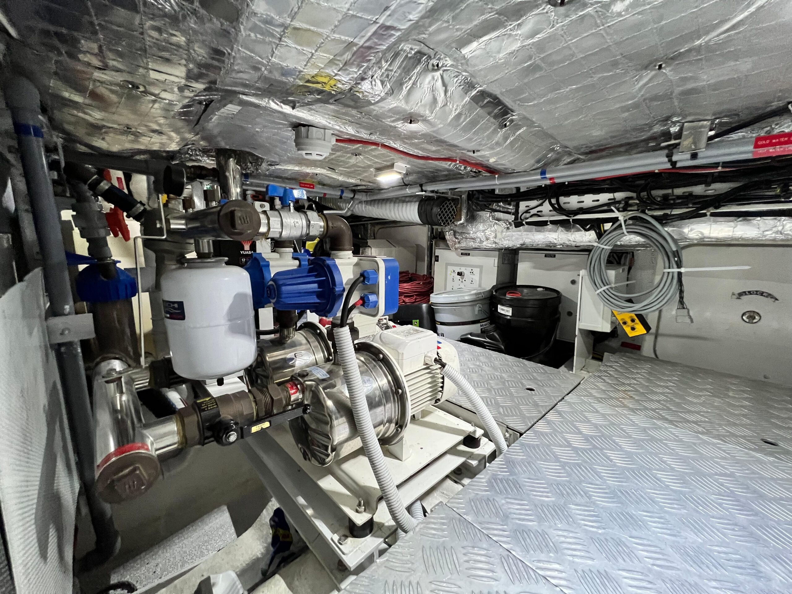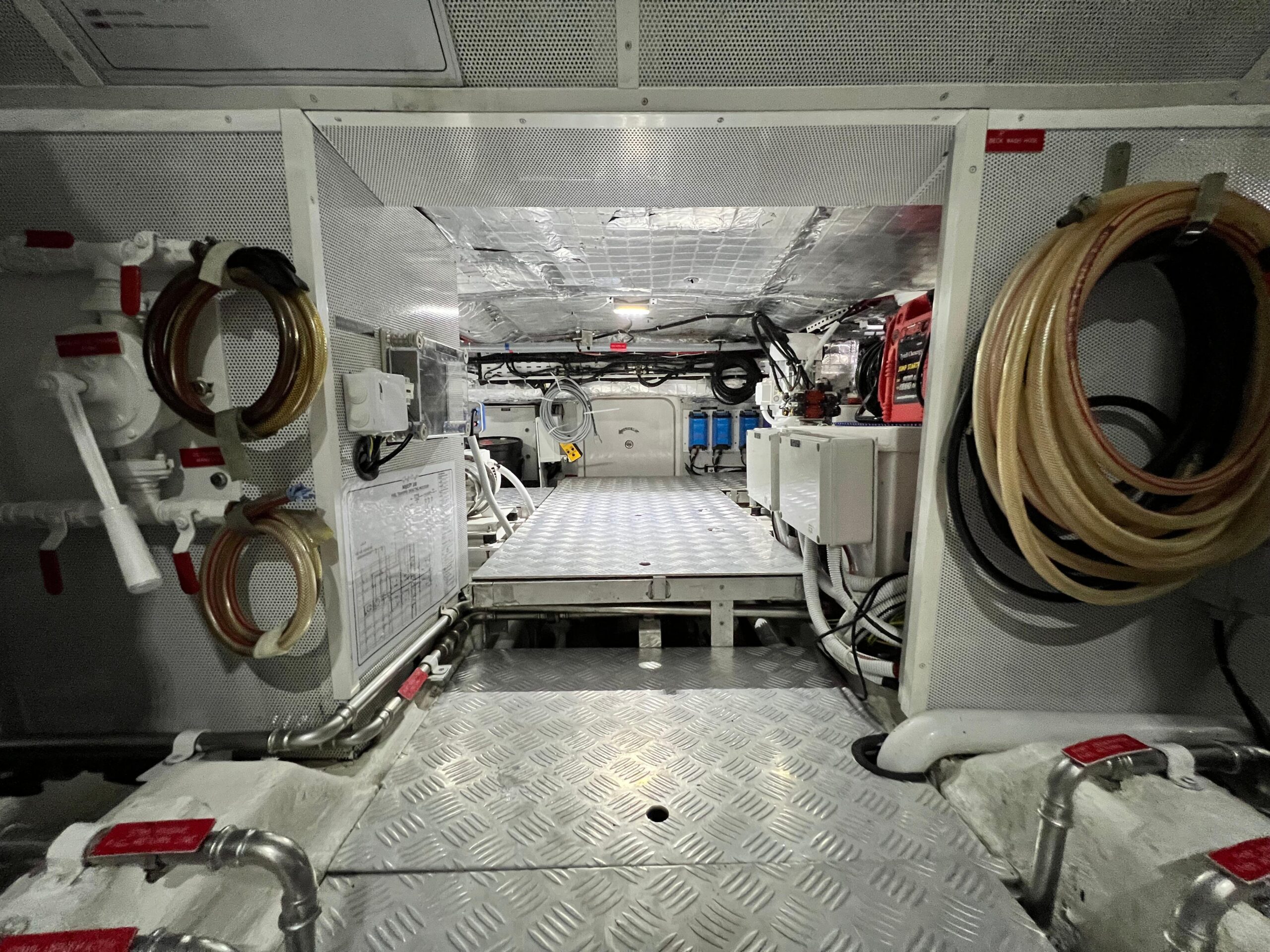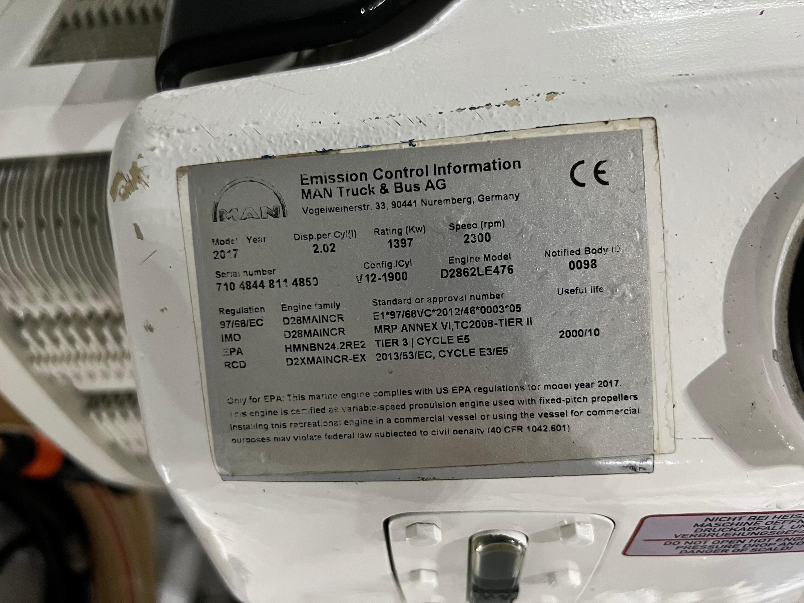 Два двигателя MAN V12 и общий запас топлива 15 700 литров обеспечивают крейсерскую скорость 17 узлов и максимальную скорость 23 узла. Это мореходная и комфортная полуводоизмещающая яхта с низким расходом топлива, отлично оснащённая для дальних круизов.