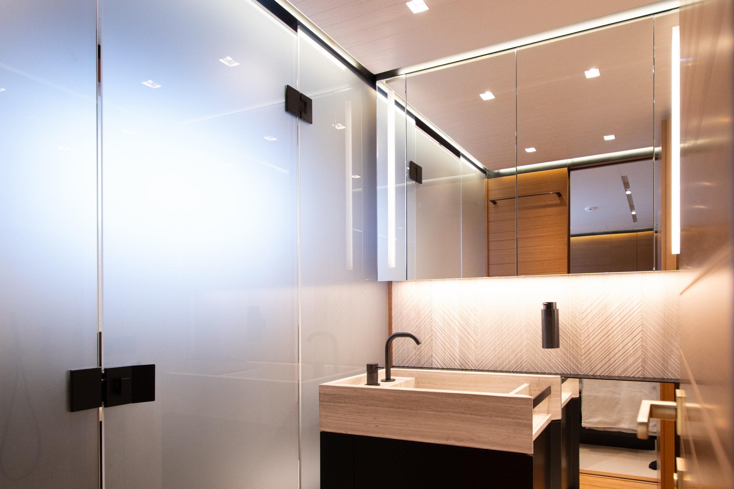 Запас хода составляет впечатляющие 1 350 морских миль при экономичной скорости 10 узлов, что делает яхту идеально подходящей для дальних переходов. Вместительные танки — 12 100 литров топлива, 1 900 литров пресной воды, 900 литров чёрной и 850 литров серой воды — обеспечивают полную автономность. Современная система очистки сточных вод позволяет безопасно сбрасывать очищенную воду в соответствии с международными экологическими нормами.