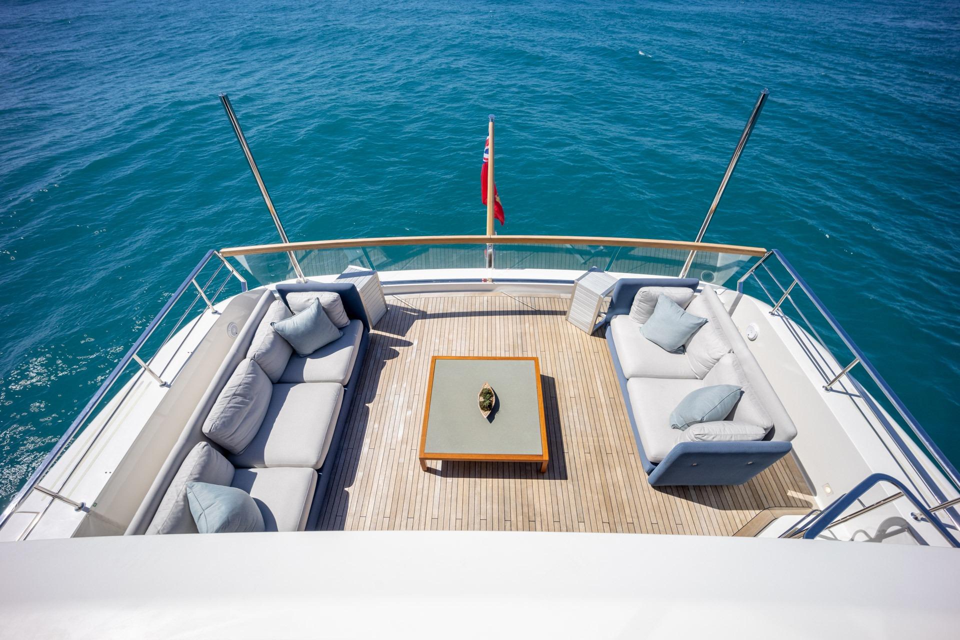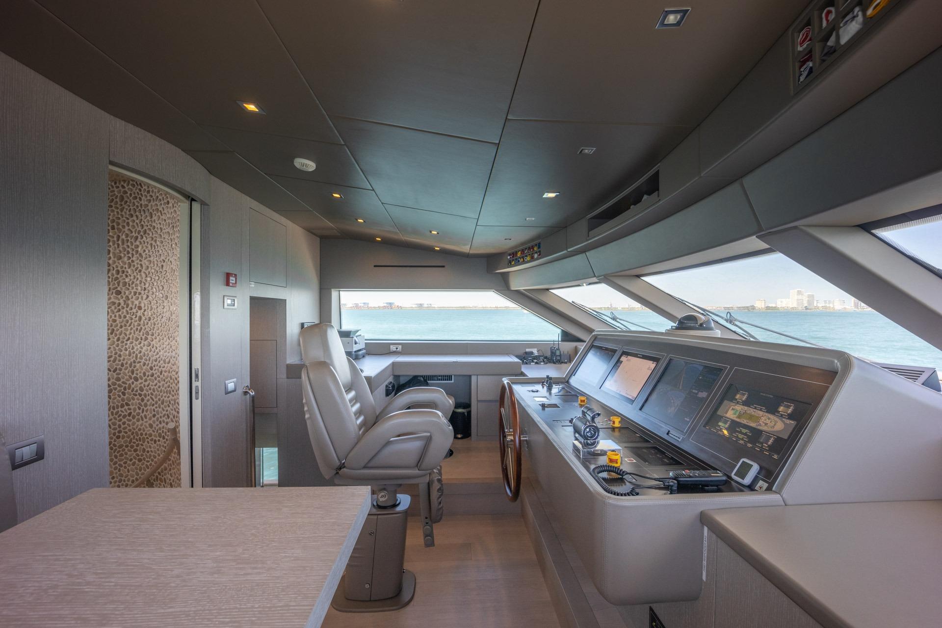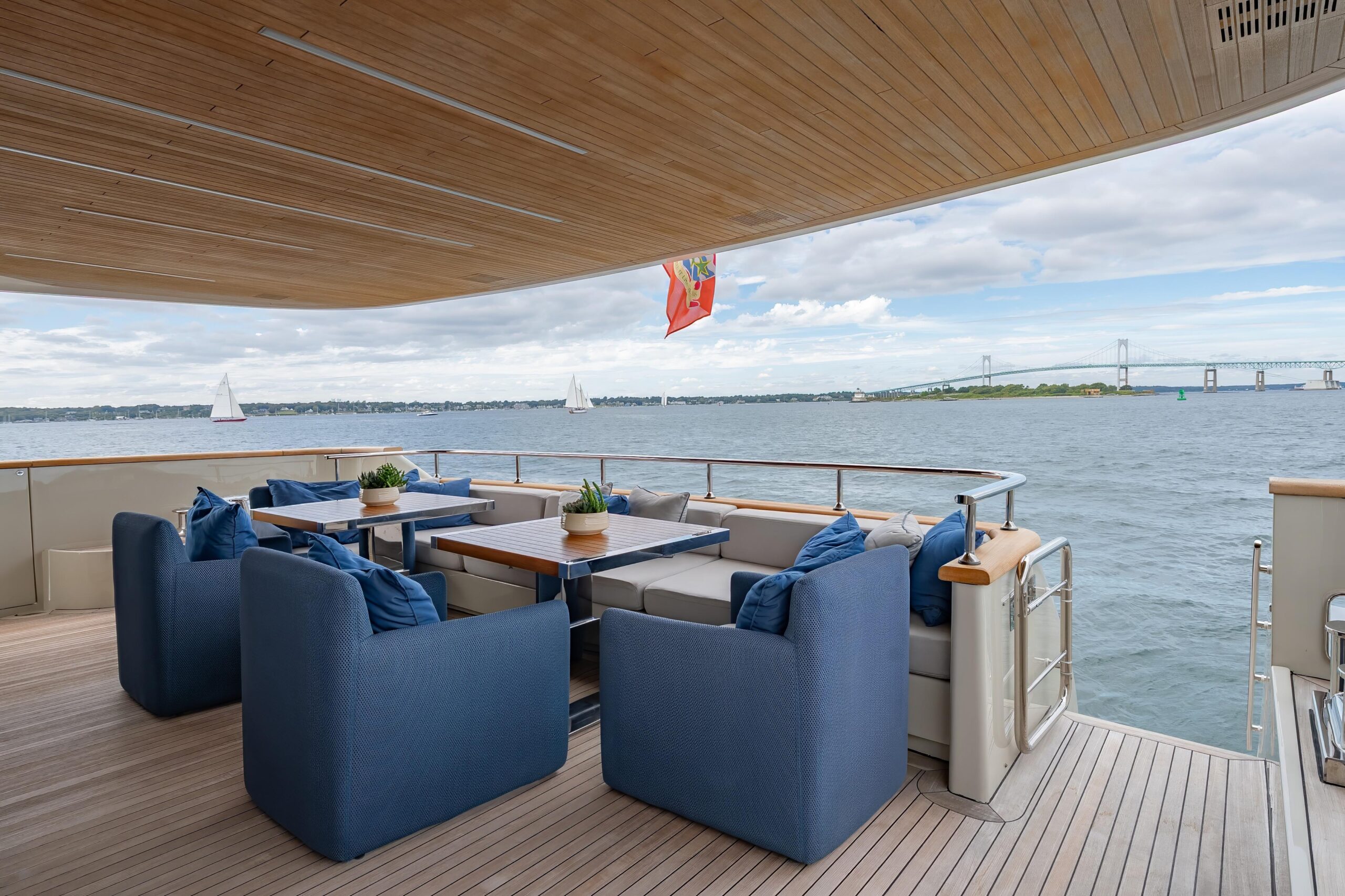использовалась исключительно в частных целях и на протяжении всего времени содержалась в безупречном состоянии. Трёхпалубная компоновка обеспечивает значительно больший объём по сравнению с классическими яхтами с приподнятой рулевой рубкой аналогичной длины, максимально расширяя как внутренние, так и внешние жилые пространства.