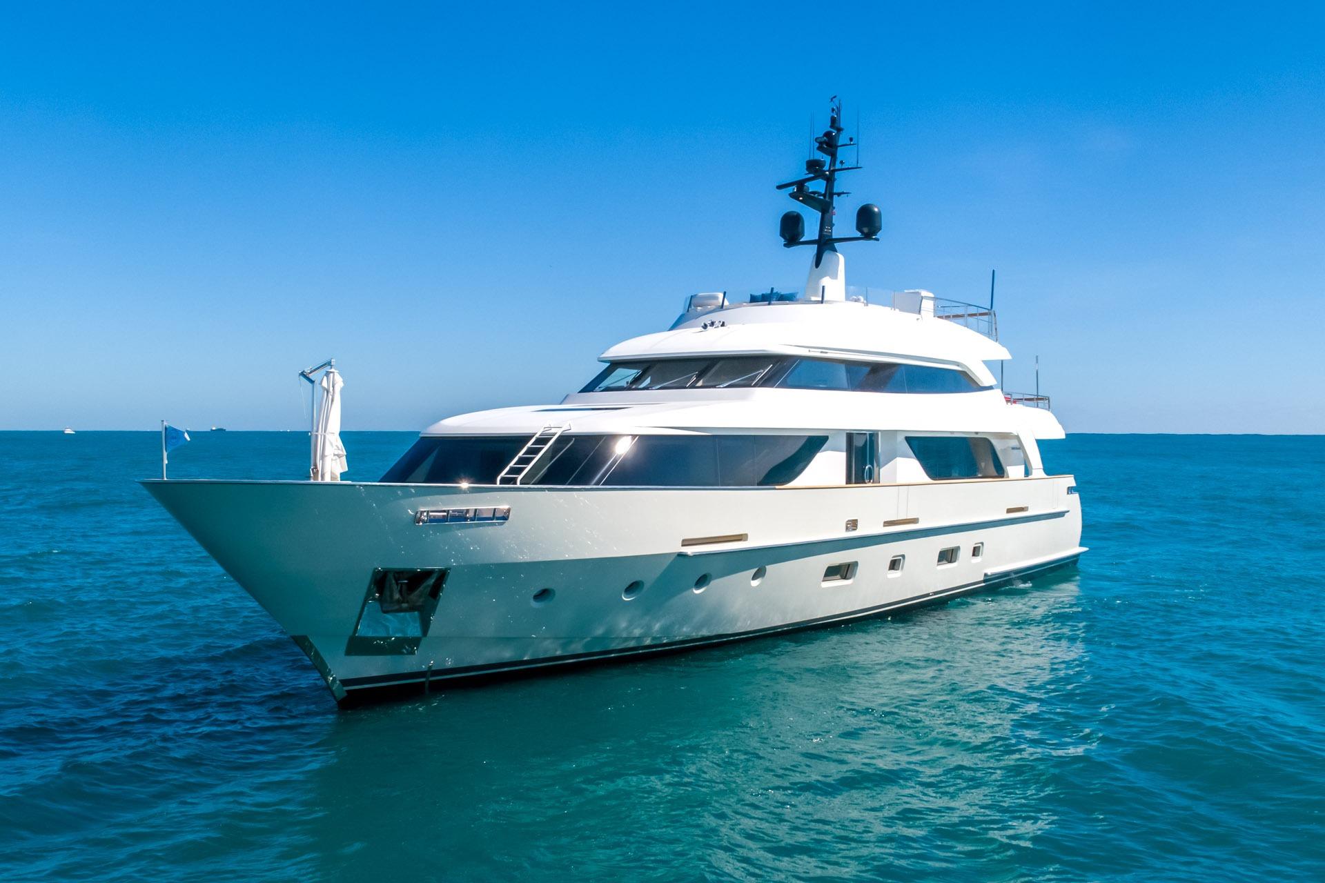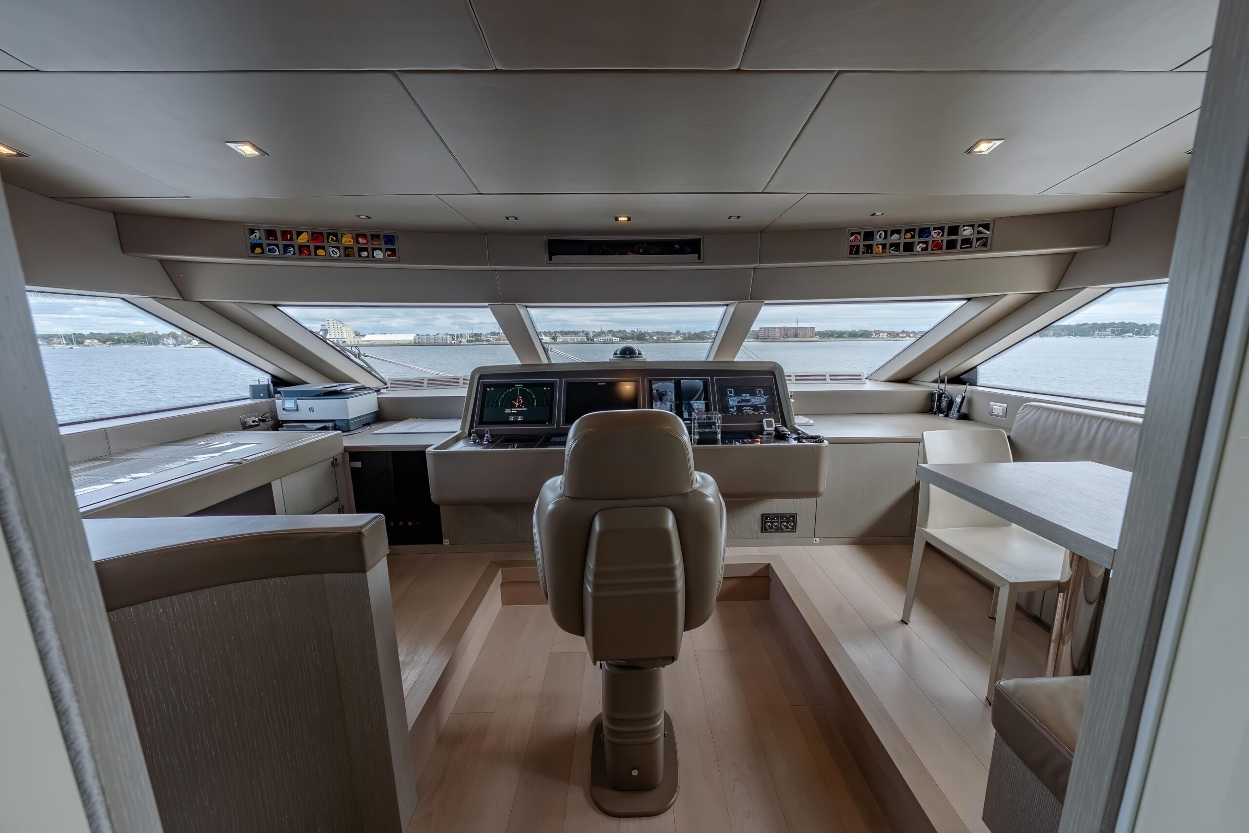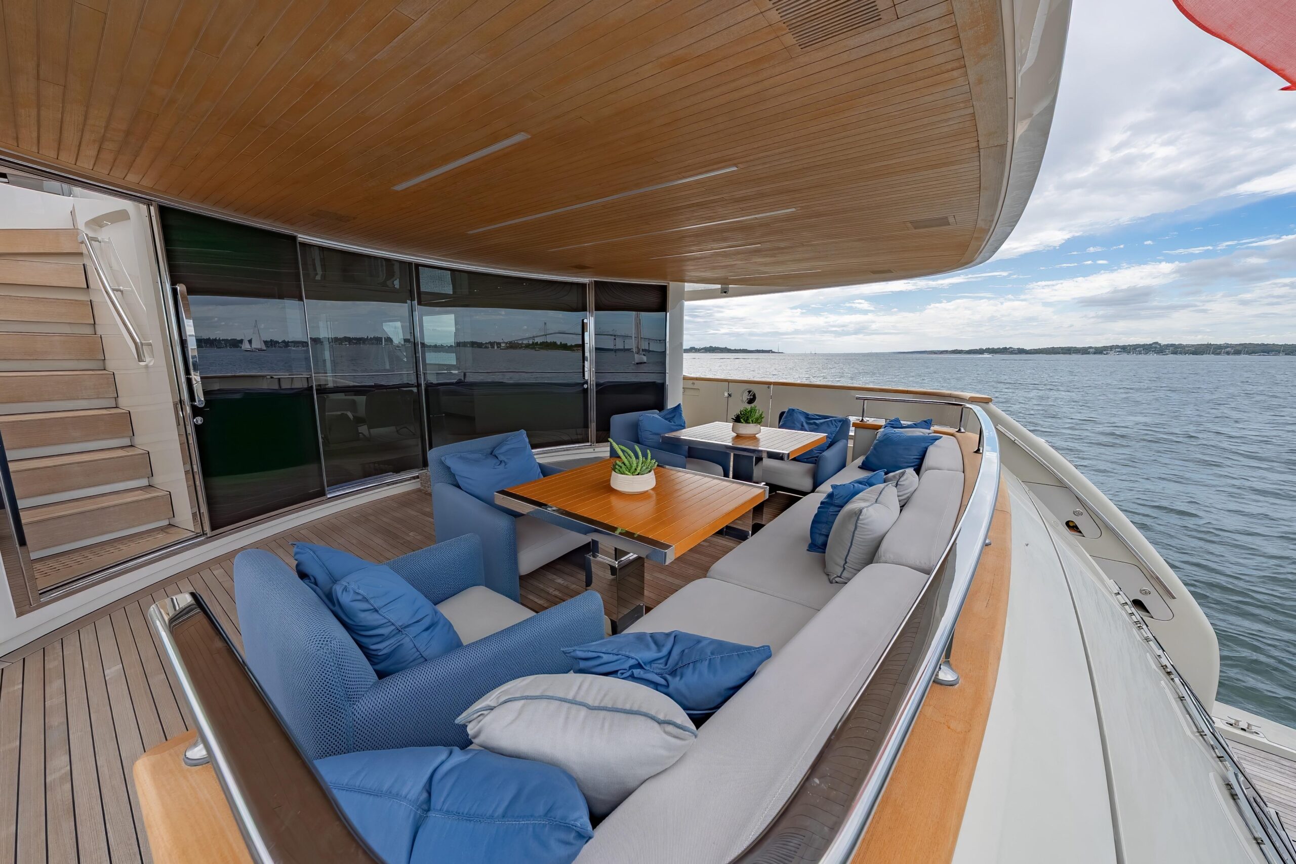 использовалась исключительно в частных целях и на протяжении всего времени содержалась в безупречном состоянии. Трёхпалубная компоновка обеспечивает значительно больший объём по сравнению с классическими яхтами с приподнятой рулевой рубкой аналогичной длины, максимально расширяя как внутренние, так и внешние жилые пространства.