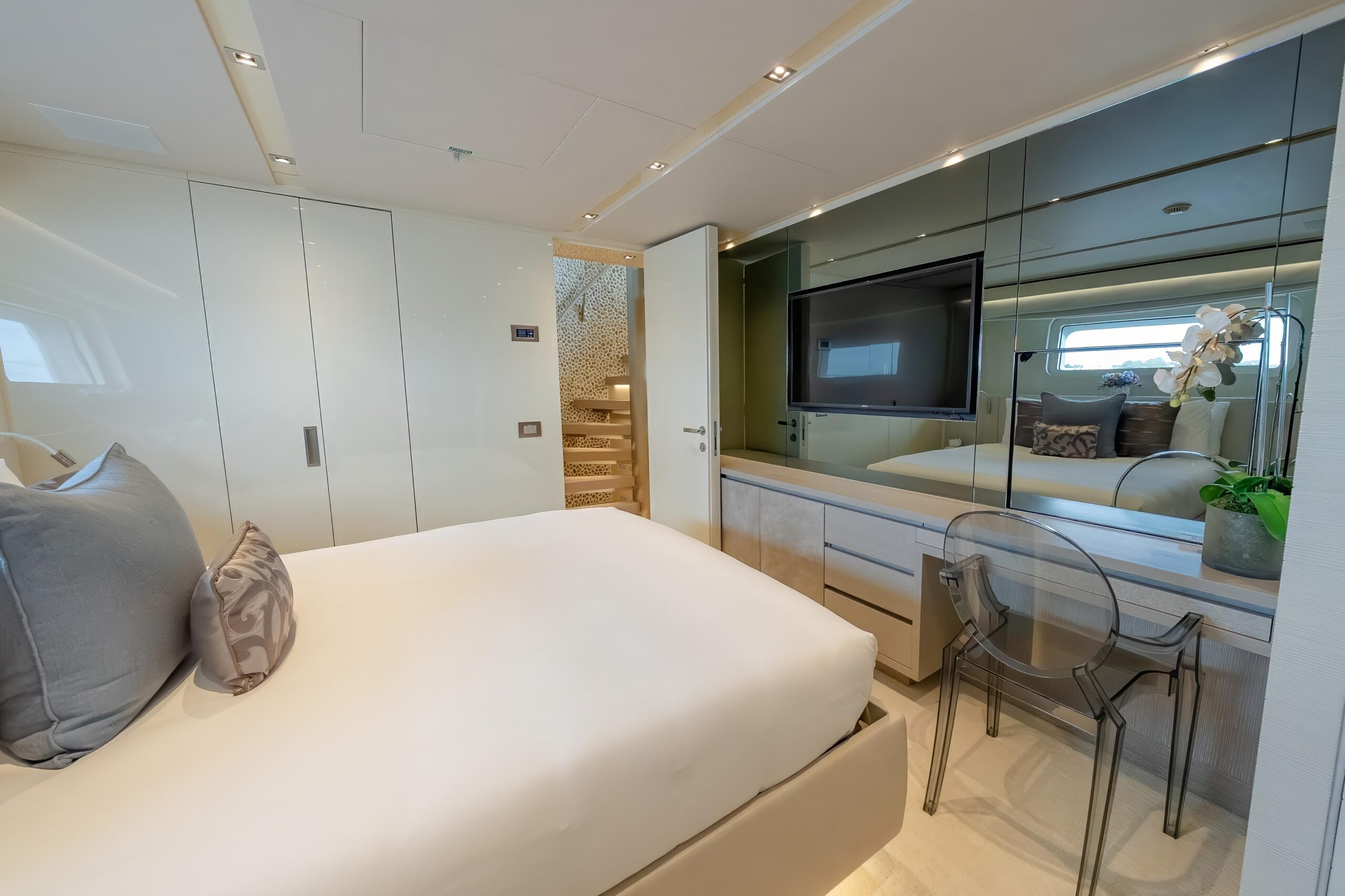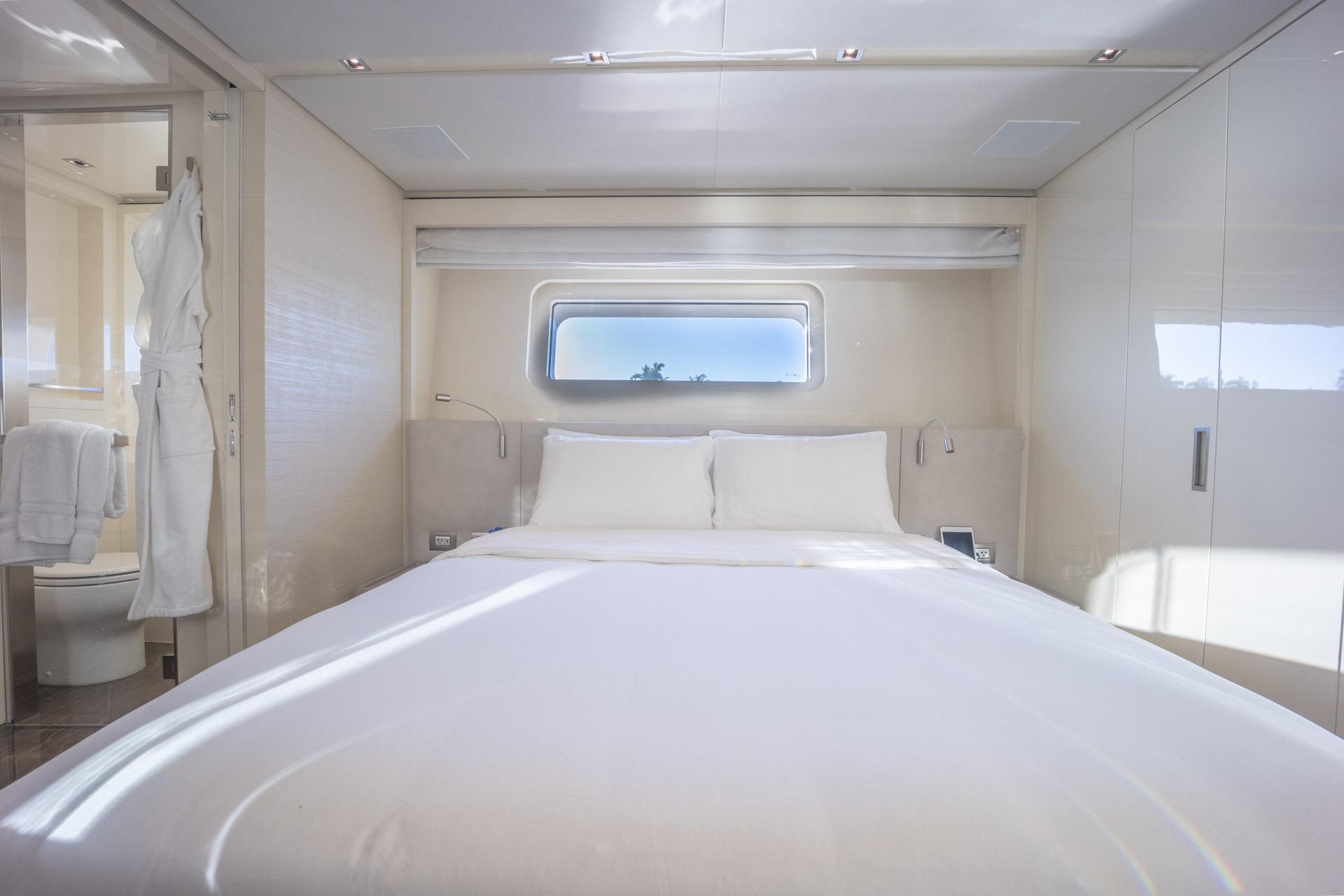 Размещая до 10 гостей в пяти просторных каютах — включая полноширинную мастер-каюту на главной палубе, две VIP-каюты и две каюты с раздельными кроватями —
