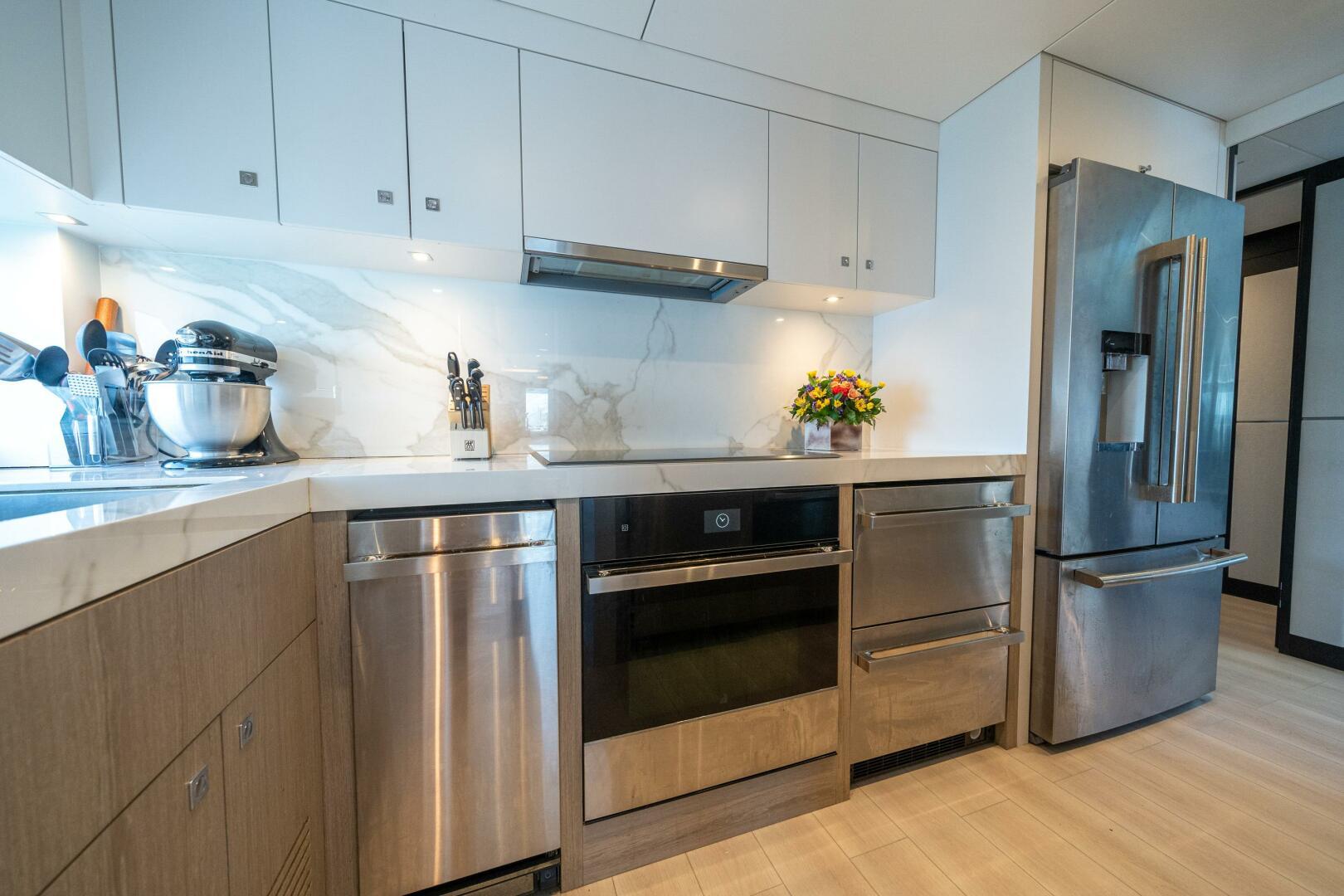 Камбуз спроектирован так, чтобы его можно было открыть в сторону салона для непринуждённого общения