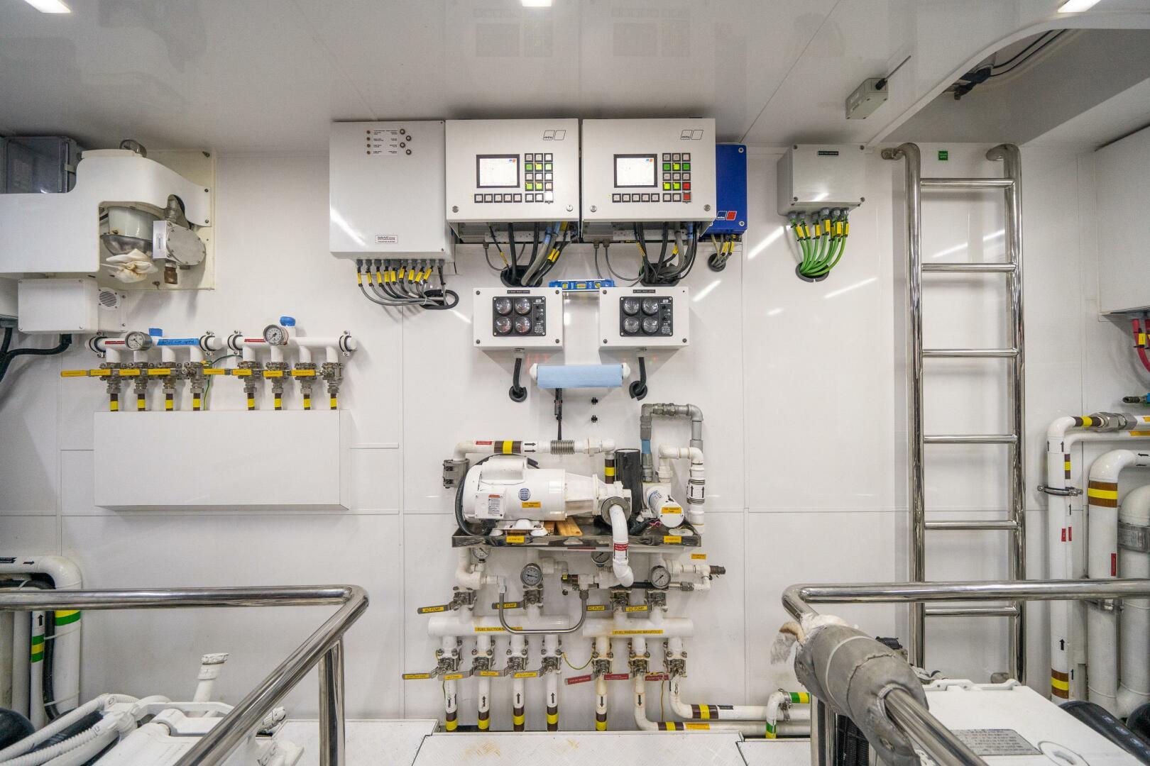 Здесь же размещены ключевые технические системы яхты: генераторы, опреснители, оборудование кондиционирования
