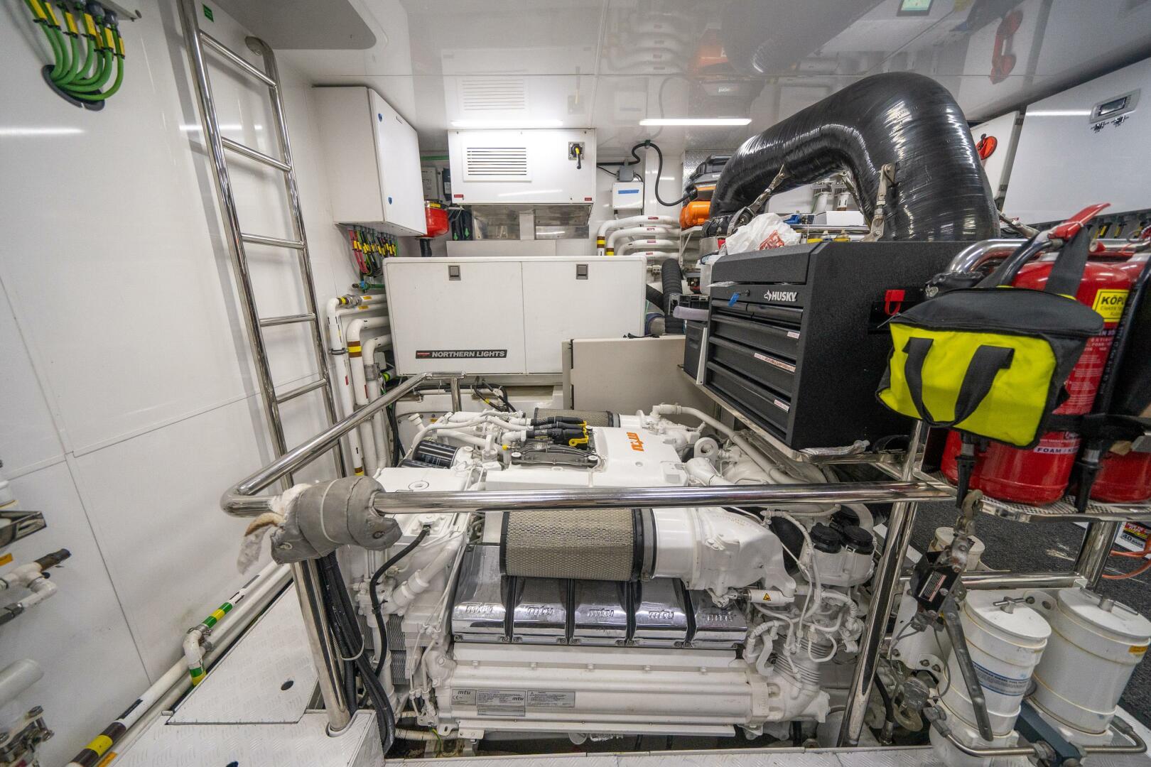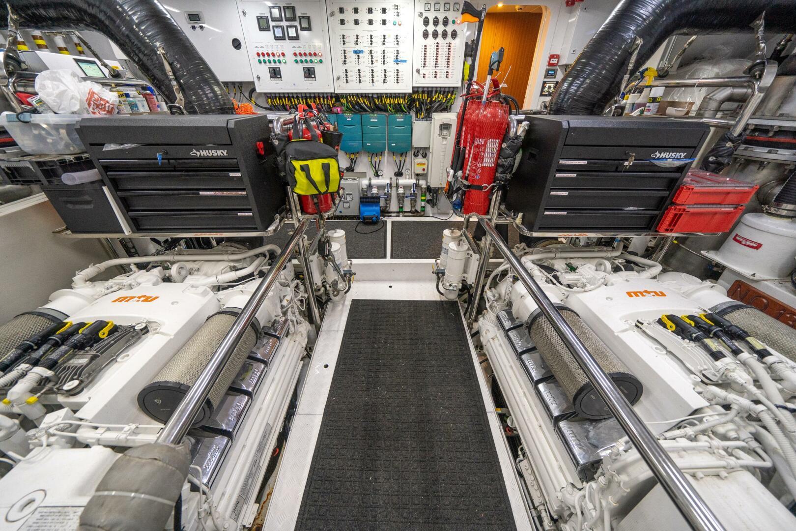 В машинном отделении установлены два двигателя MTU 10V2000M96 мощностью 1600 л.с. каждый. Помещение