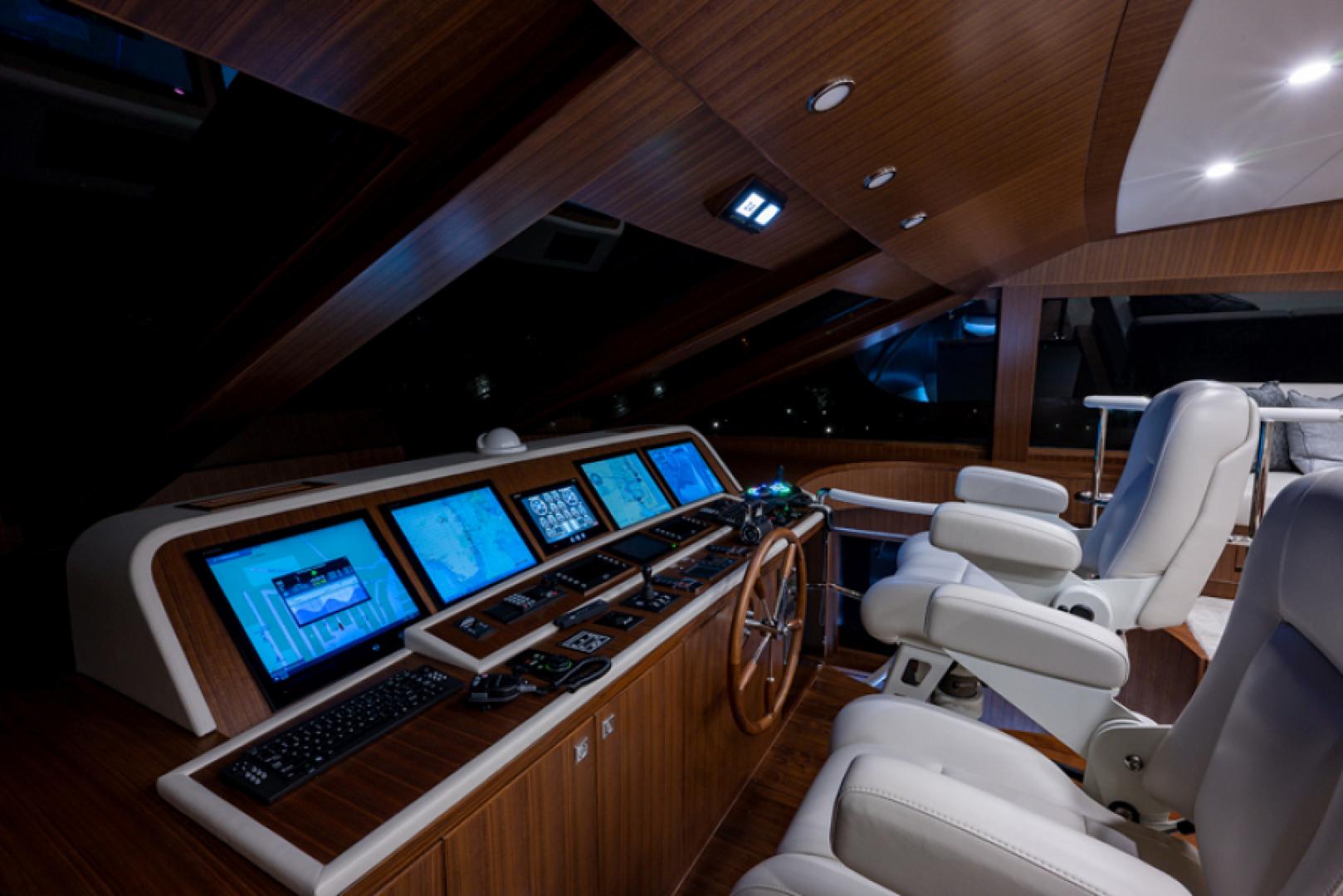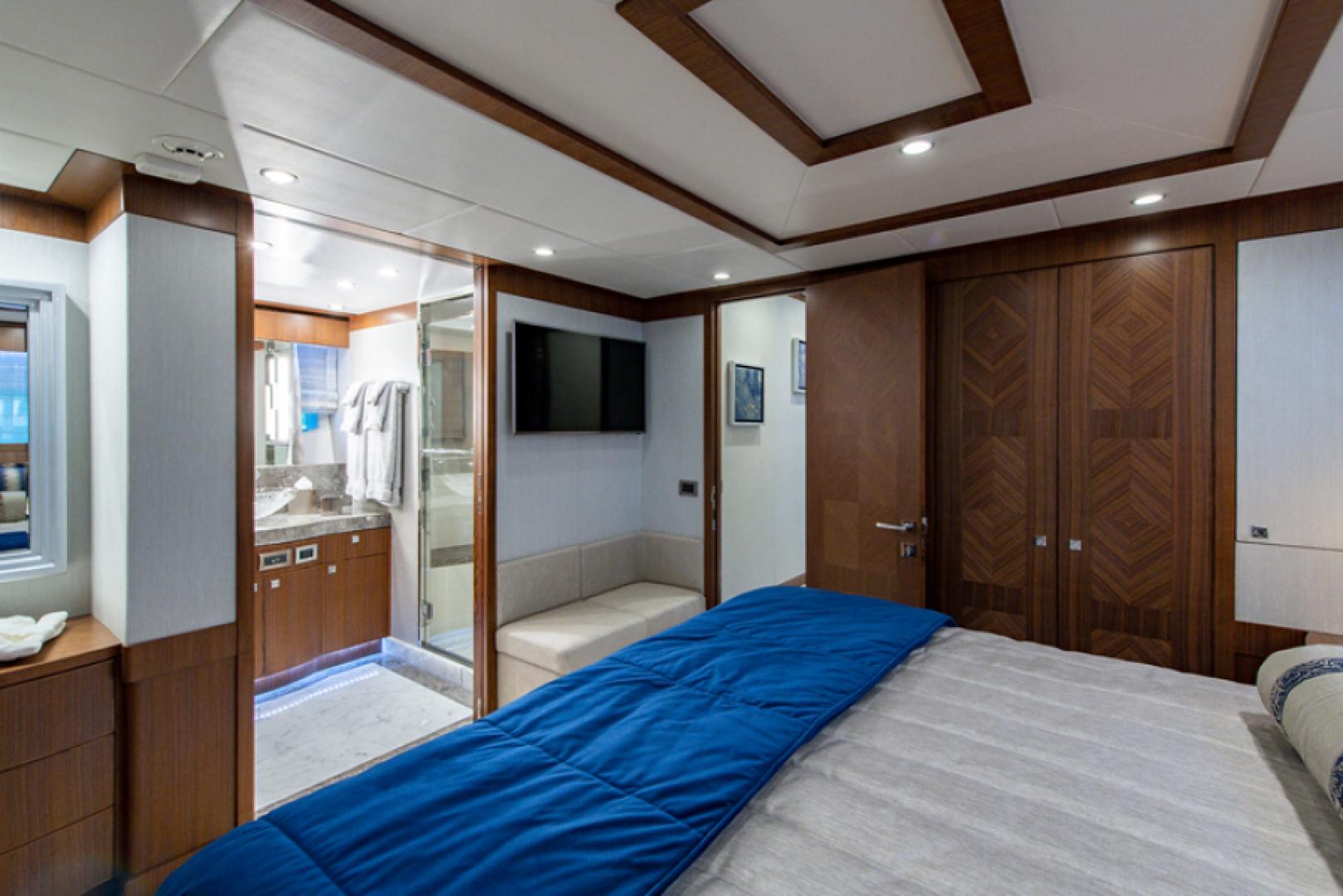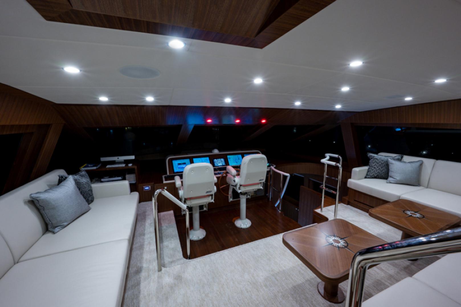 Популярная компоновка raised pilothouse (приподнятая рулевая рубка) предлагает великолепные условия размещения: пять кают, включая полноширинную мастер-каюту, две полноширинные VIP-каюты, дневной санузел в салоне и дополнительный дневной санузел, удобно расположенный на палубе флайбриджа.