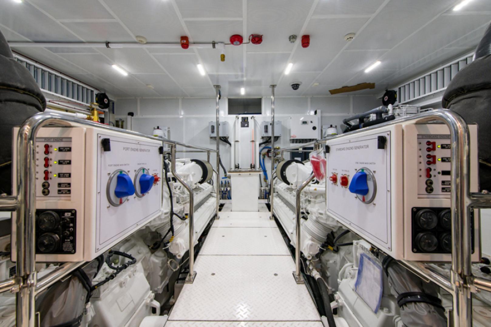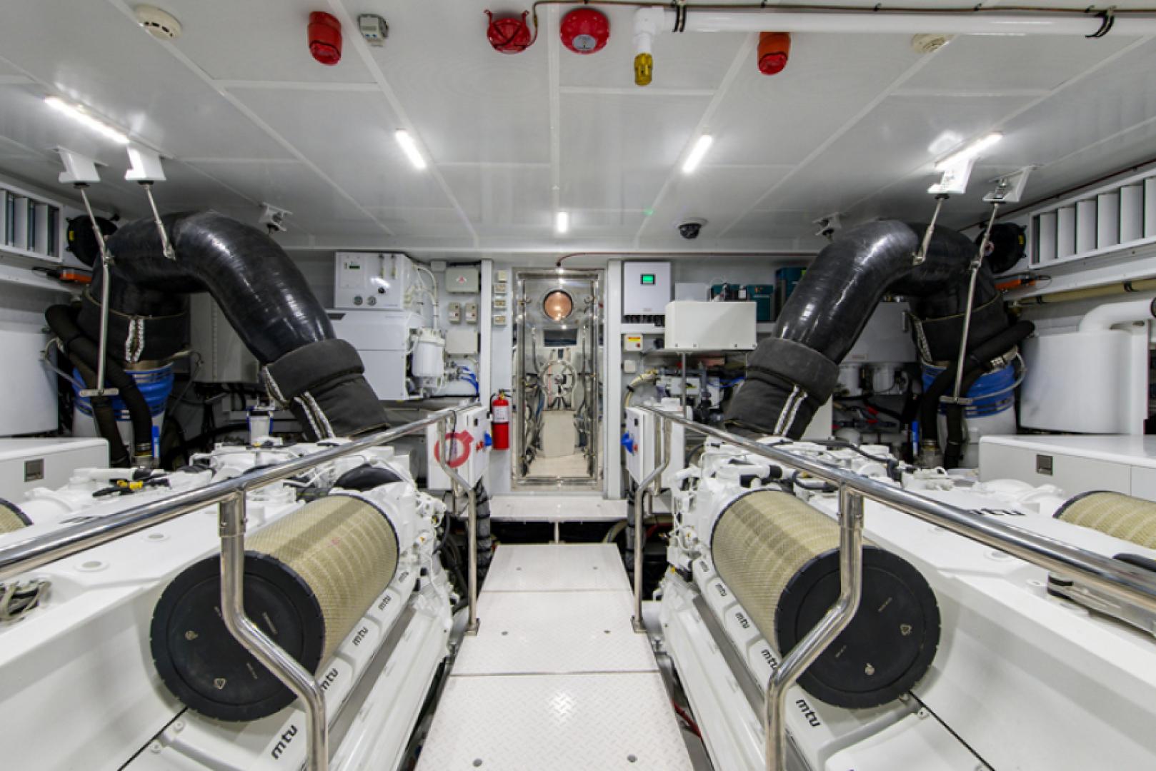 Скорость G120 достигается благодаря сочетанию полуводоизмещающего корпуса Jack Sarin и мощной, тихой тяги 16-цилиндровой силовой установки MTU. Двигатели MTU 16V2000 мощностью 2 185 л.с. каждый обеспечивают крейсерскую скорость 20 узлов и максимальную скорость 25 узлов — это «золотой стандарт» в своём диапазоне мощности. Запас топлива 7 000 галлонов даёт лучшую в классе дальность порядка 1 800 морских миль при 10 узлах — важнейшее требование для тех, кто привык к дальним переходам по США и акваториям Карибского бассейна.