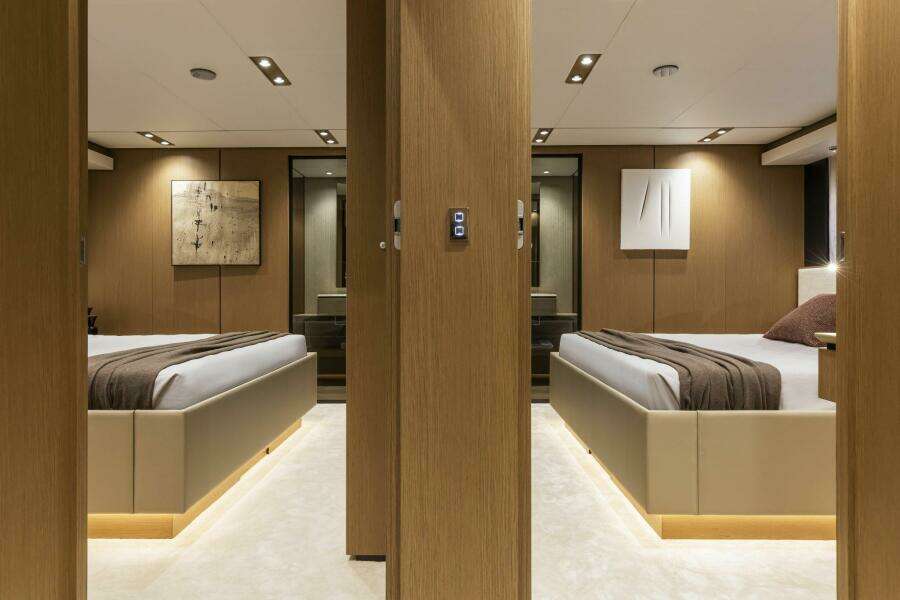 - Раздвижные раздельные кровати в гостевых каютах (левый и правый борт)